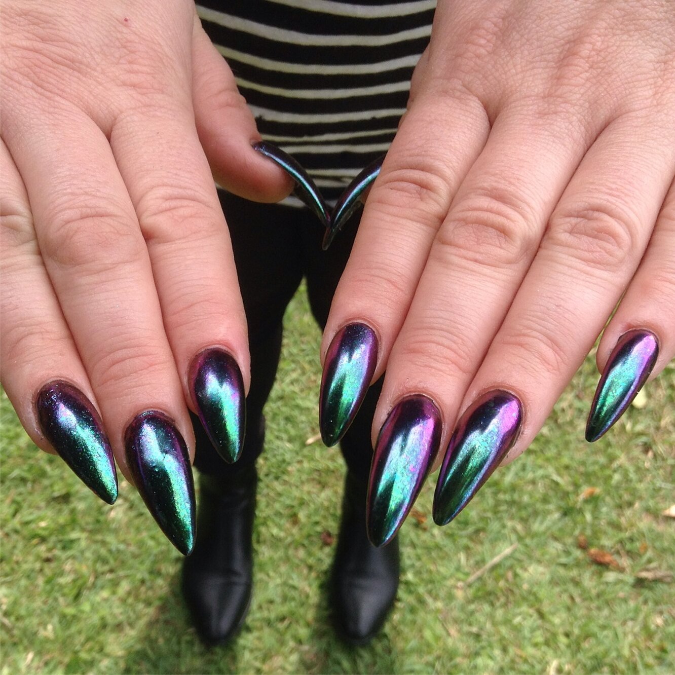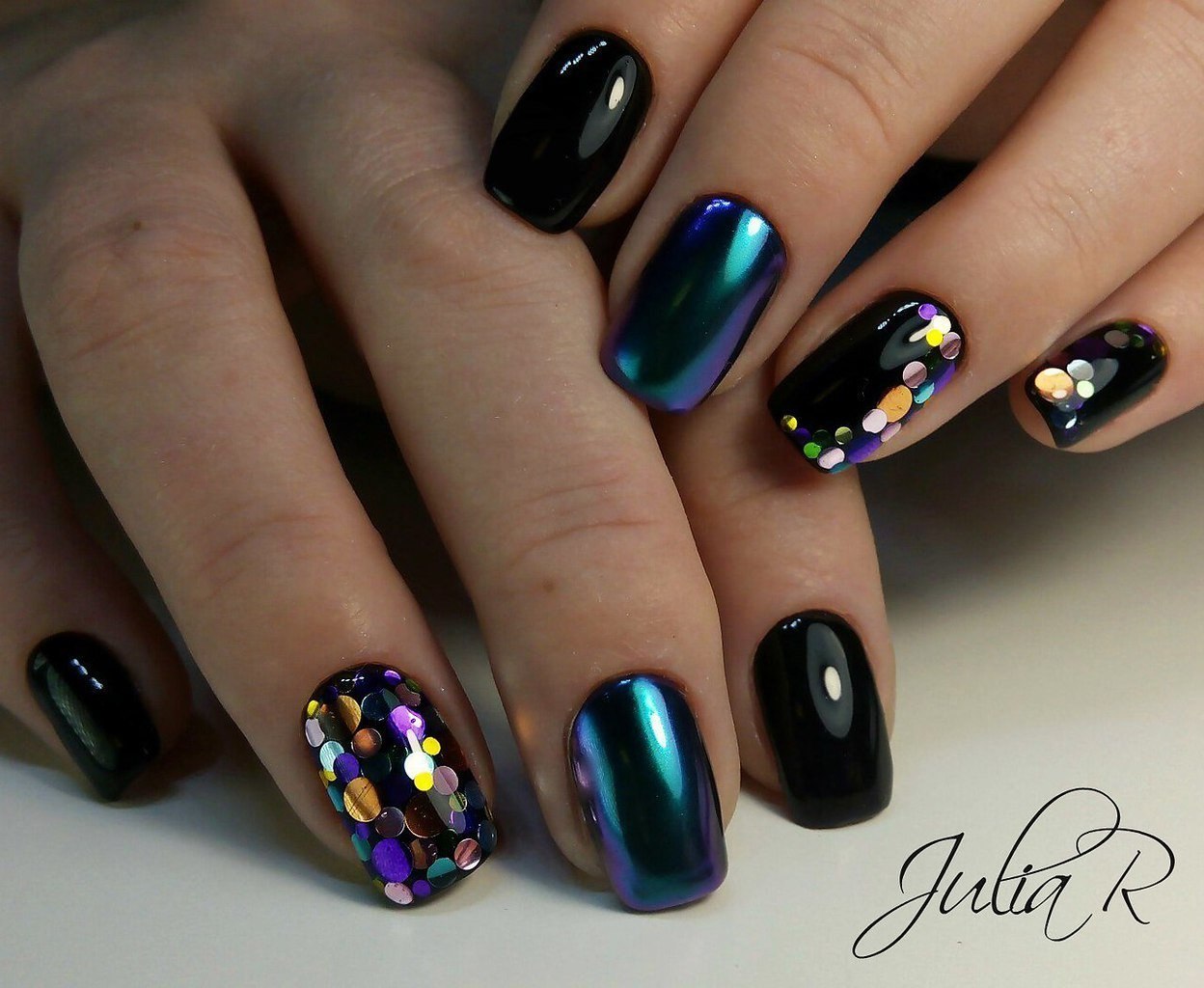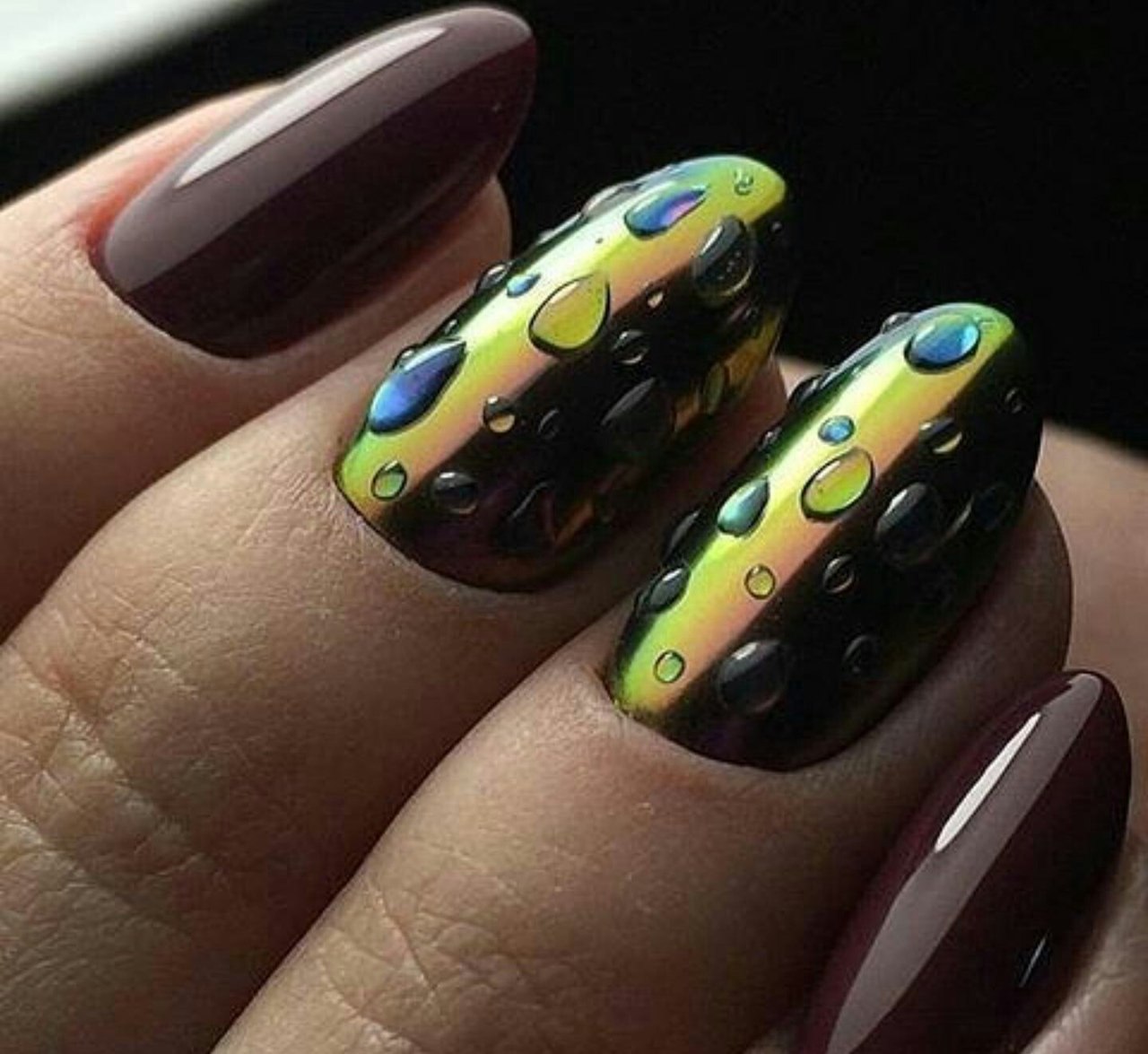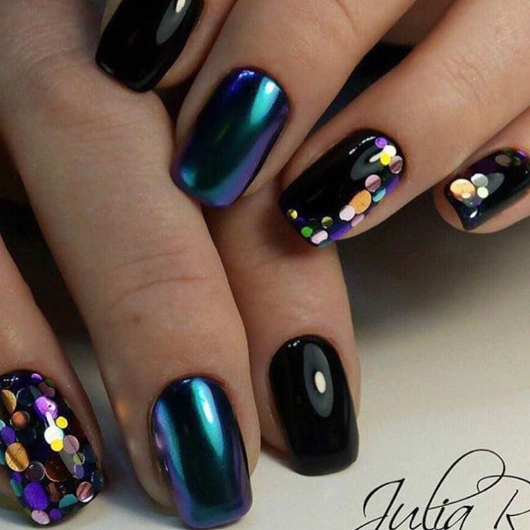 Маникюр зеленый хамелеон