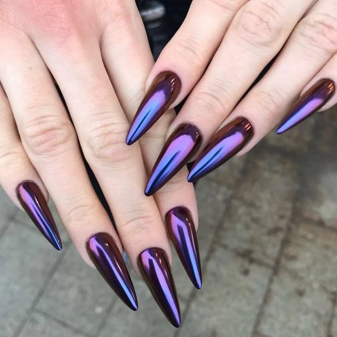 Фиолетовый маникюр на длинные ногти