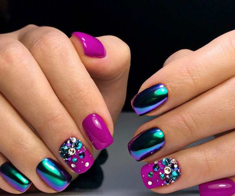 Яркий маникюр со стразами