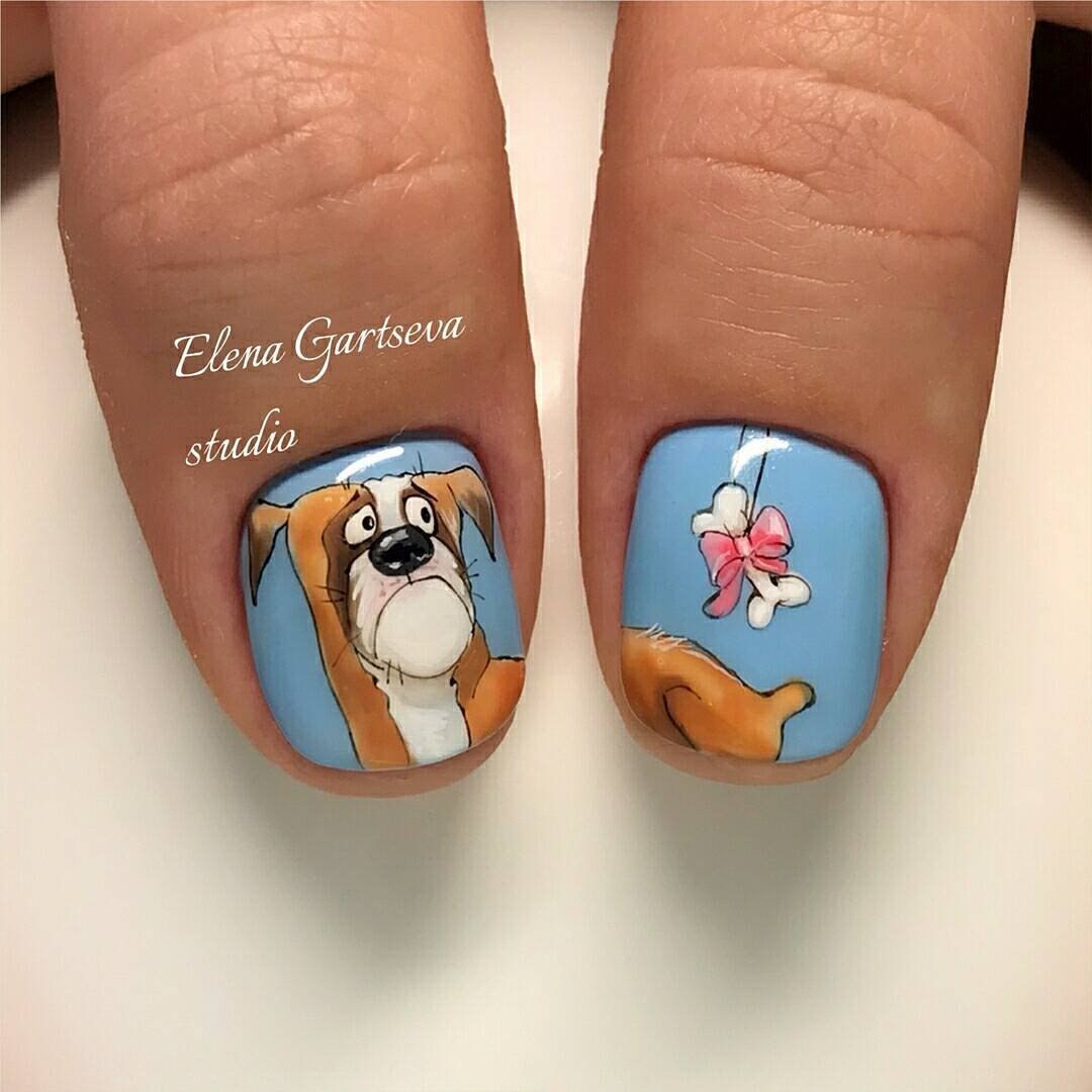 Дизайн ногтей с собаками
