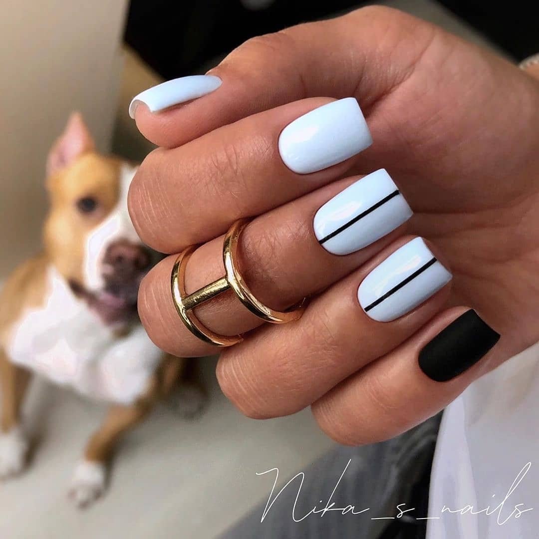Белый маникюр с полосками