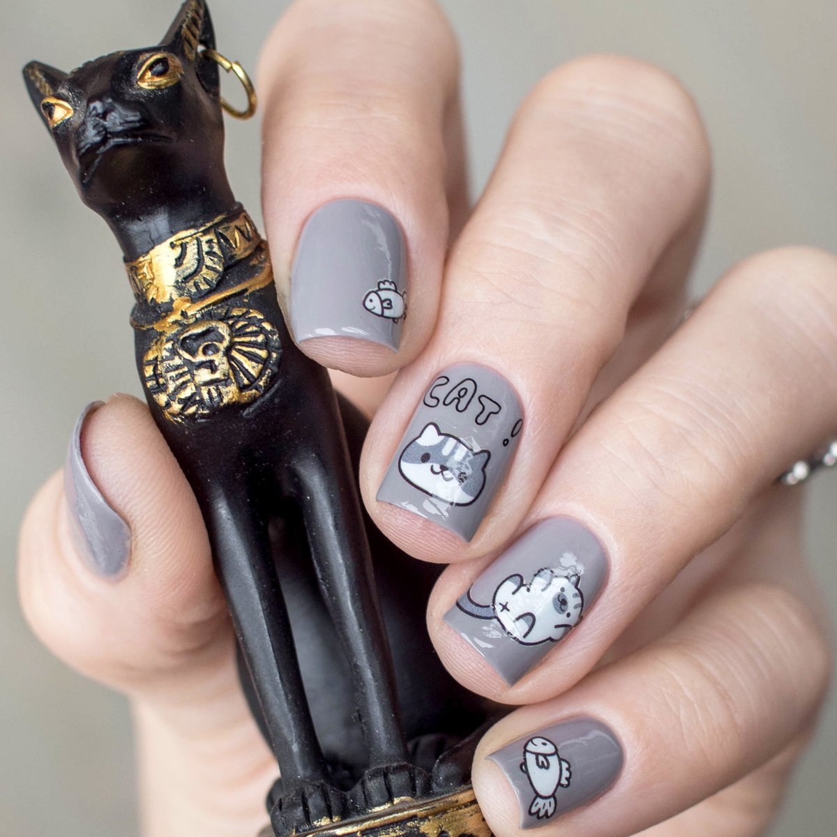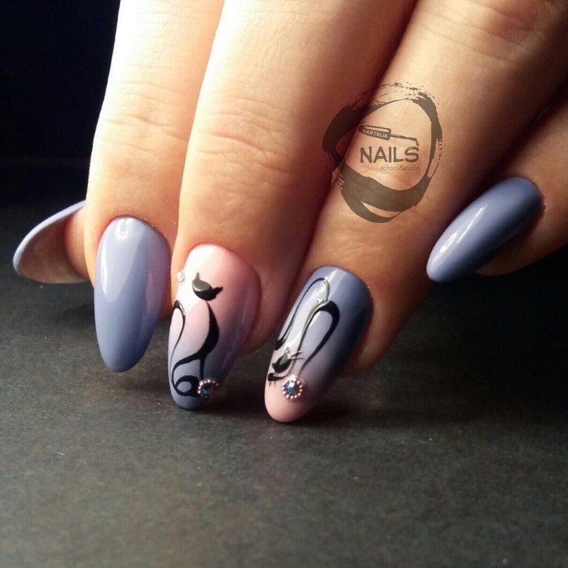 Маникюр с кошками на ногтях