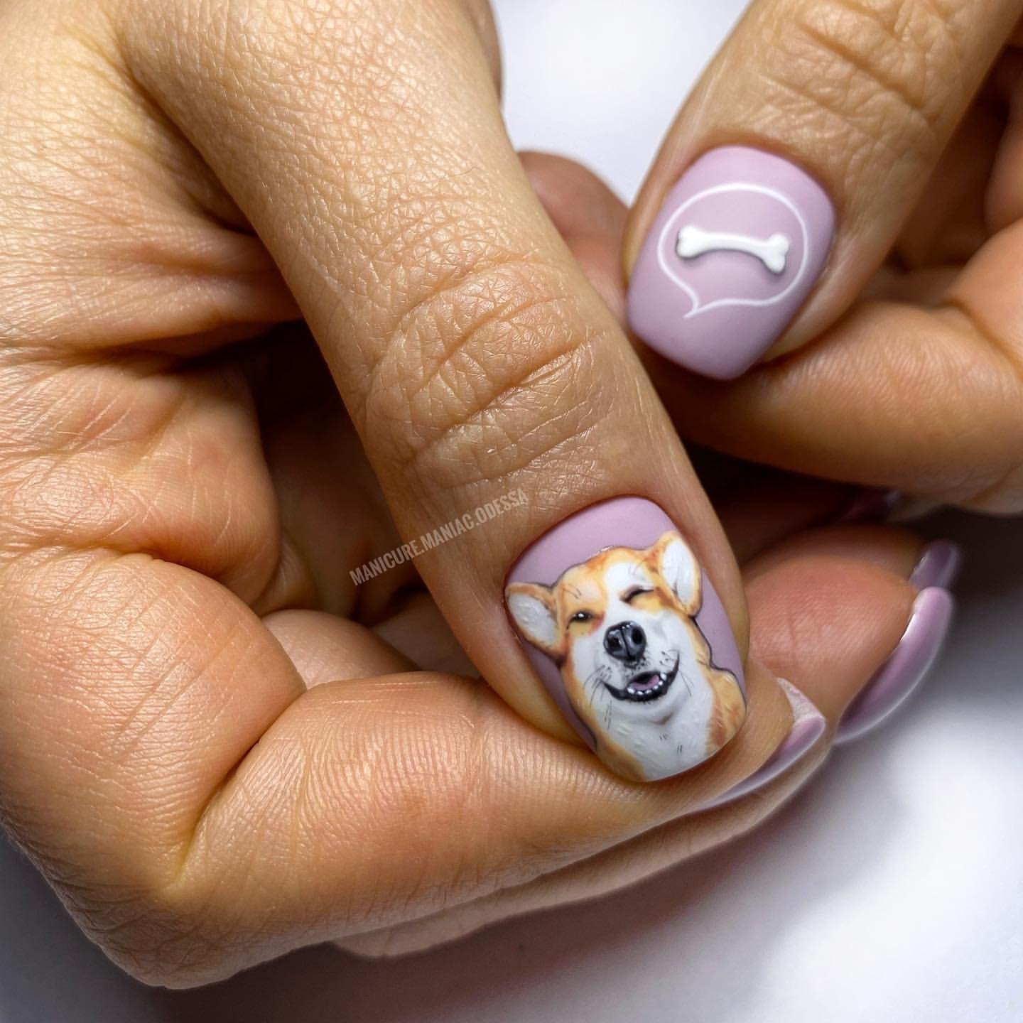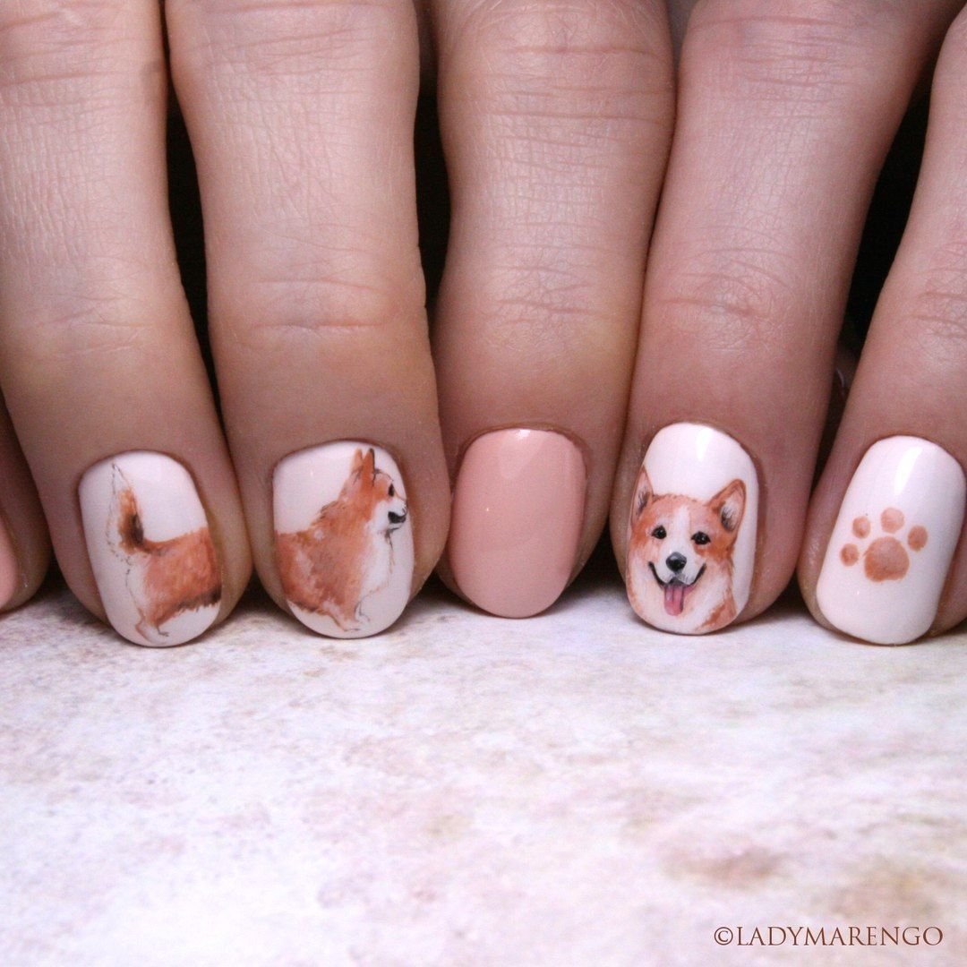 Маникюр с корги на ногтях