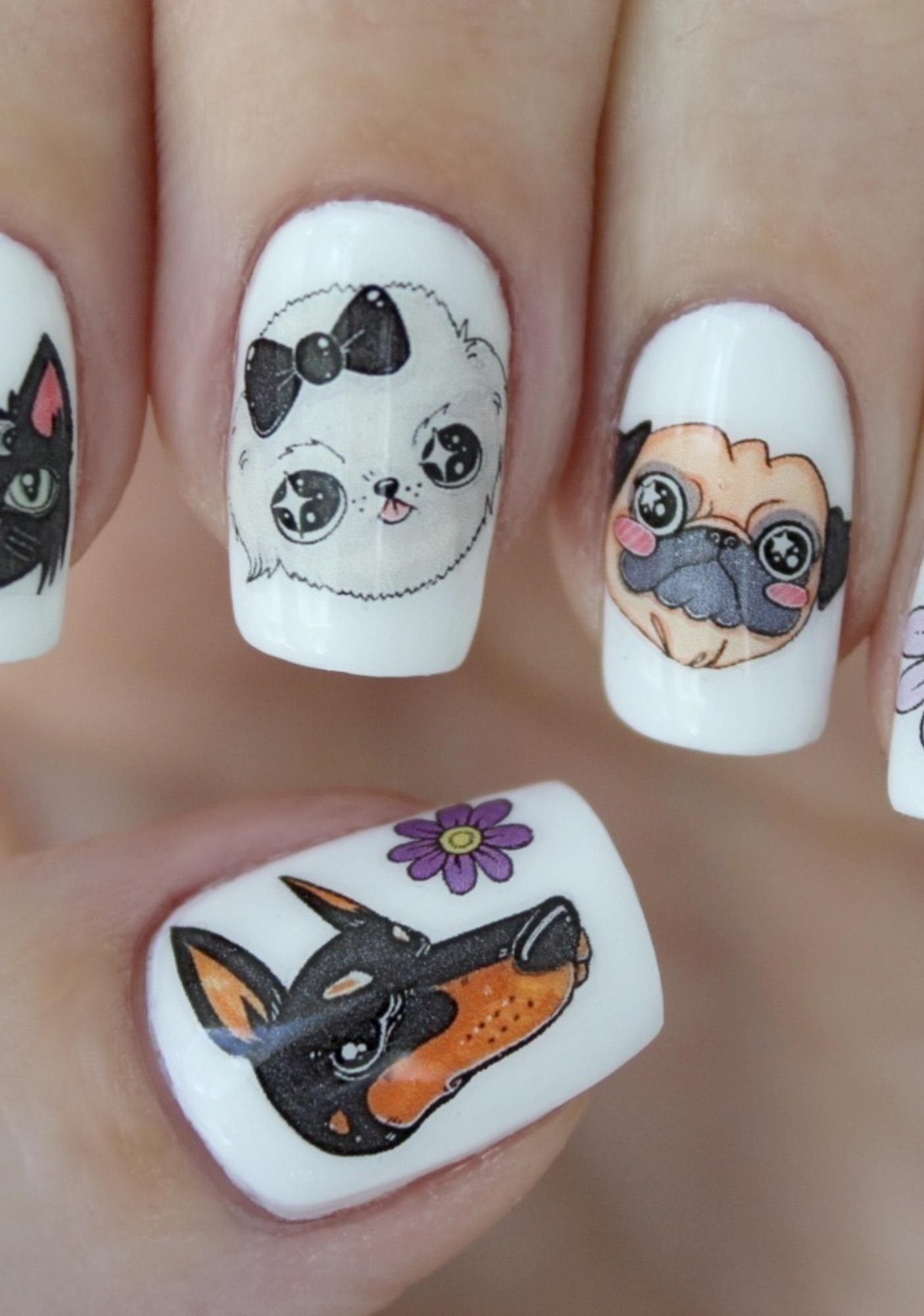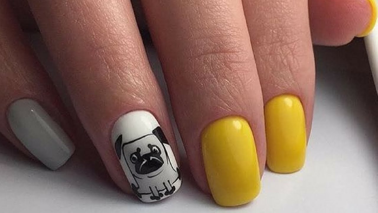Маникюр с собаками на ногтях