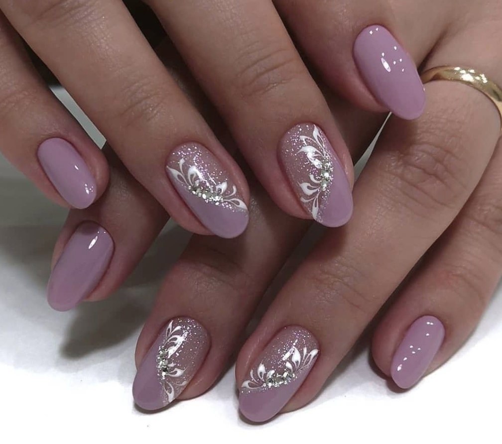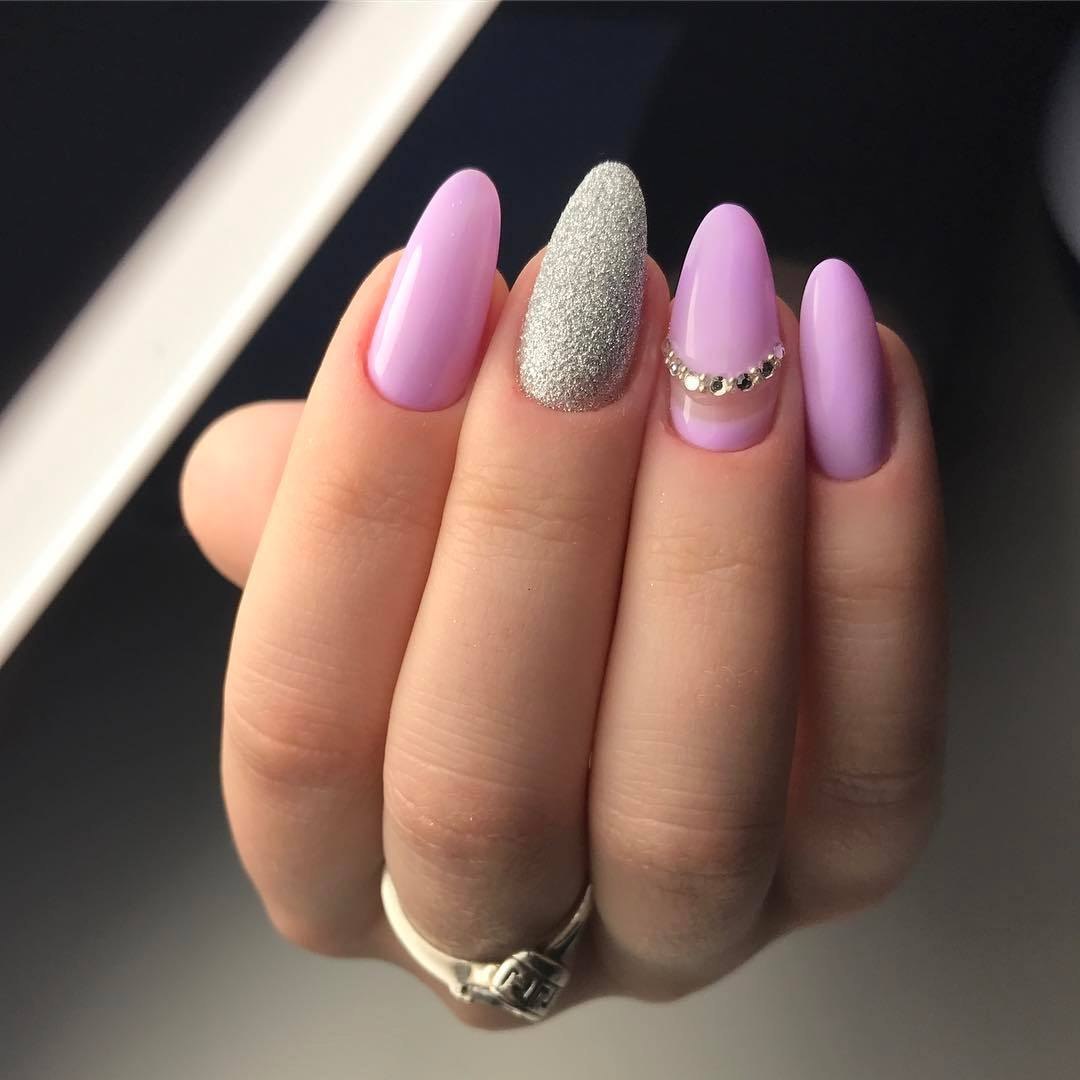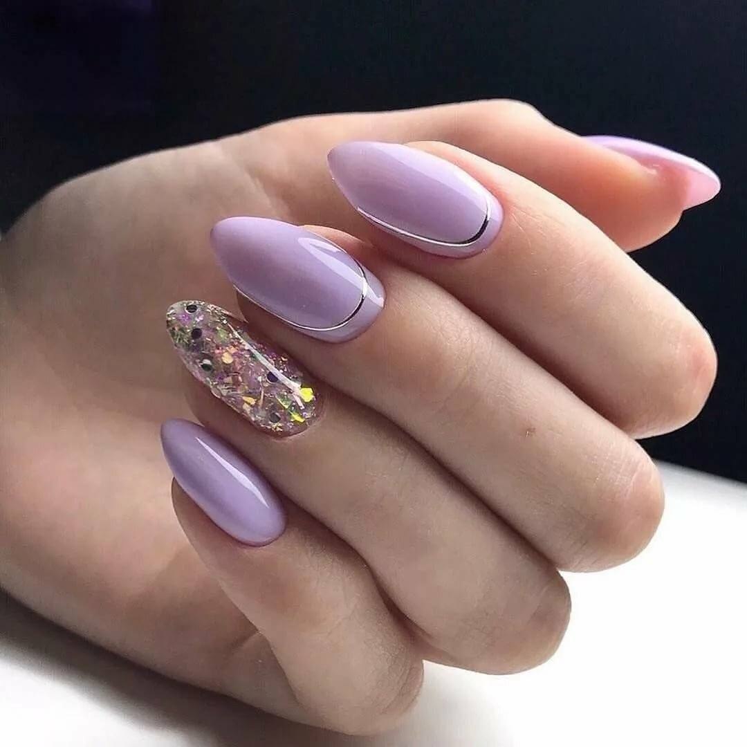 Лавандовый маникюр с блестками