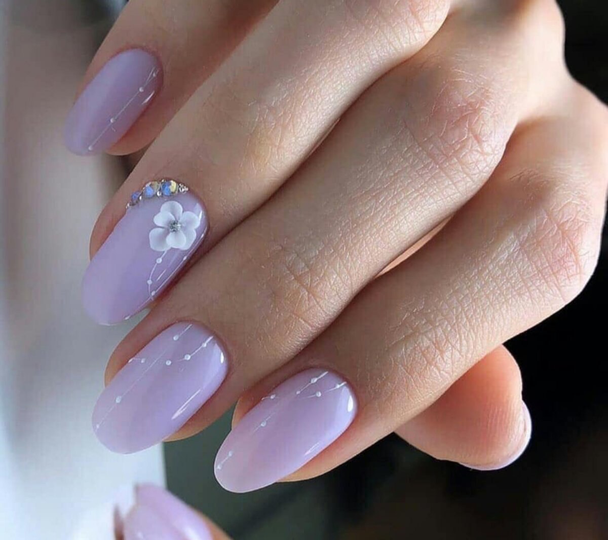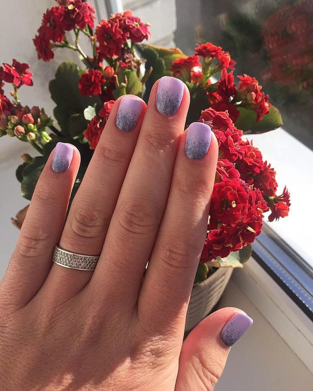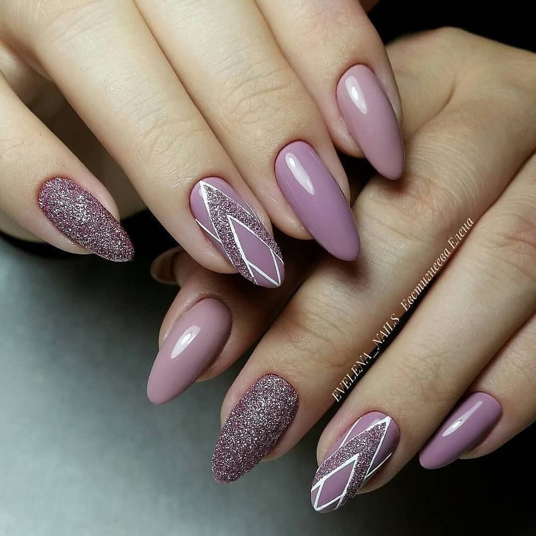 Лавандовый маникюр с блестками