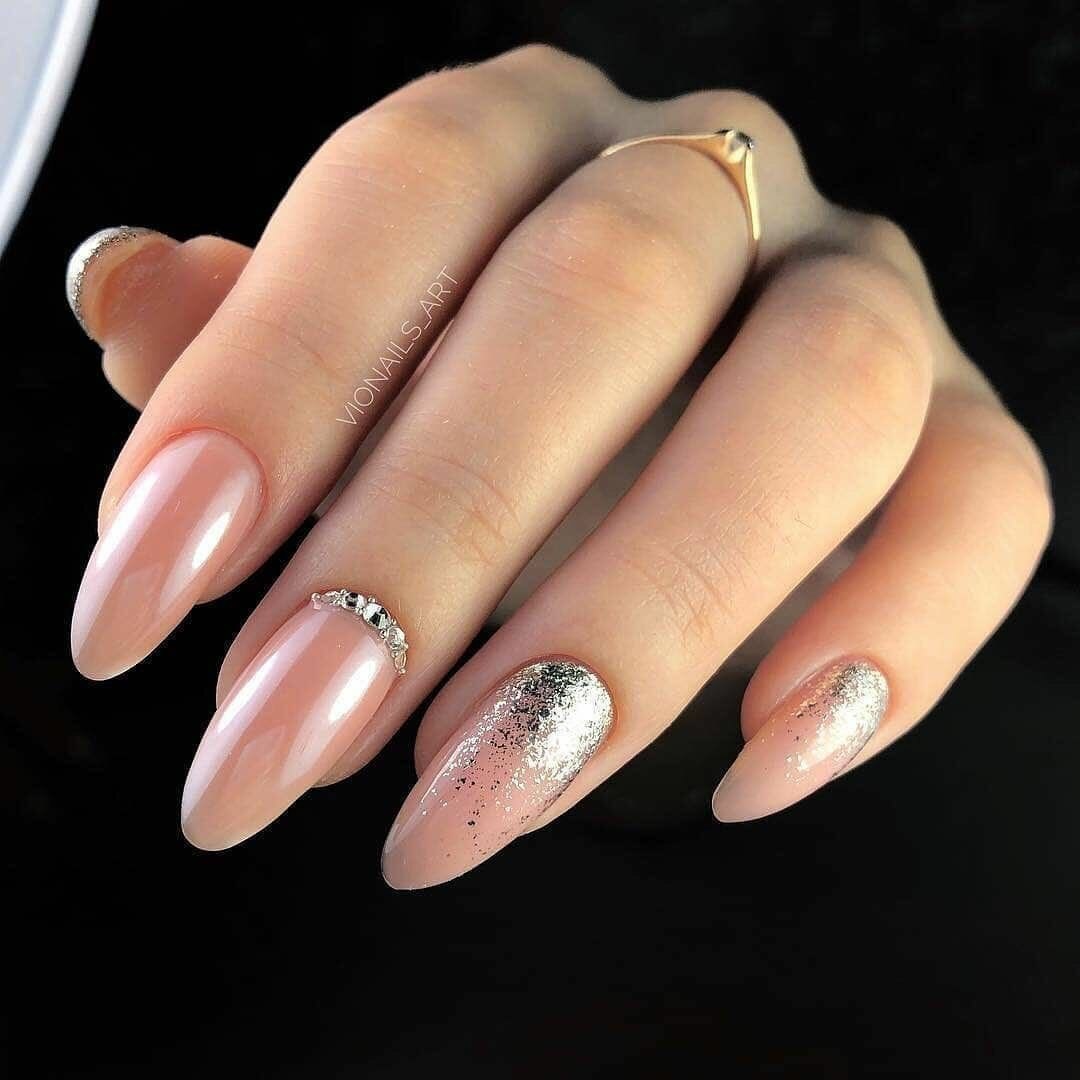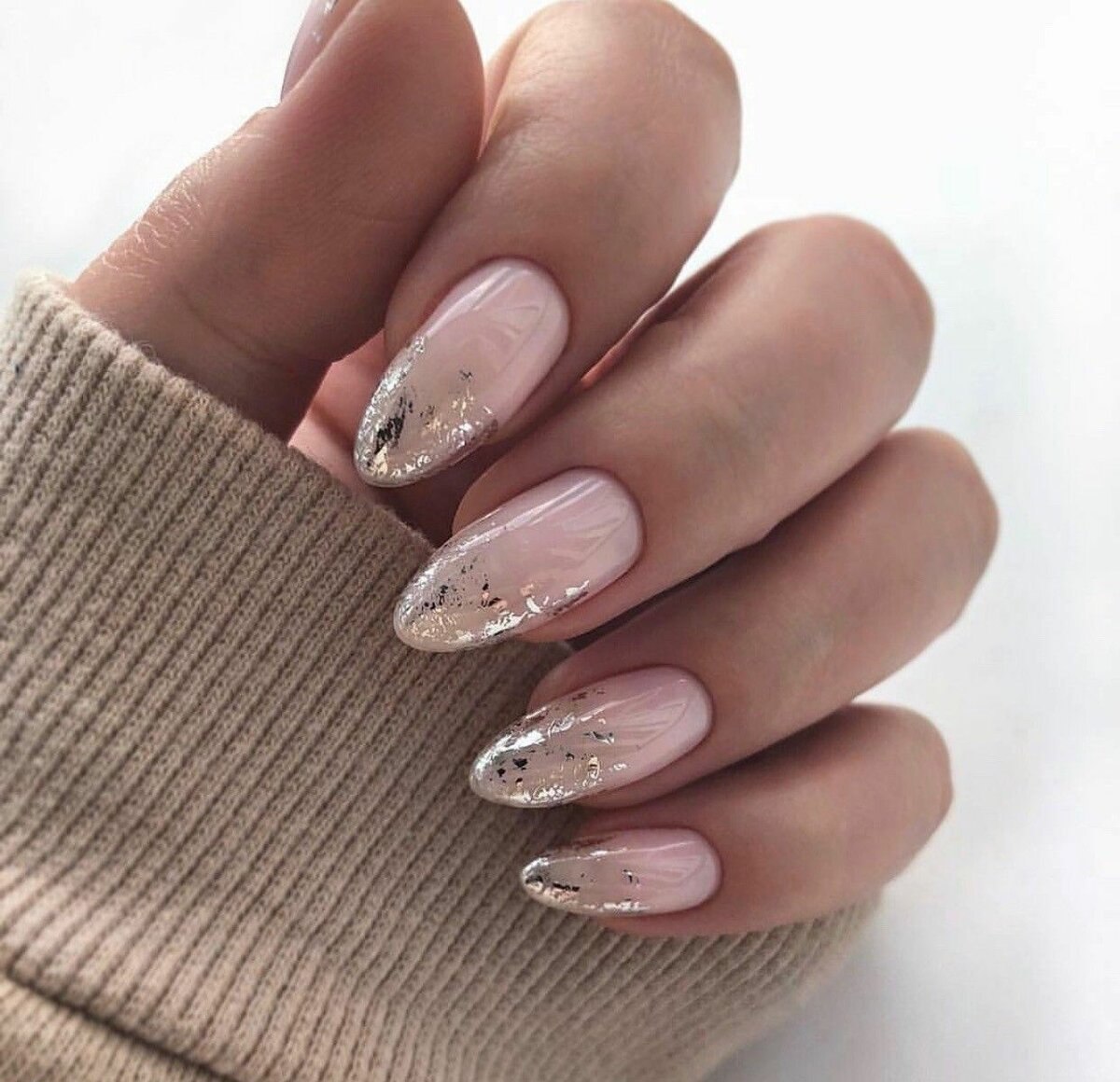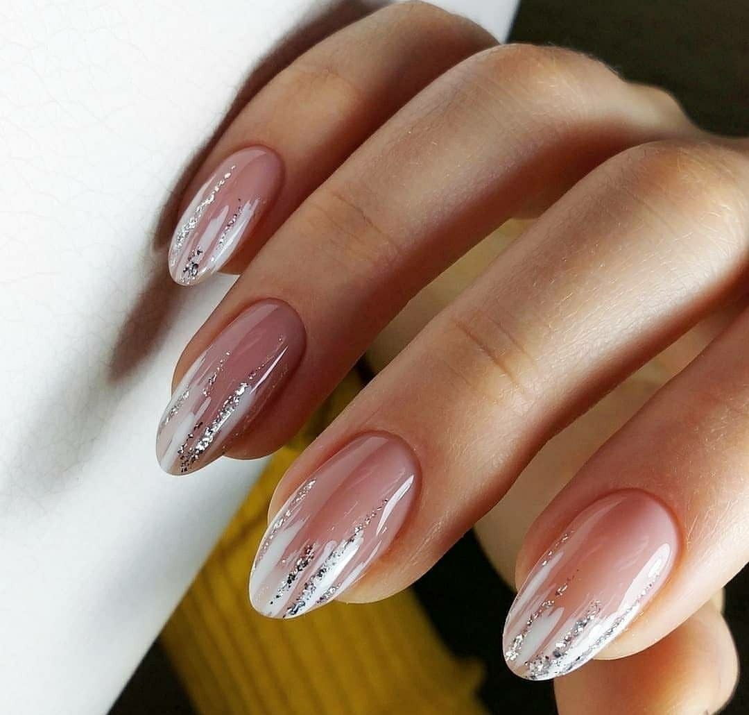 Нюдовый с фольгой маникюр 2022 миндаль