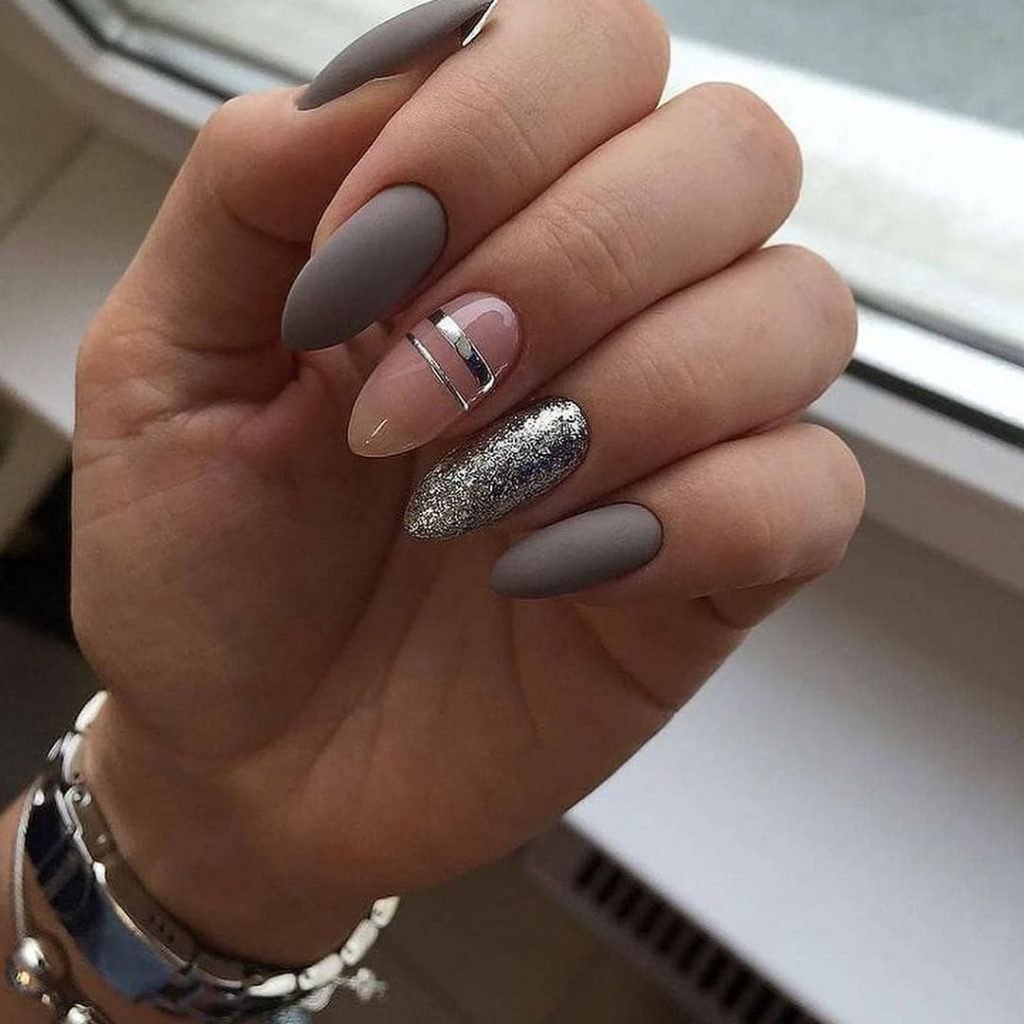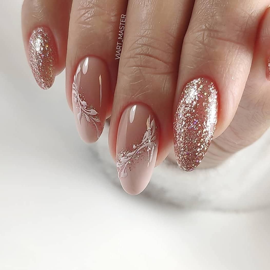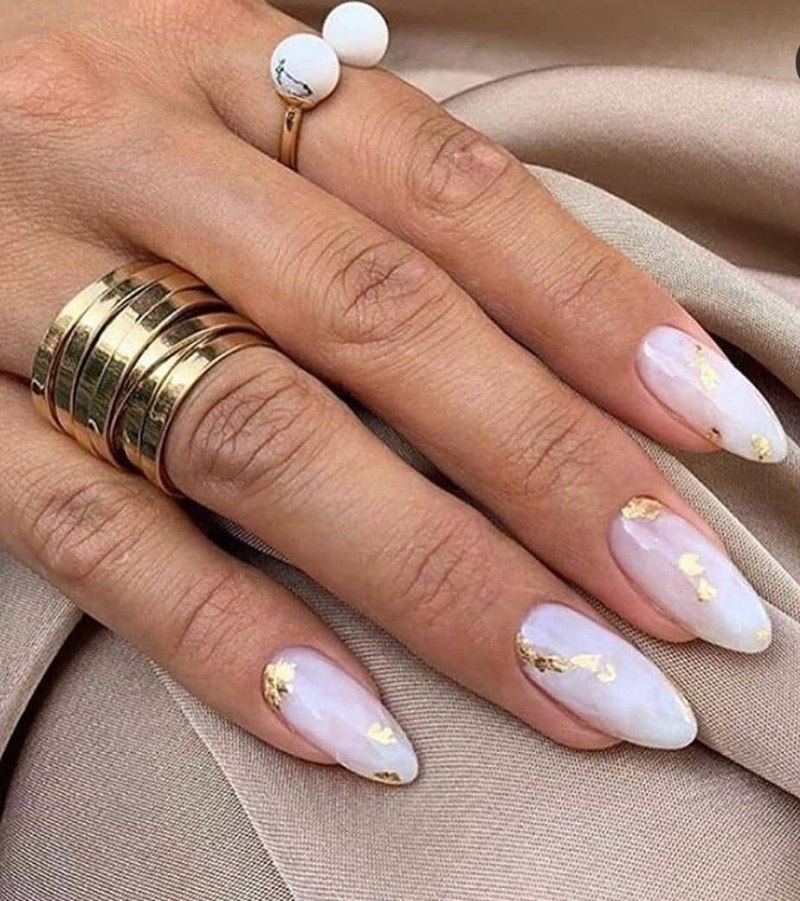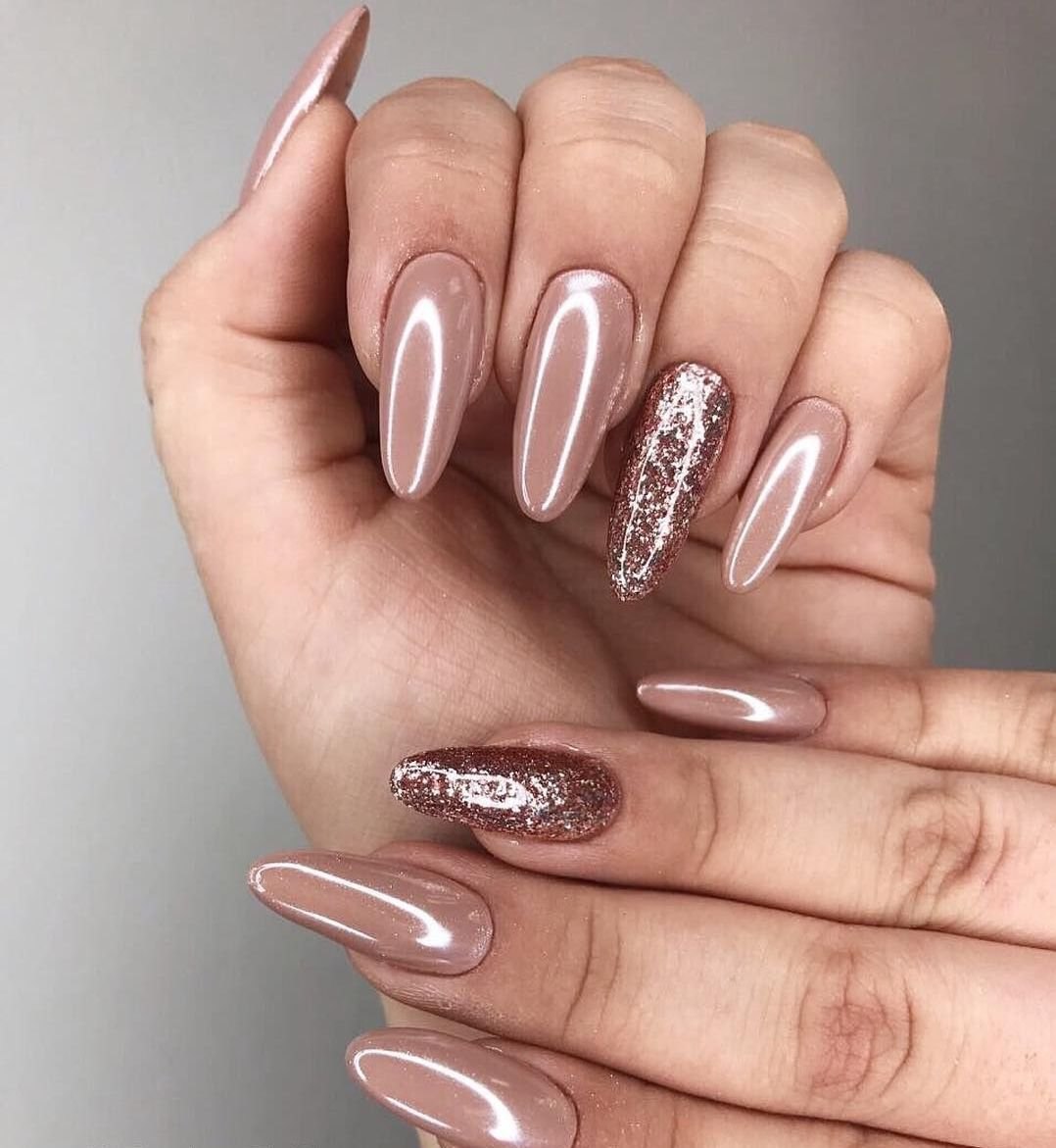 Нюдовый с фольгой маникюр 2022 миндаль