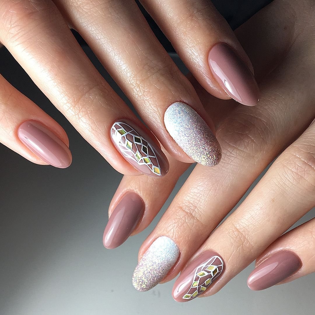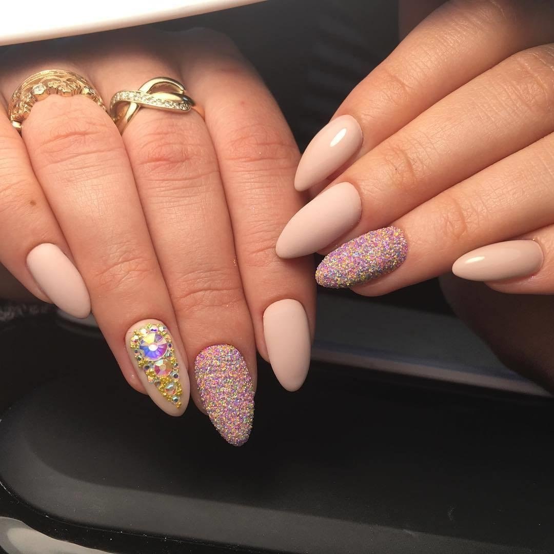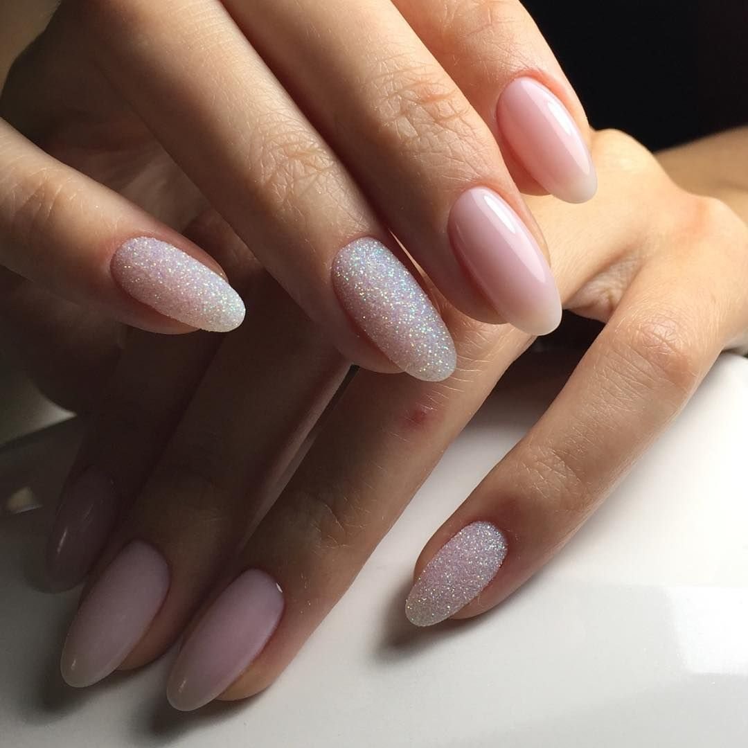 Маникюр овал блестки