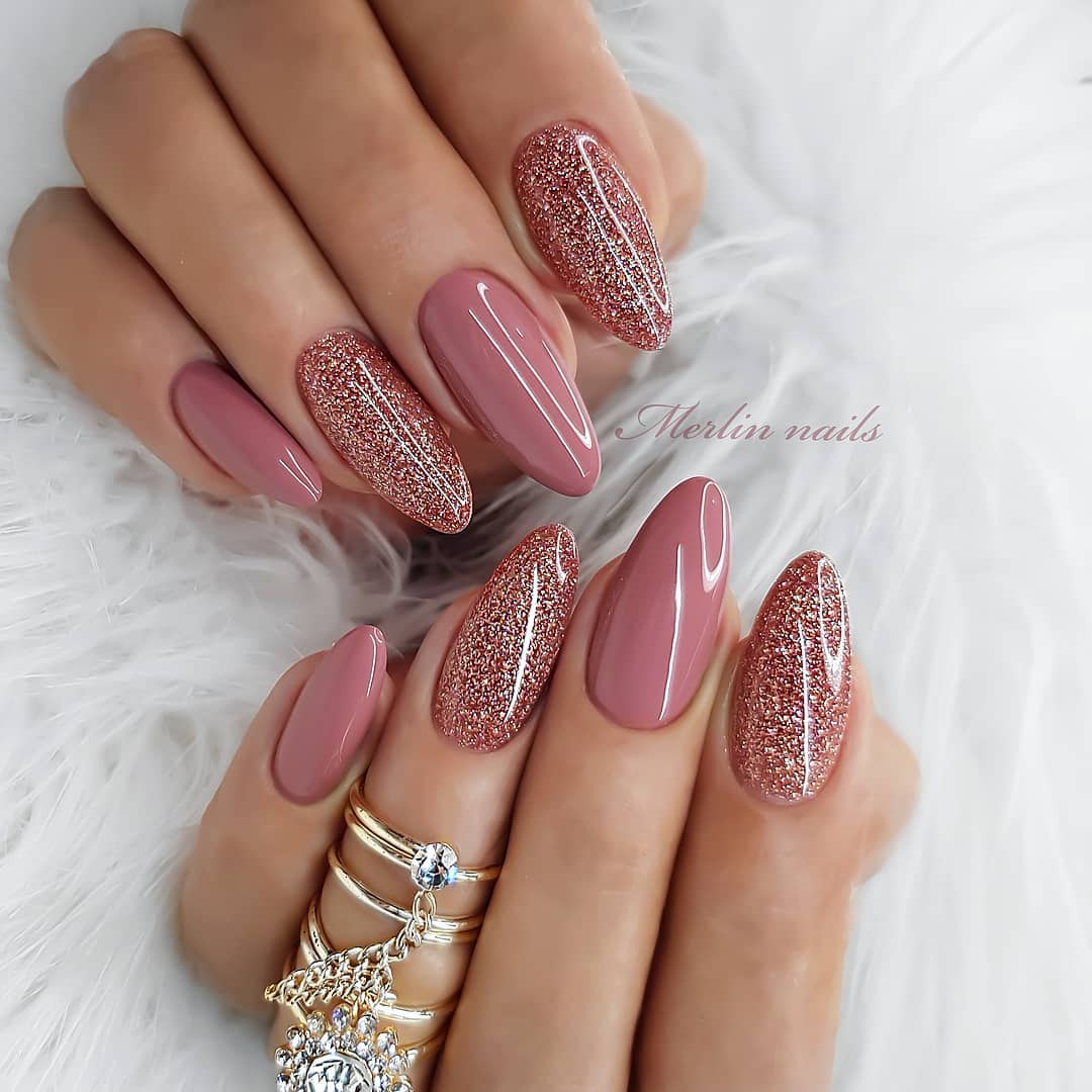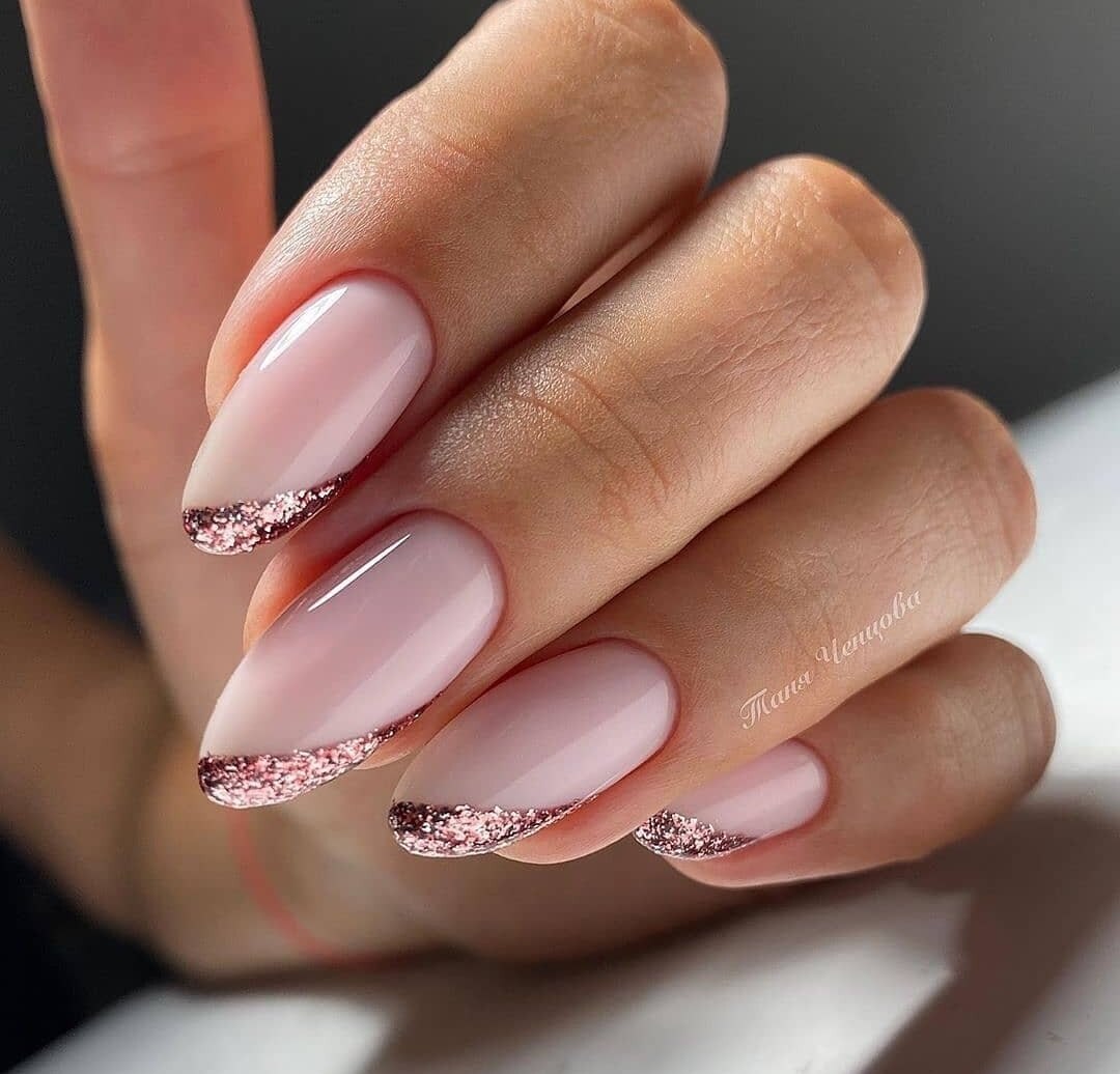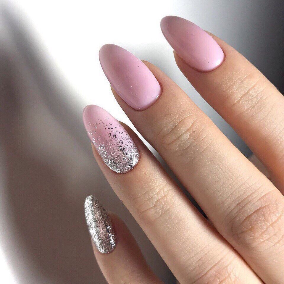 Маникюр овал блестки