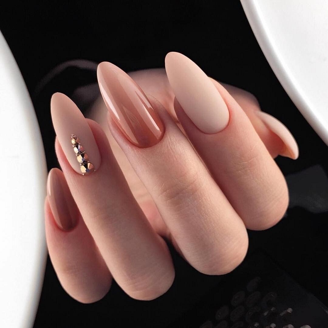 Нюдовый маникюр миндаль модный