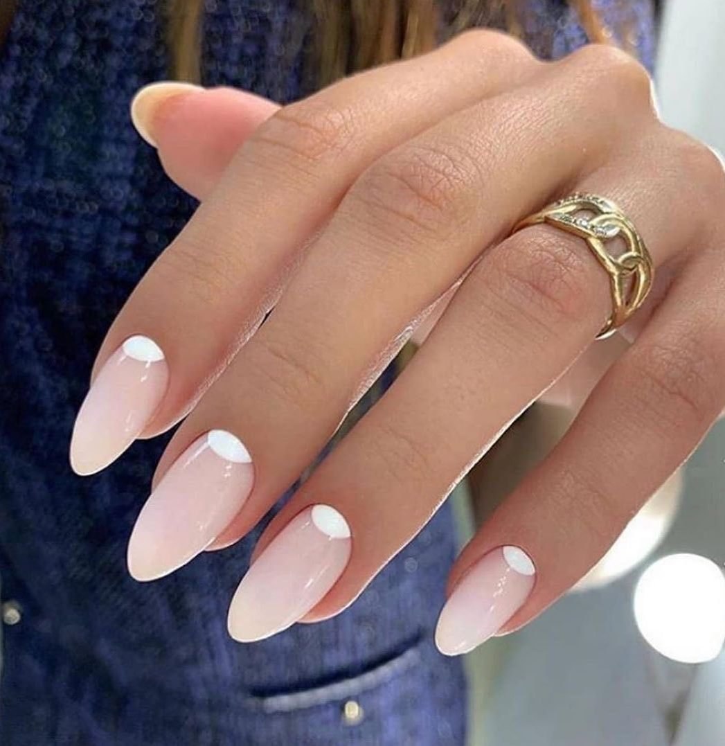 Маникюр нюд с френчем на миндаль