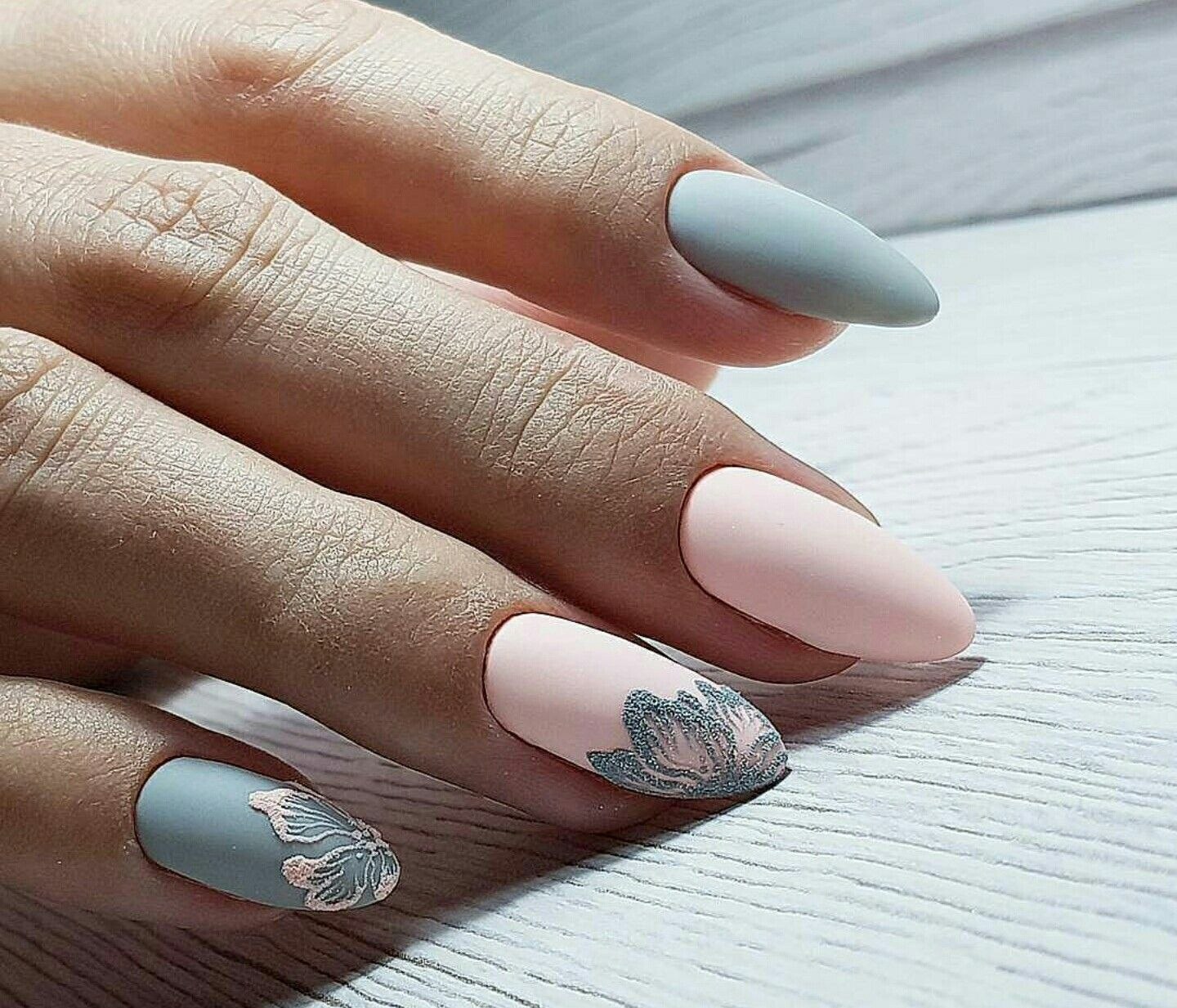 Маникюр нежный 2021 миндалевидные ногти матовый