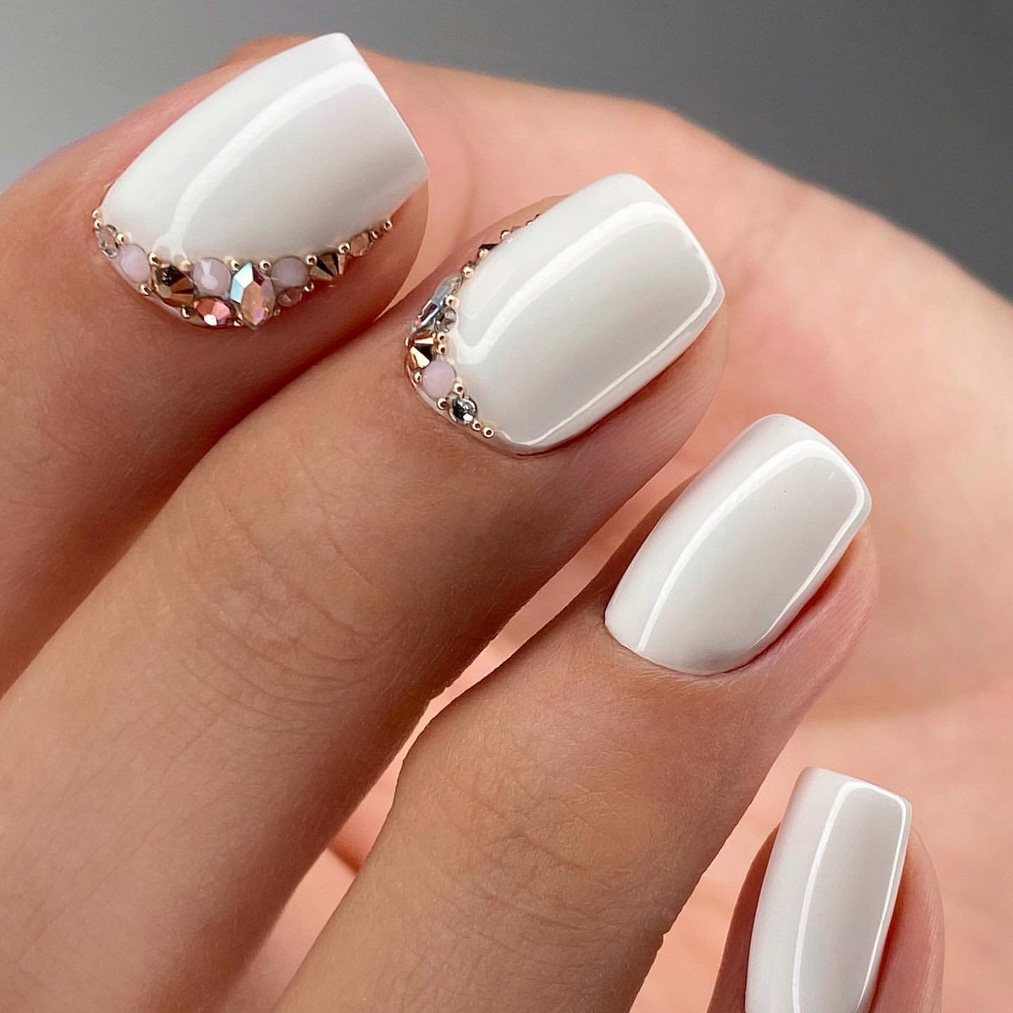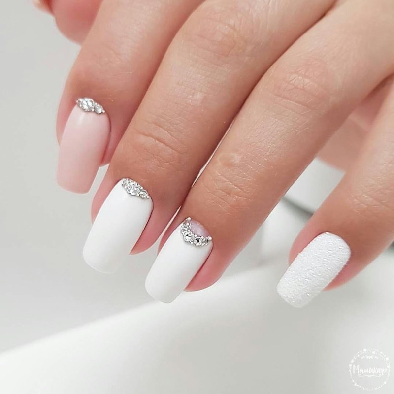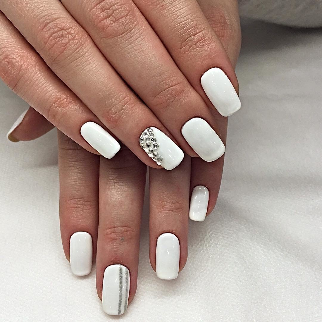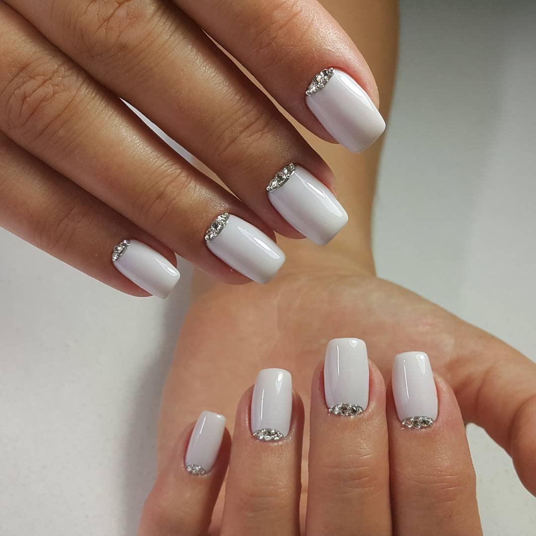 Белый маникюр со стразами