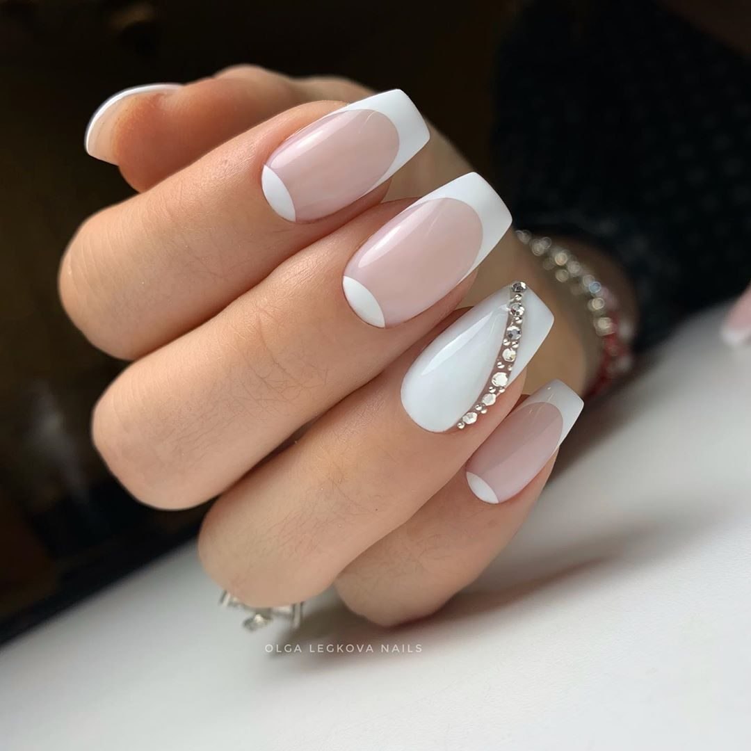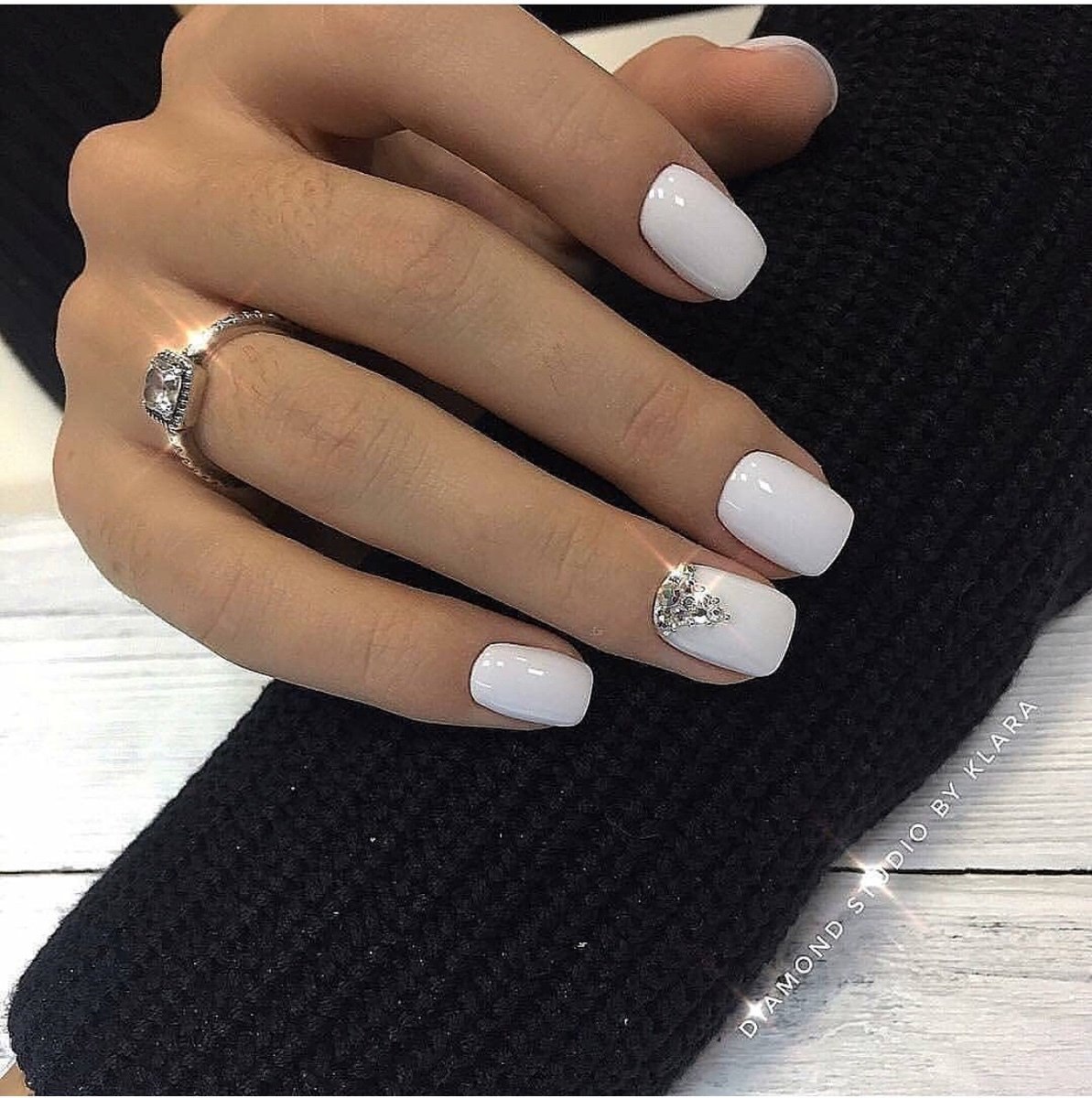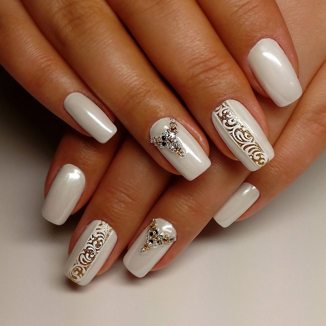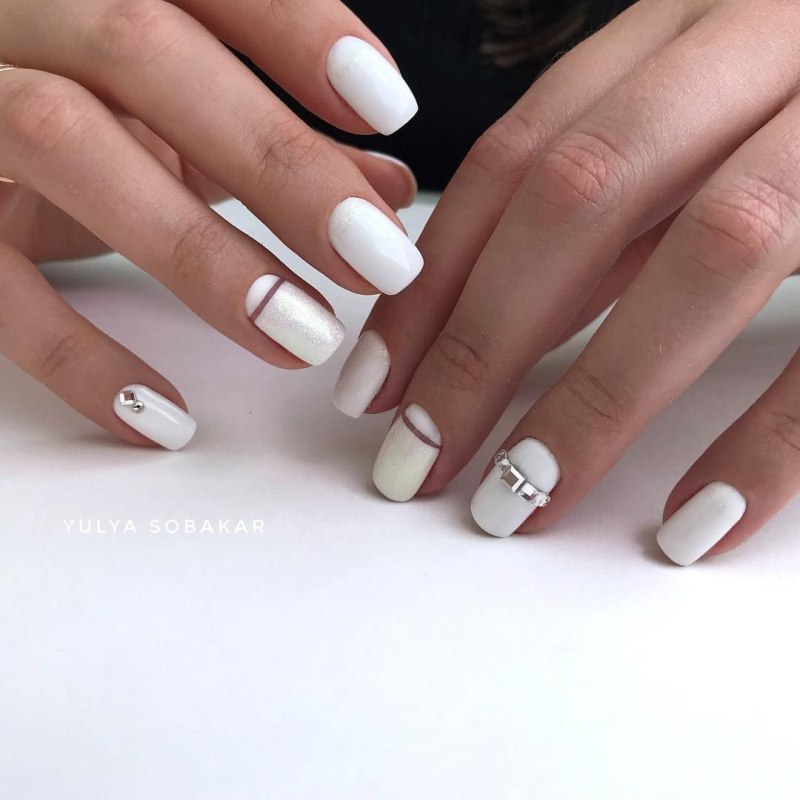 Белый маникюр со стразами