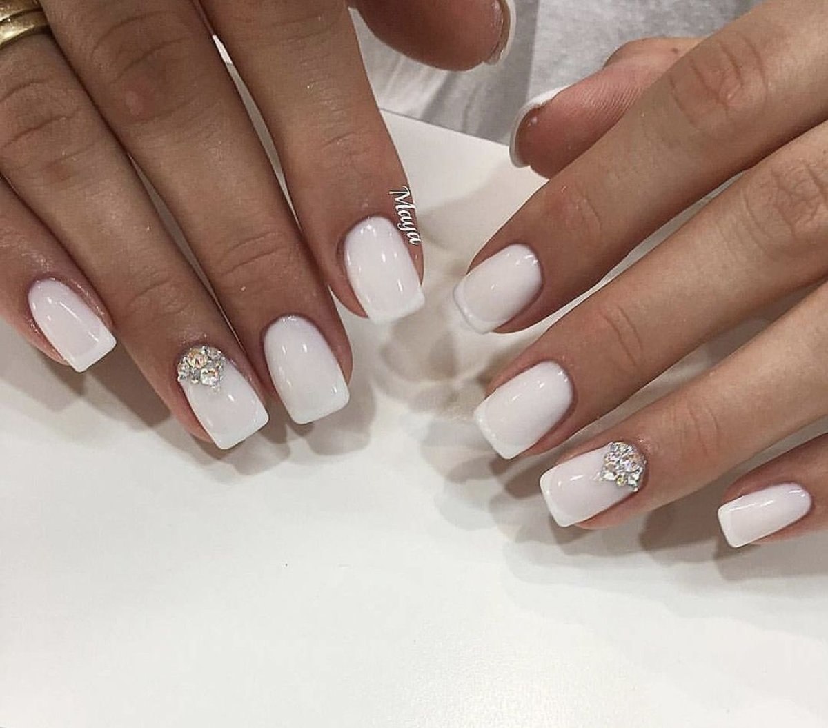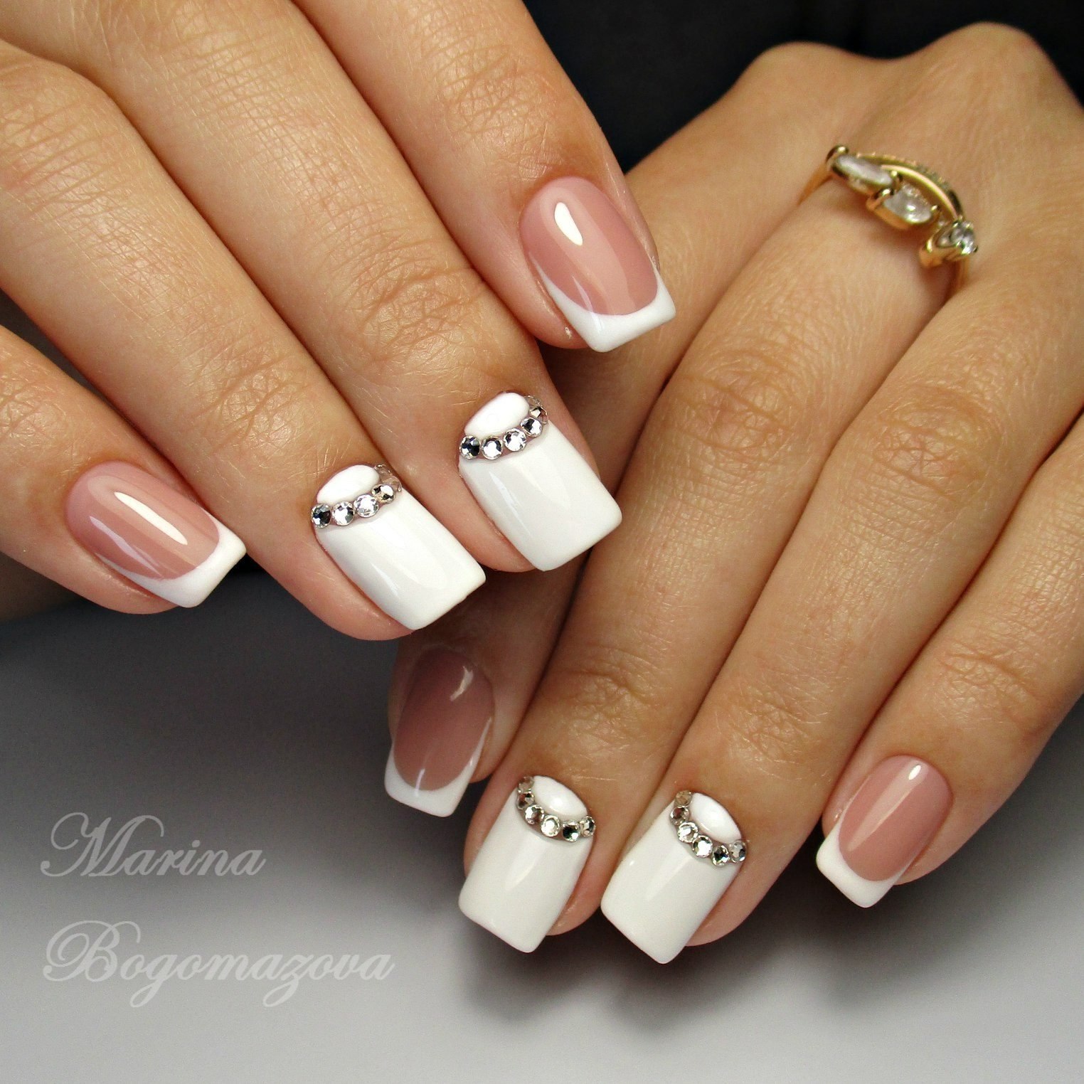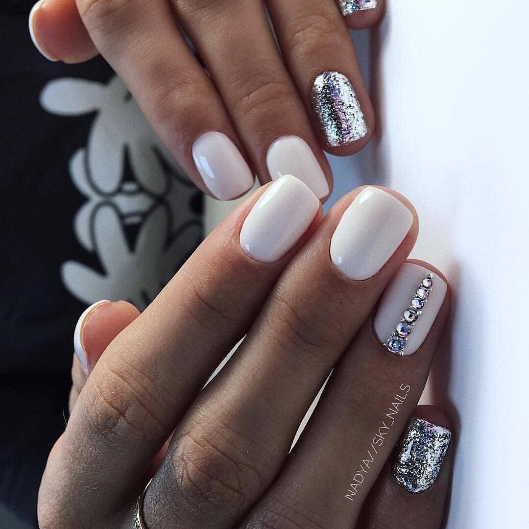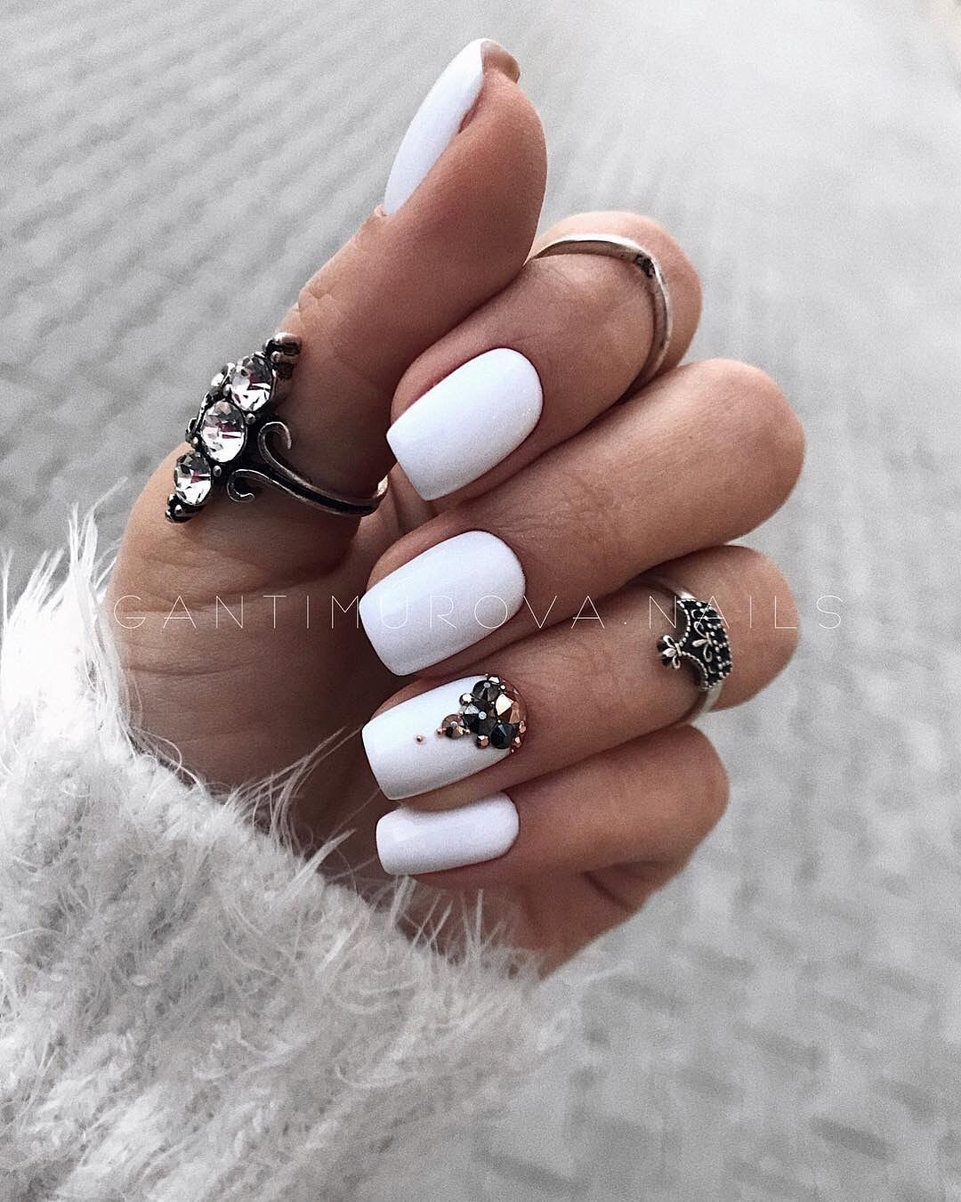 Белый маникюр со стразами