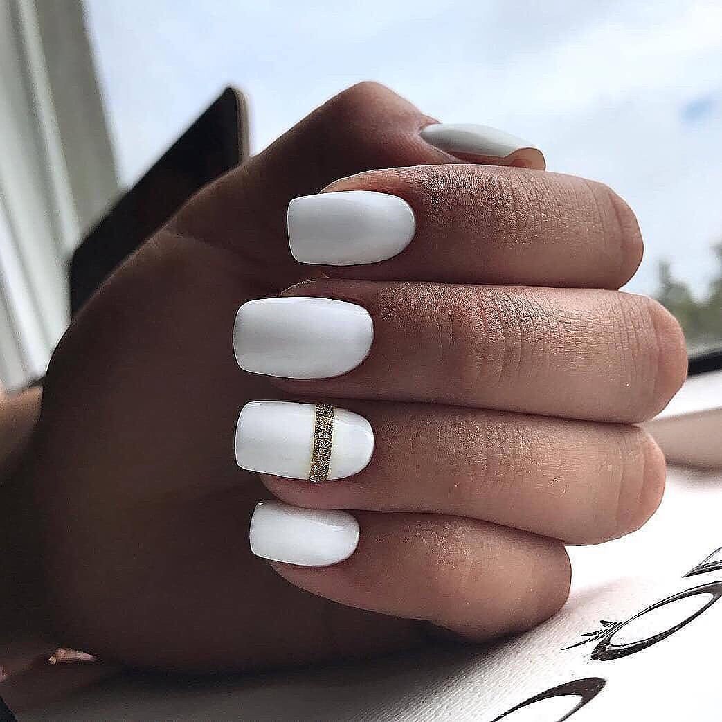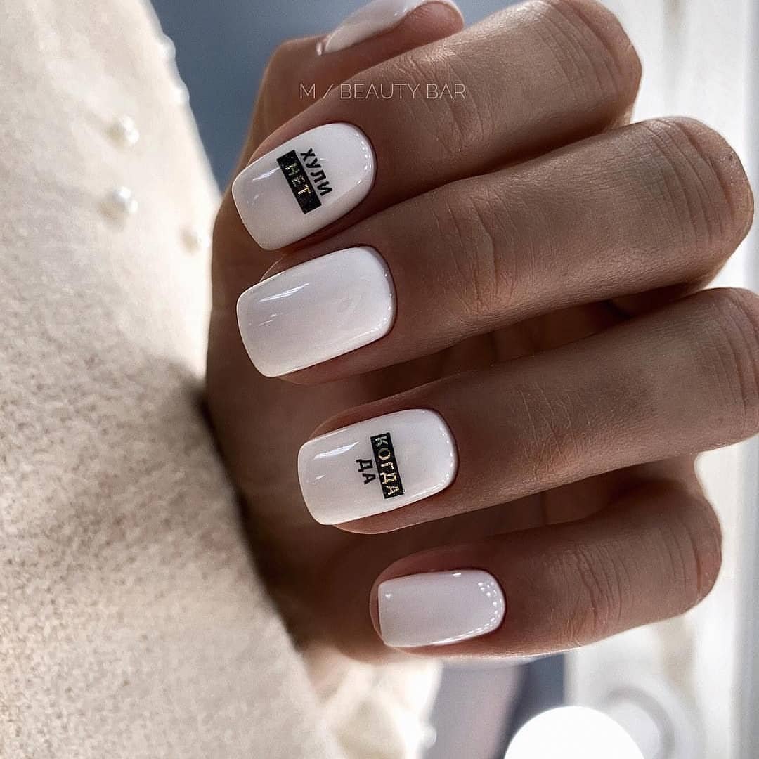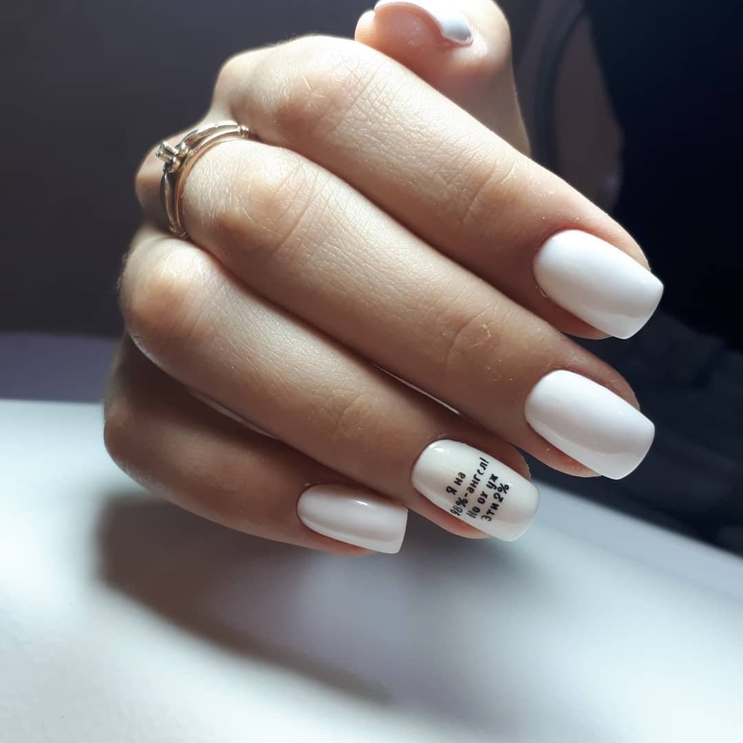Белый маникюр на короткие квадратные