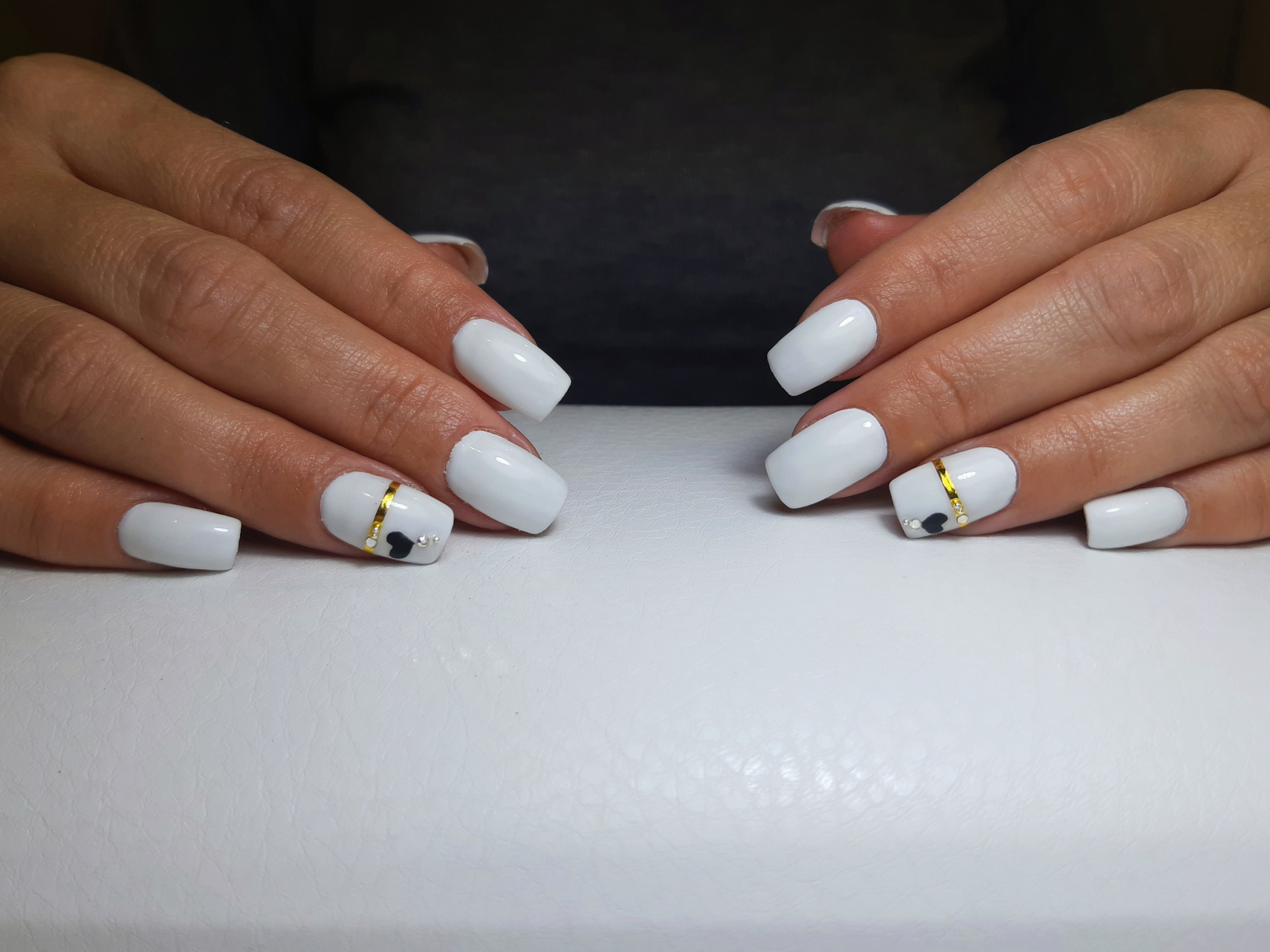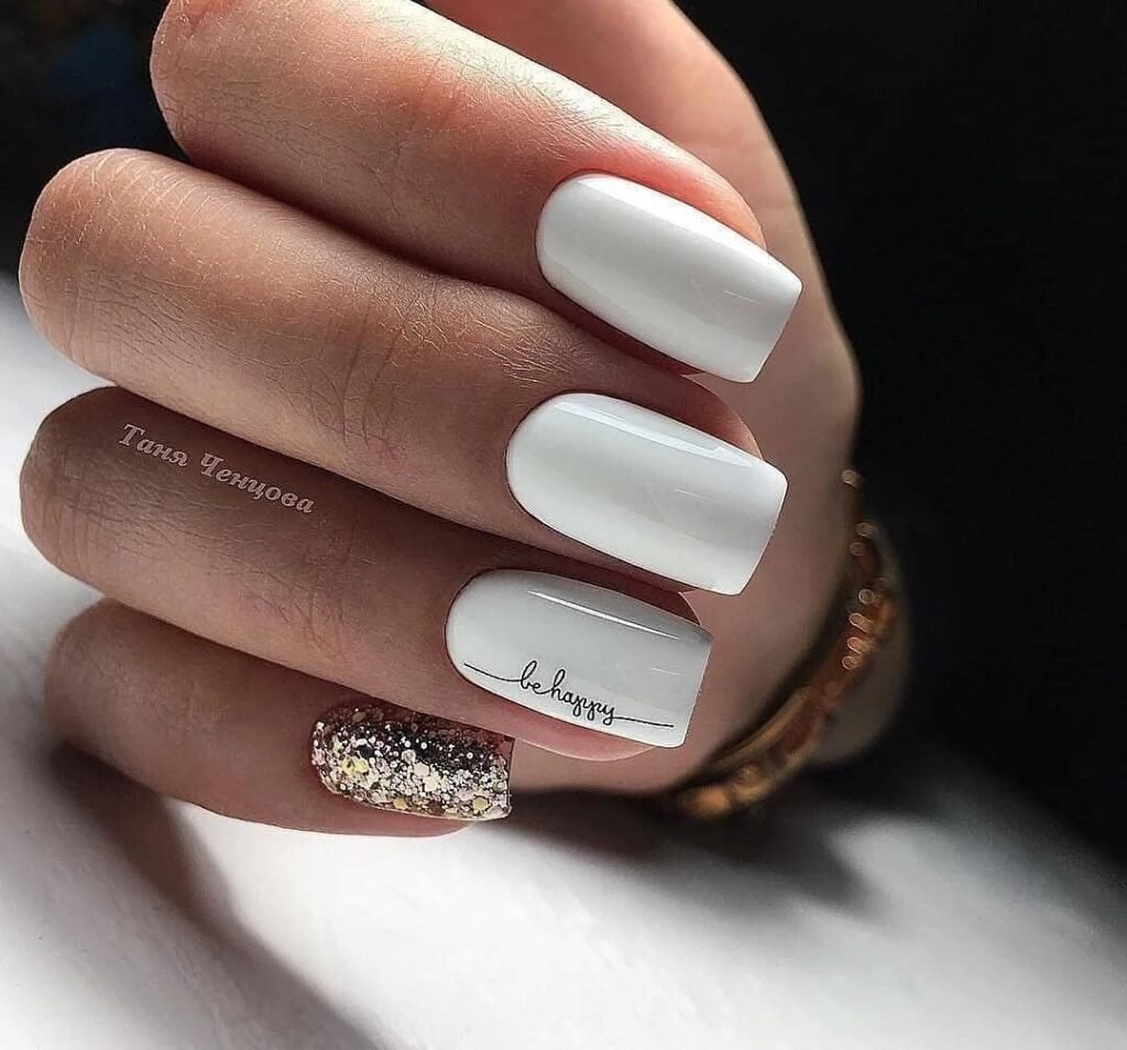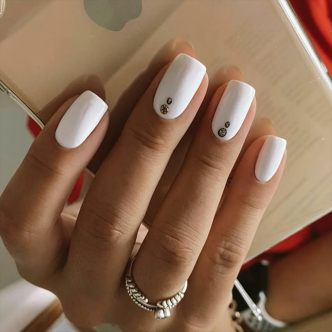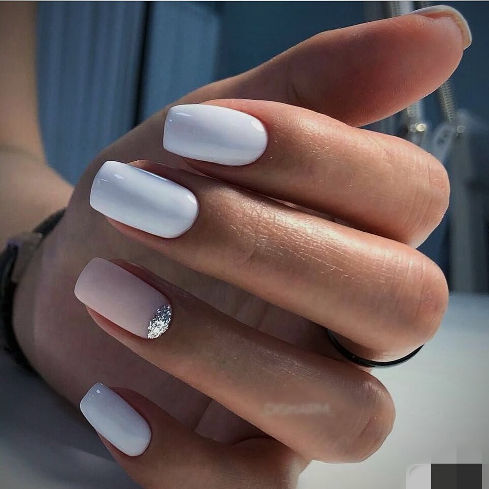 Белый маникюр на короткие квадратные