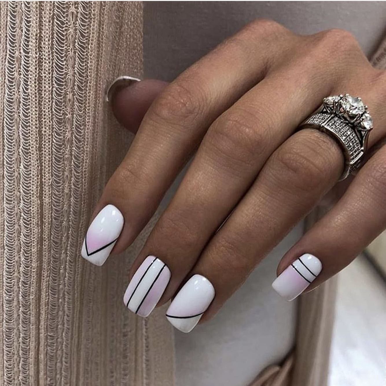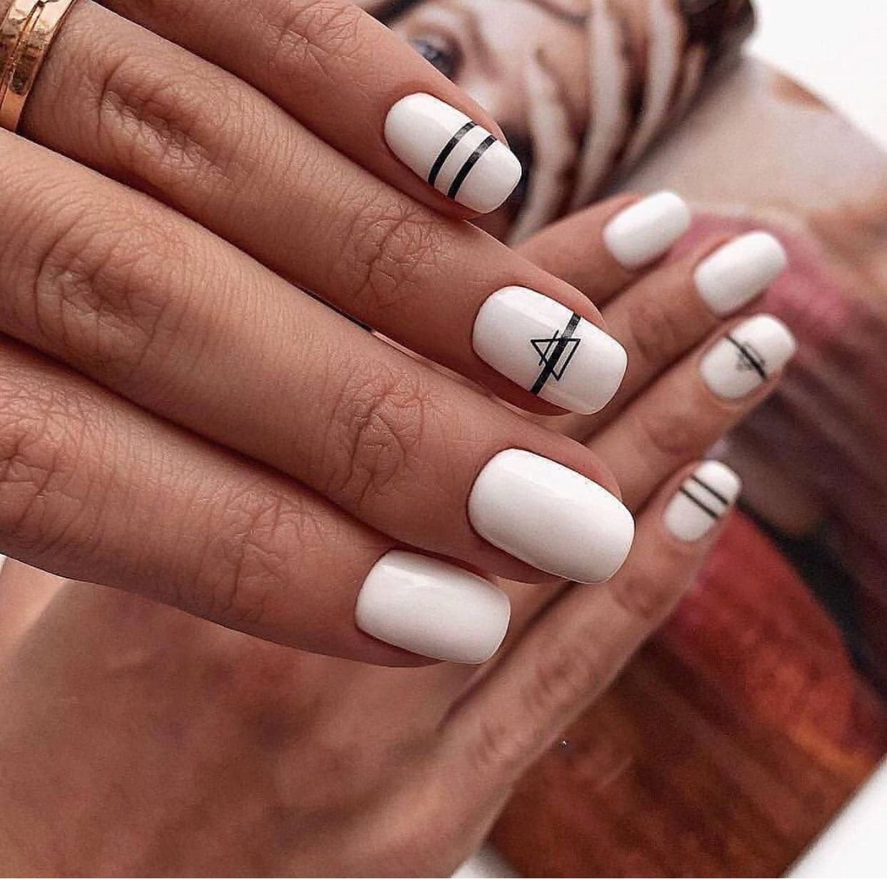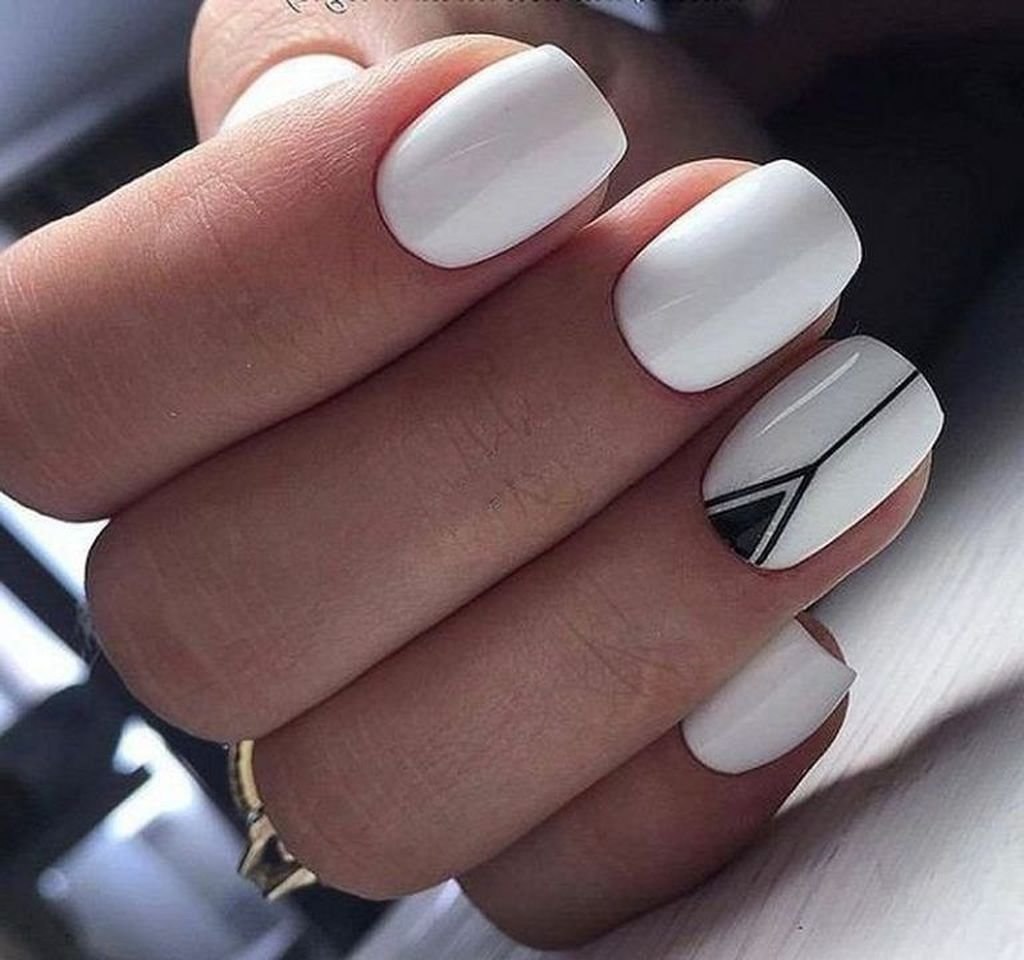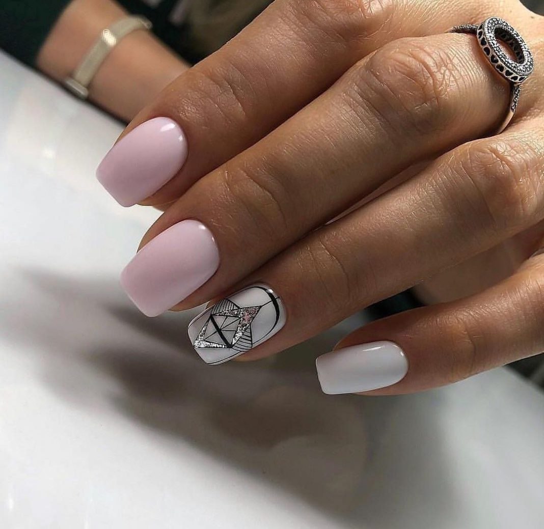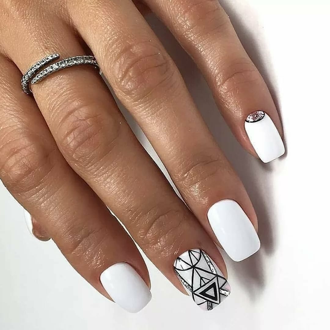 Белый маникюр с геометри