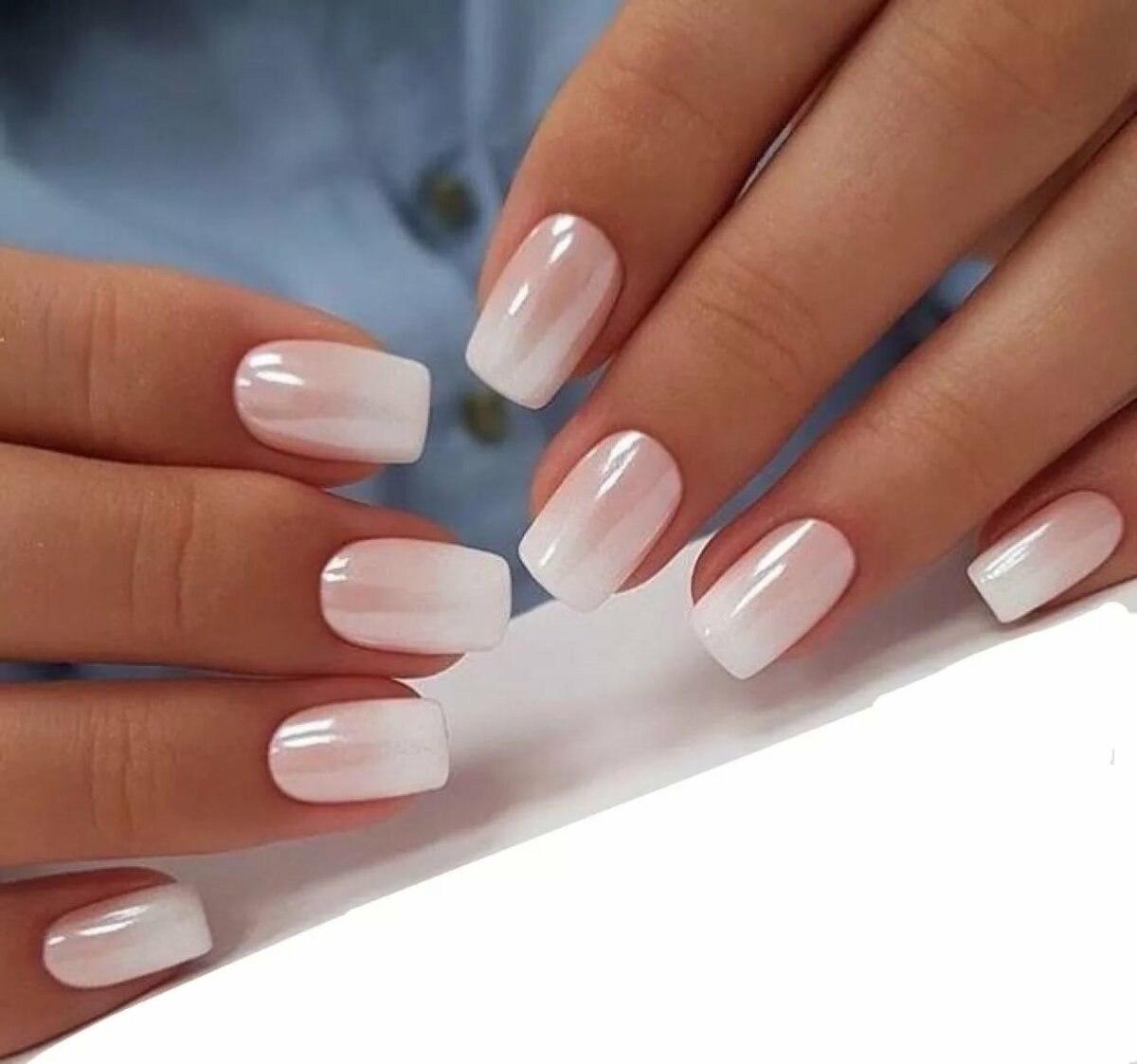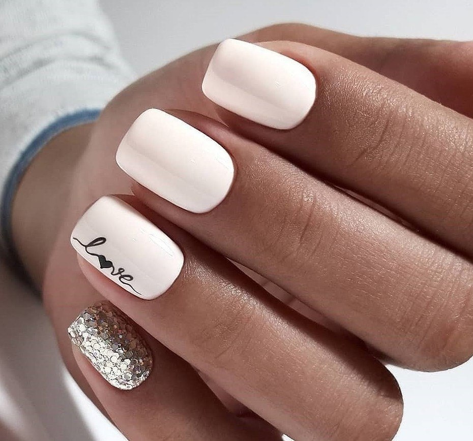 Молочный маникюр на короткие ногти квадратной формы