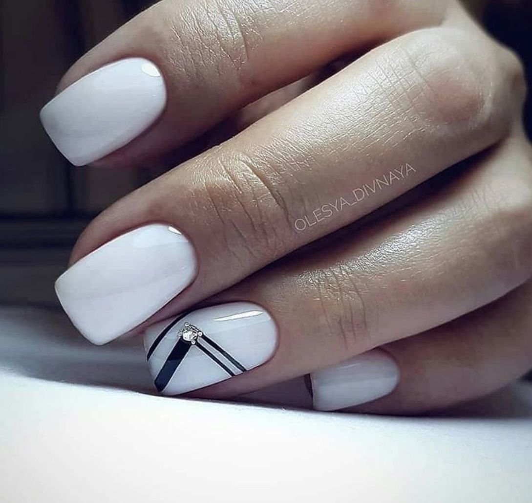 Белый маникюр с полосками