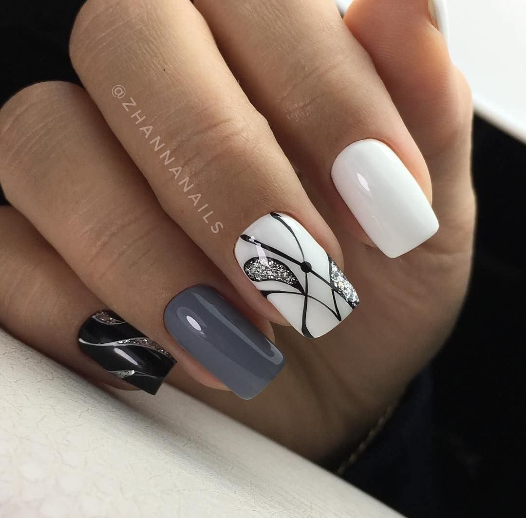 Черно белый маникюр