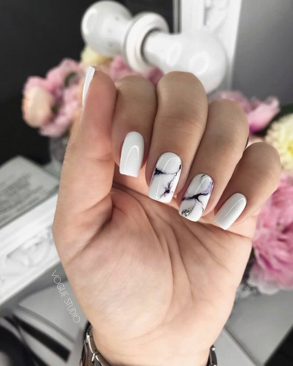 Маникюр белый мрамор