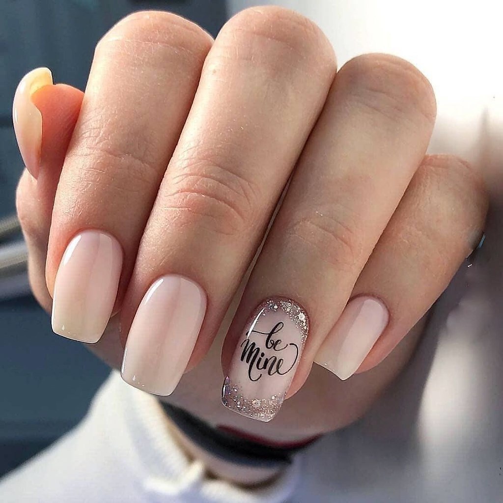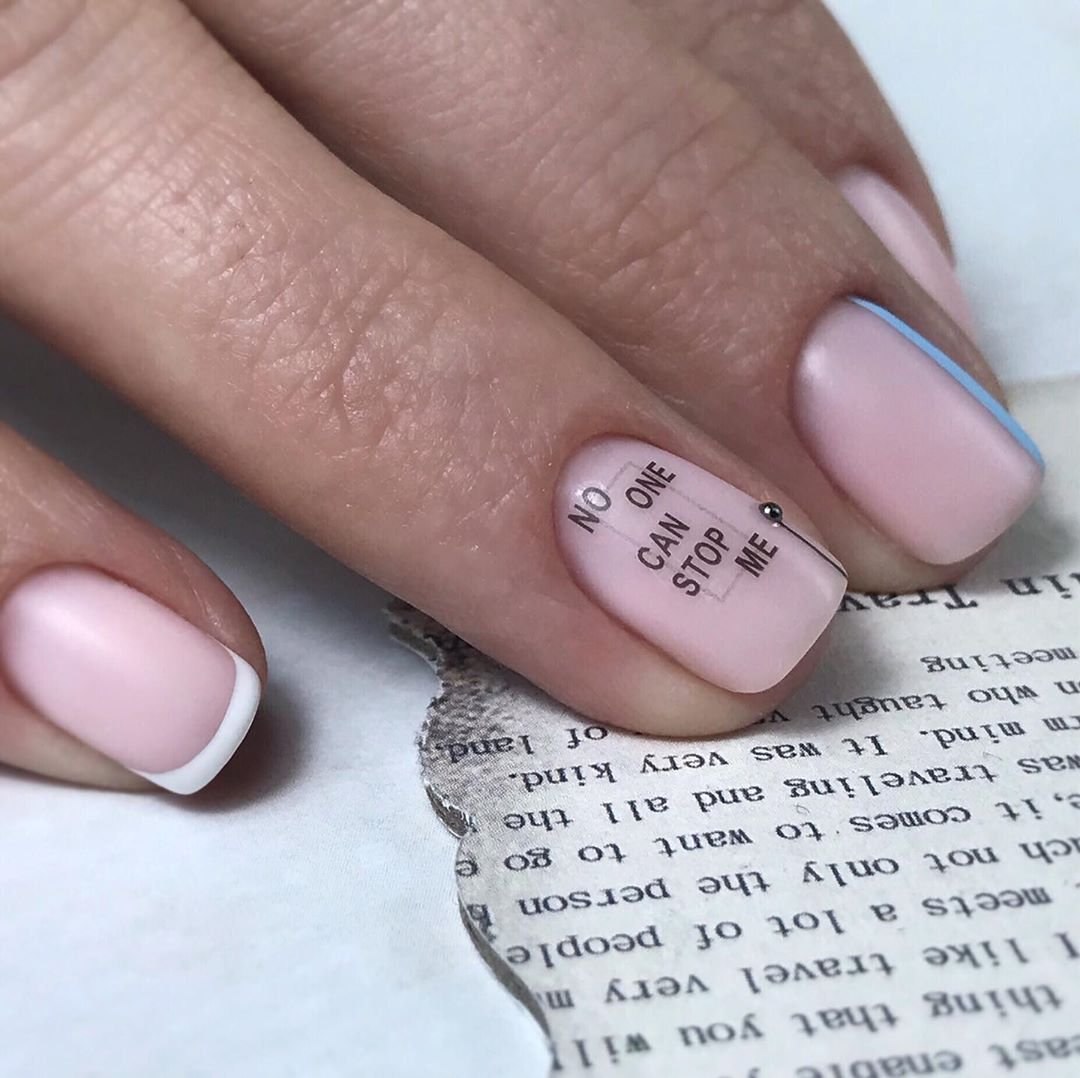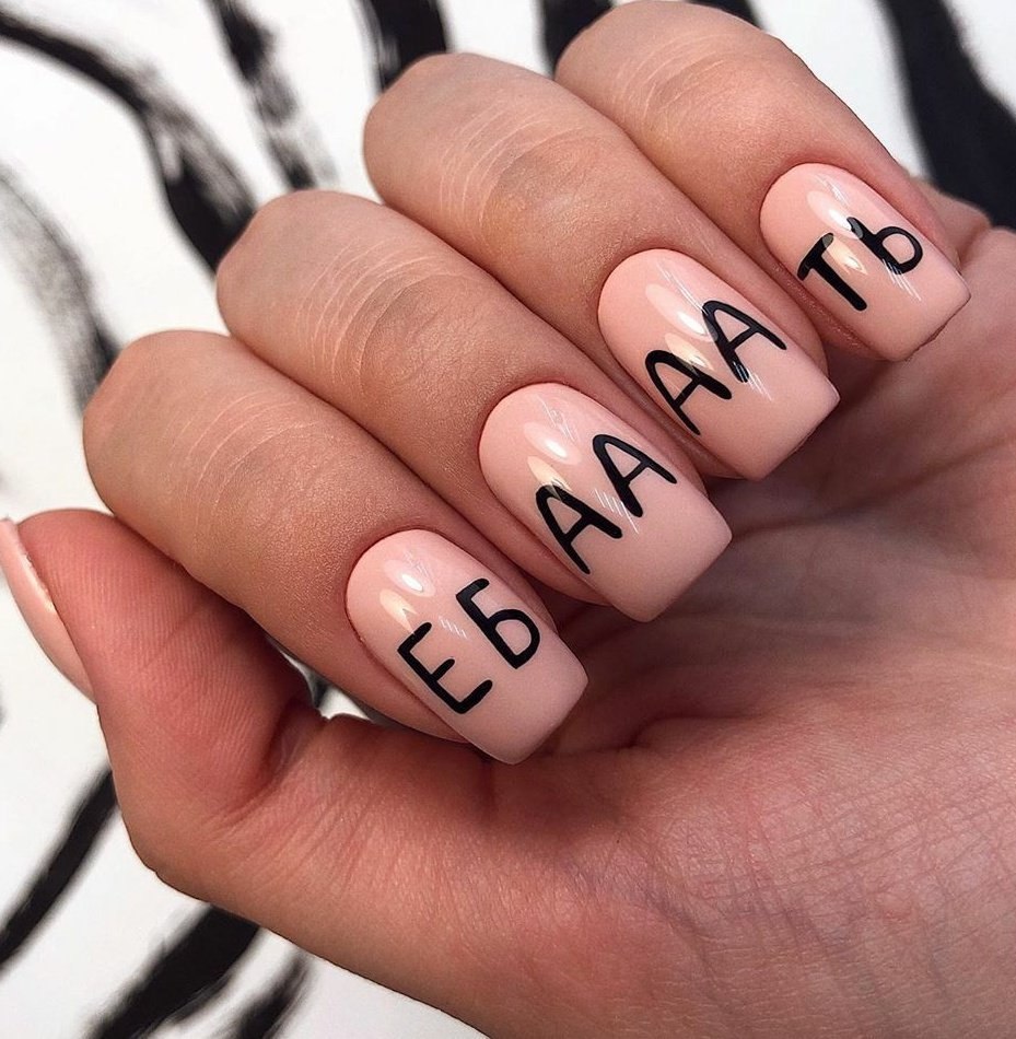 Нюдовый маникюр с надписями