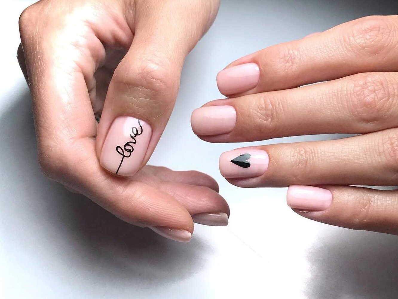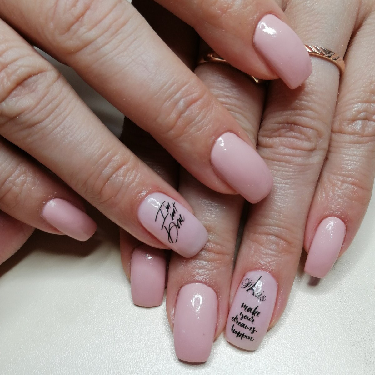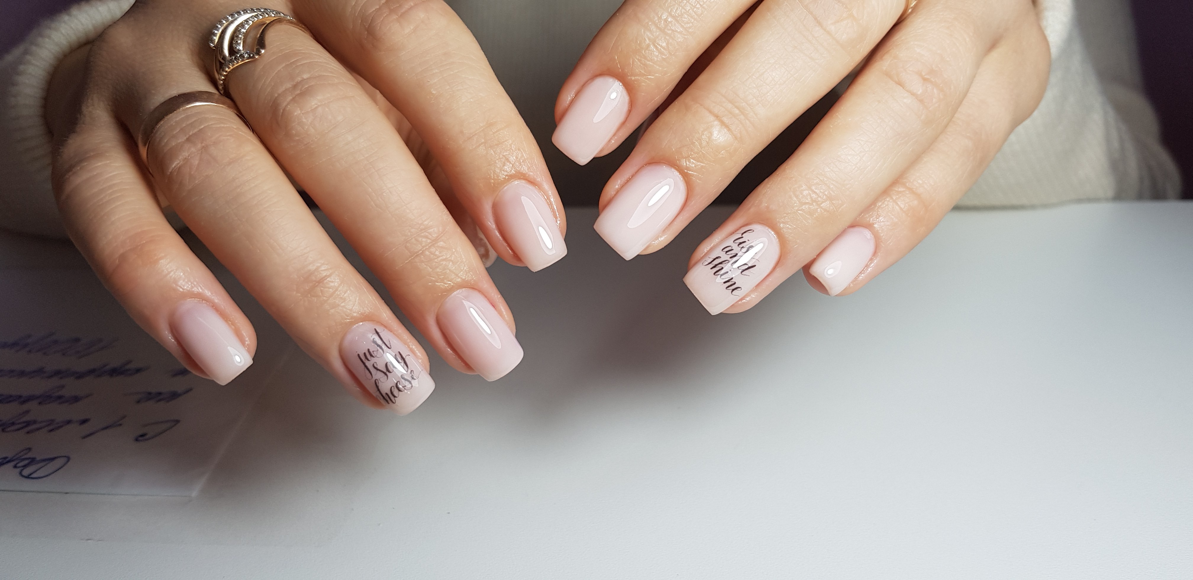 Нюдовый маникюр с надписями