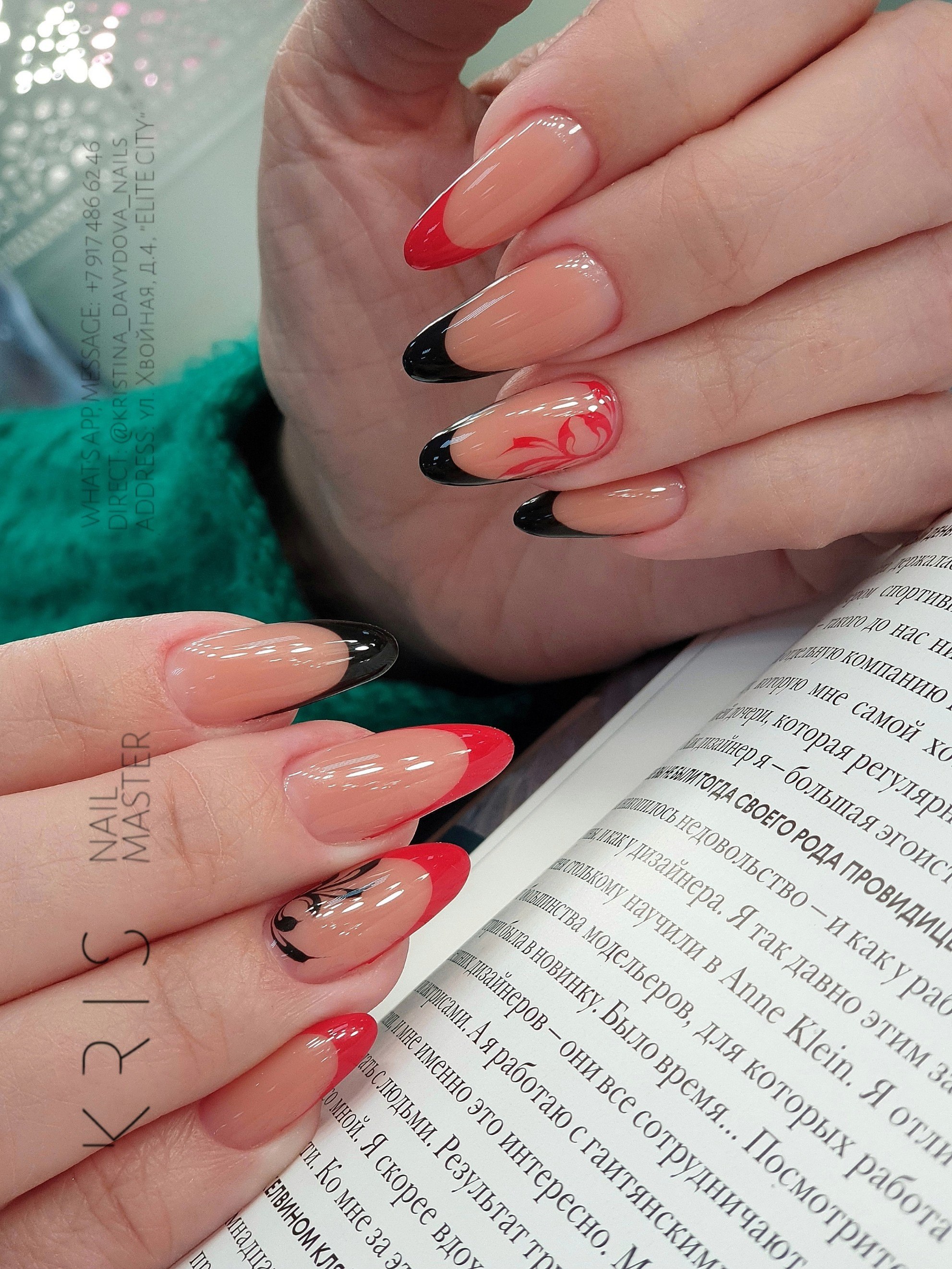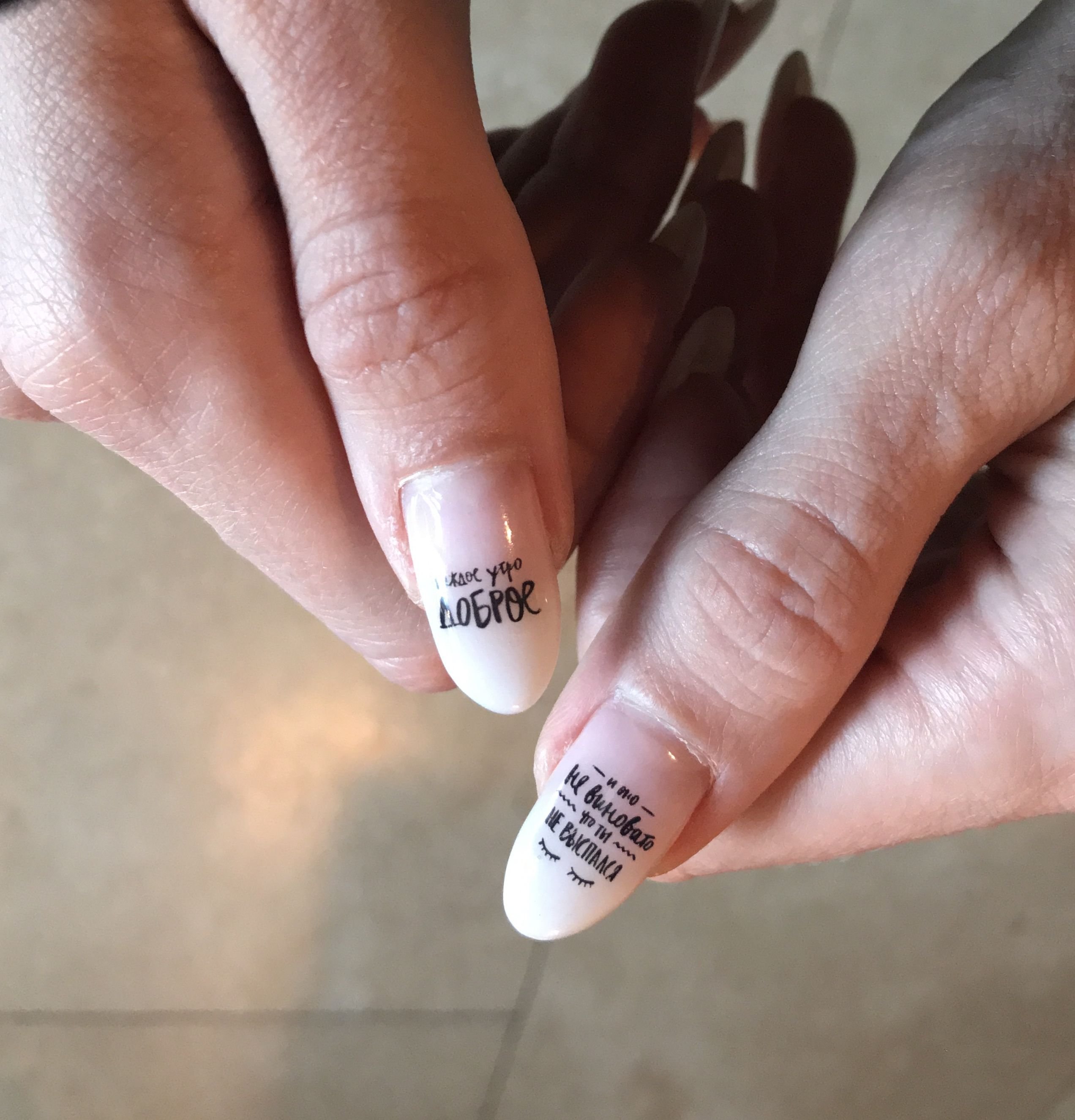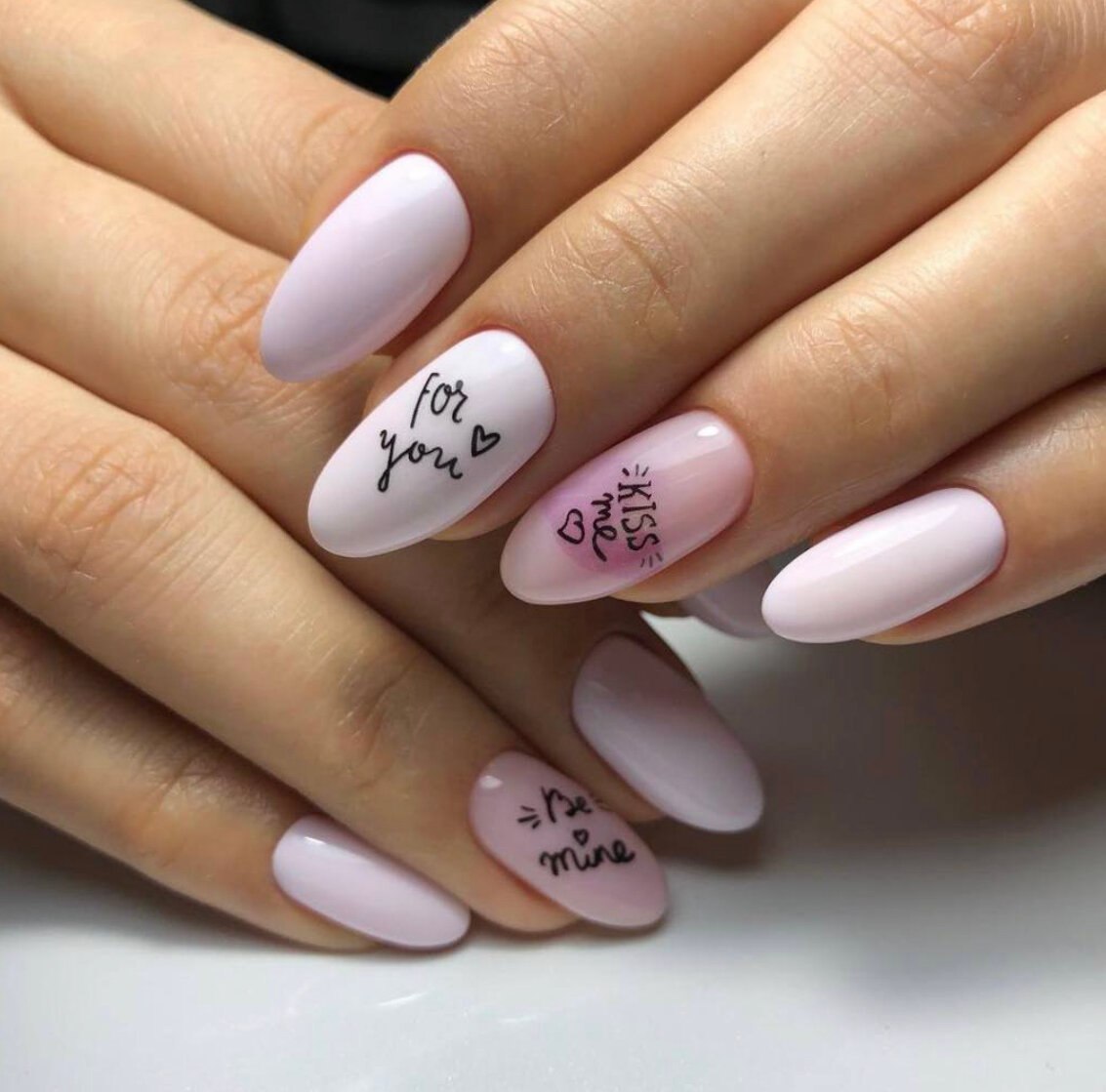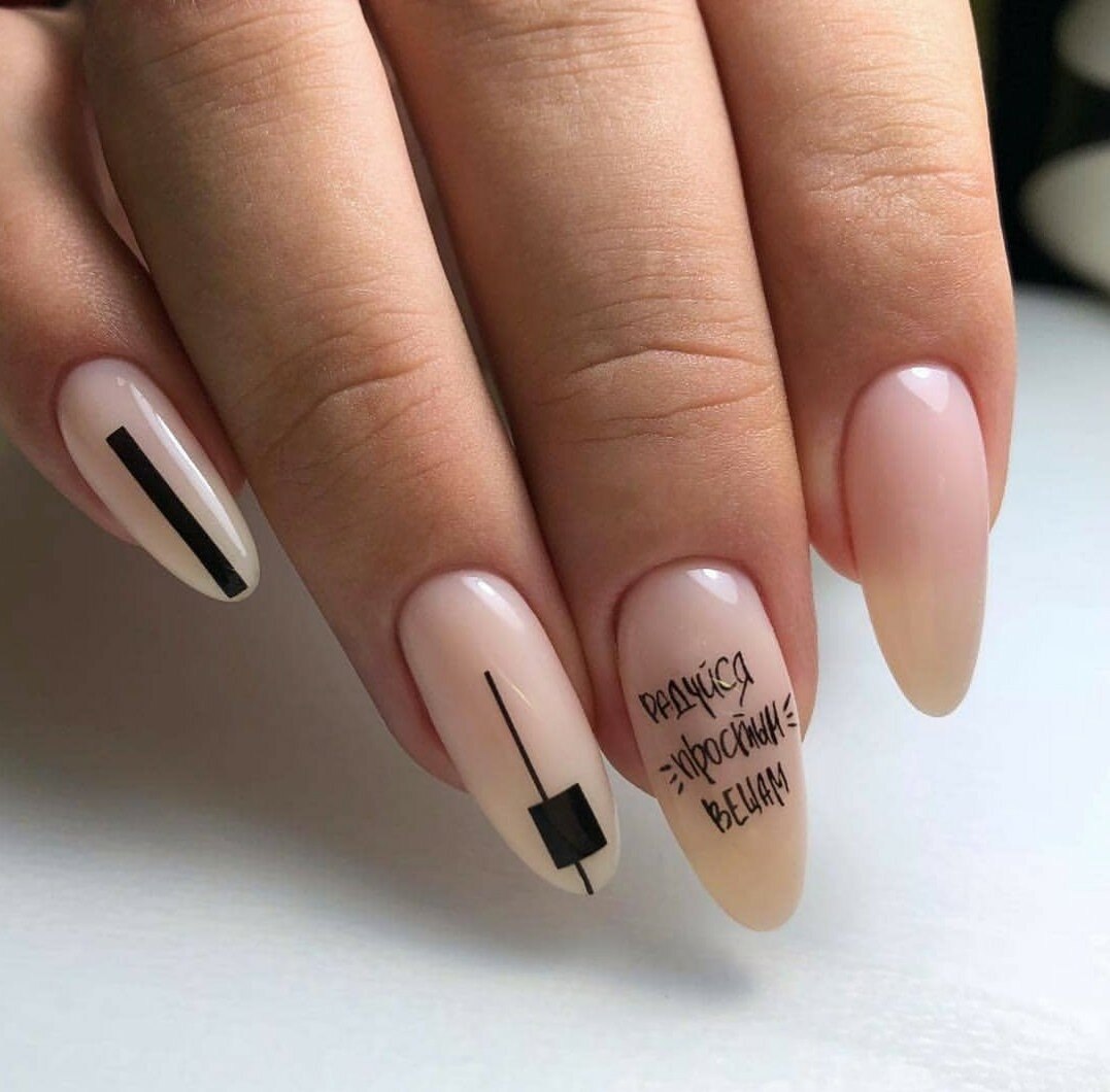 Маникюр на миндалевидные ногти с надписями