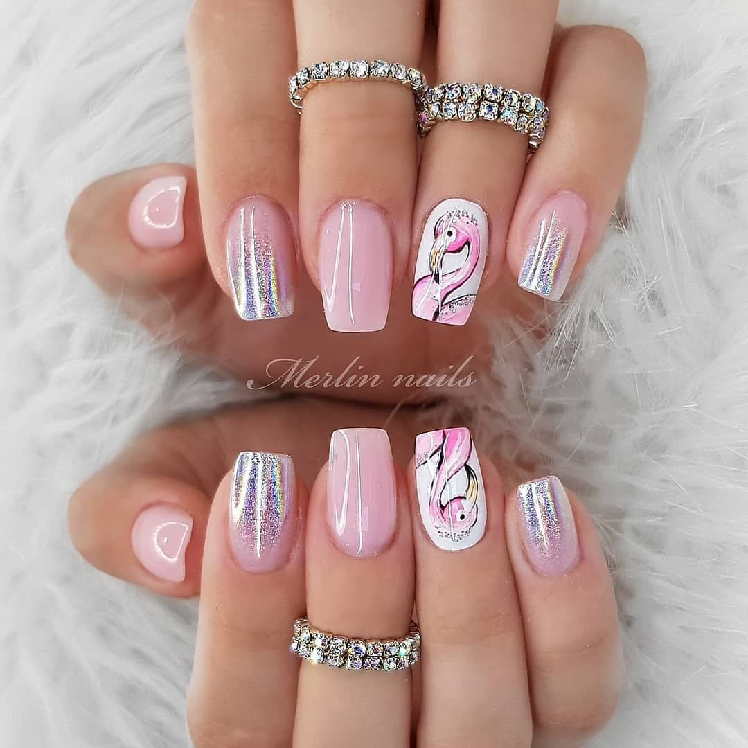 Розовый Фламинго на ногтях