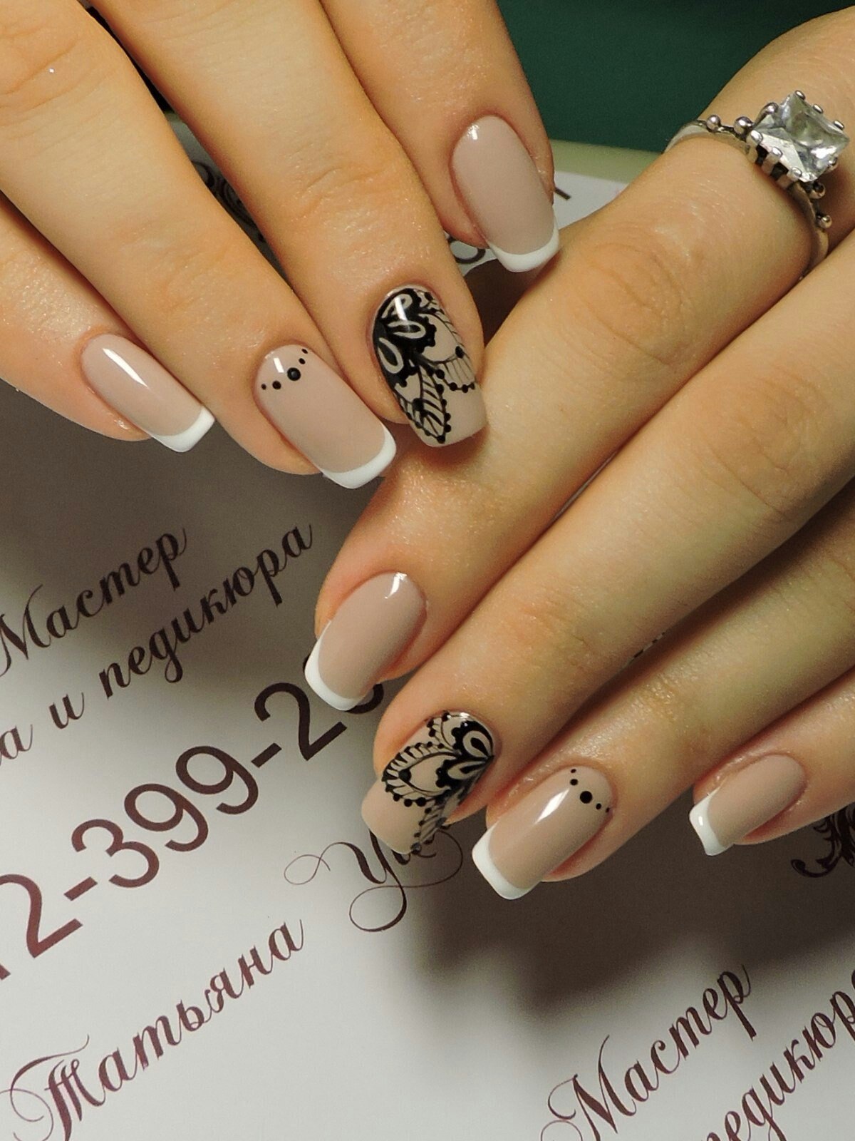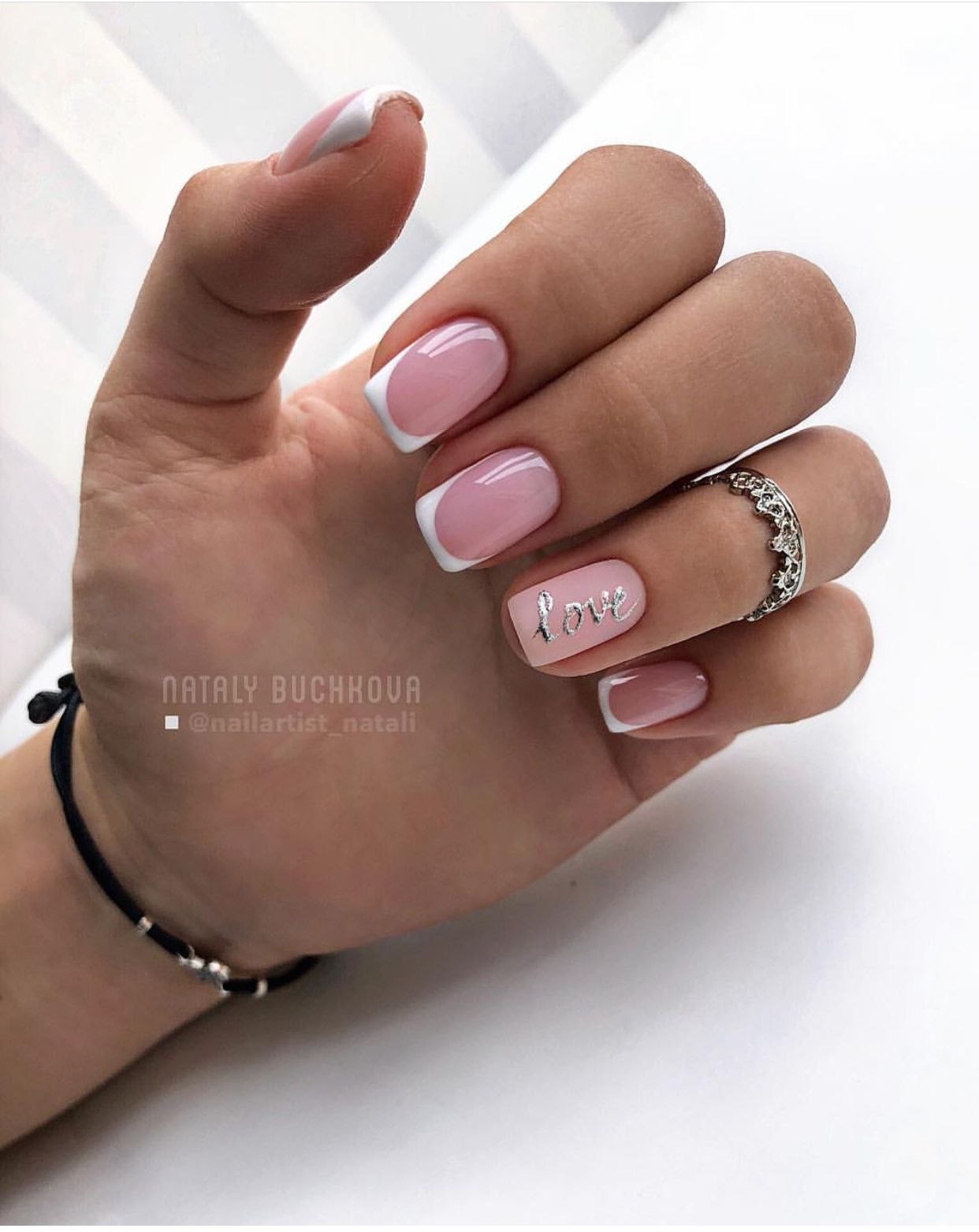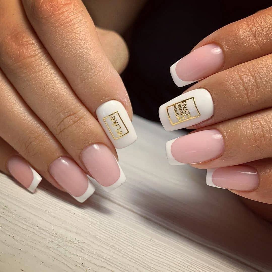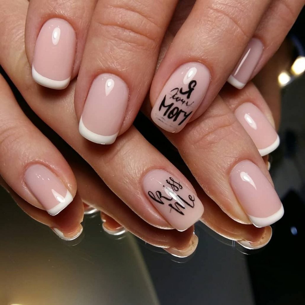 Французский маникюр с надписями