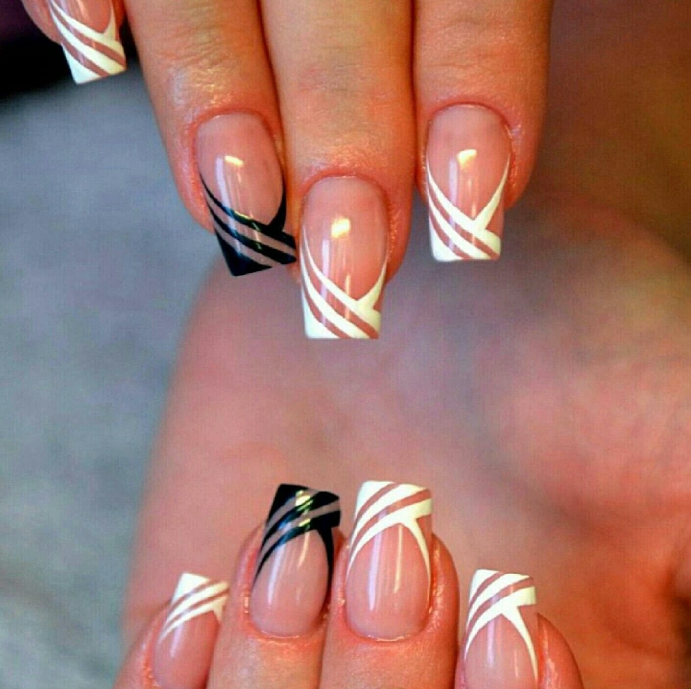 Белые ногти с черным френчем квадрат