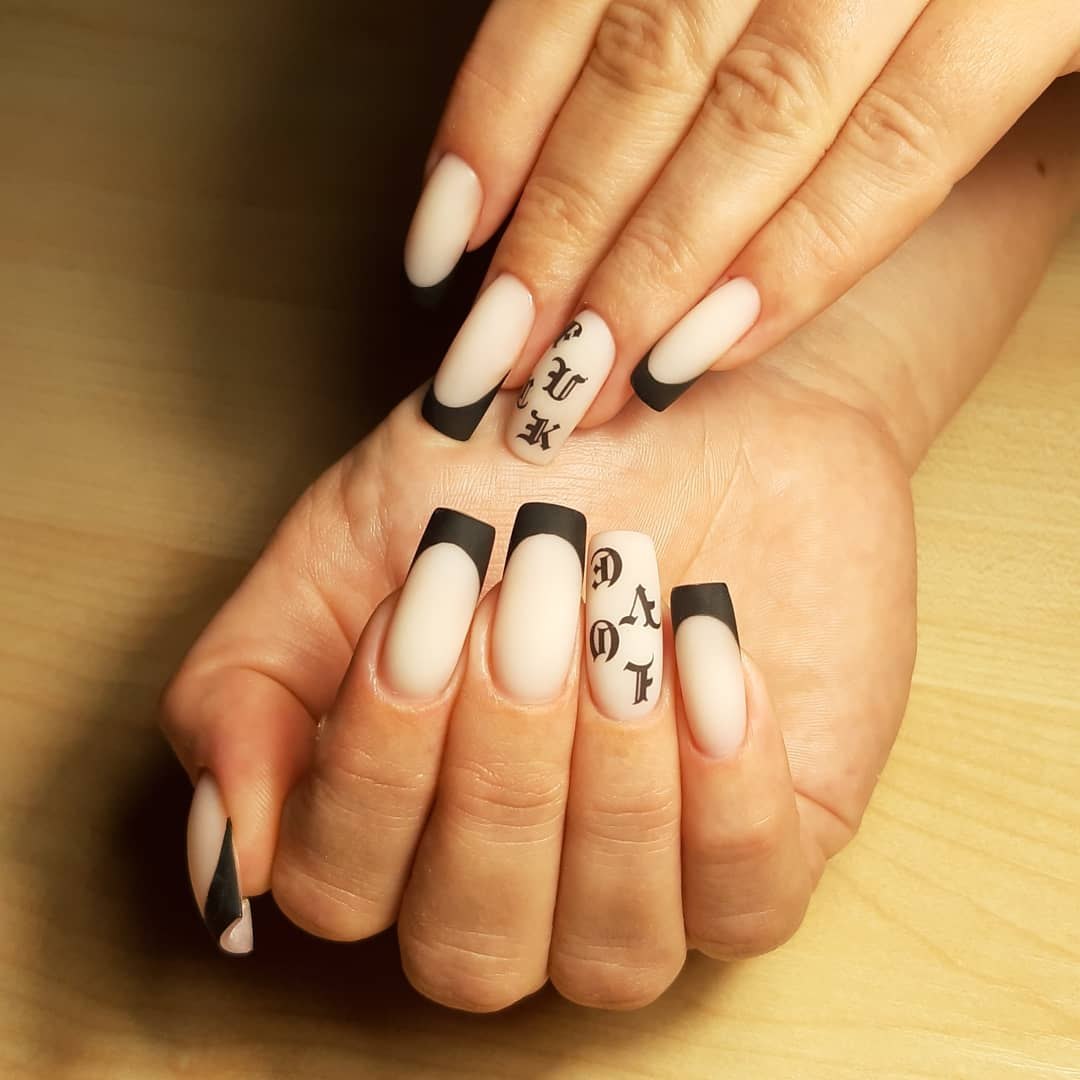 Дизайны френча на ногтях с надписями