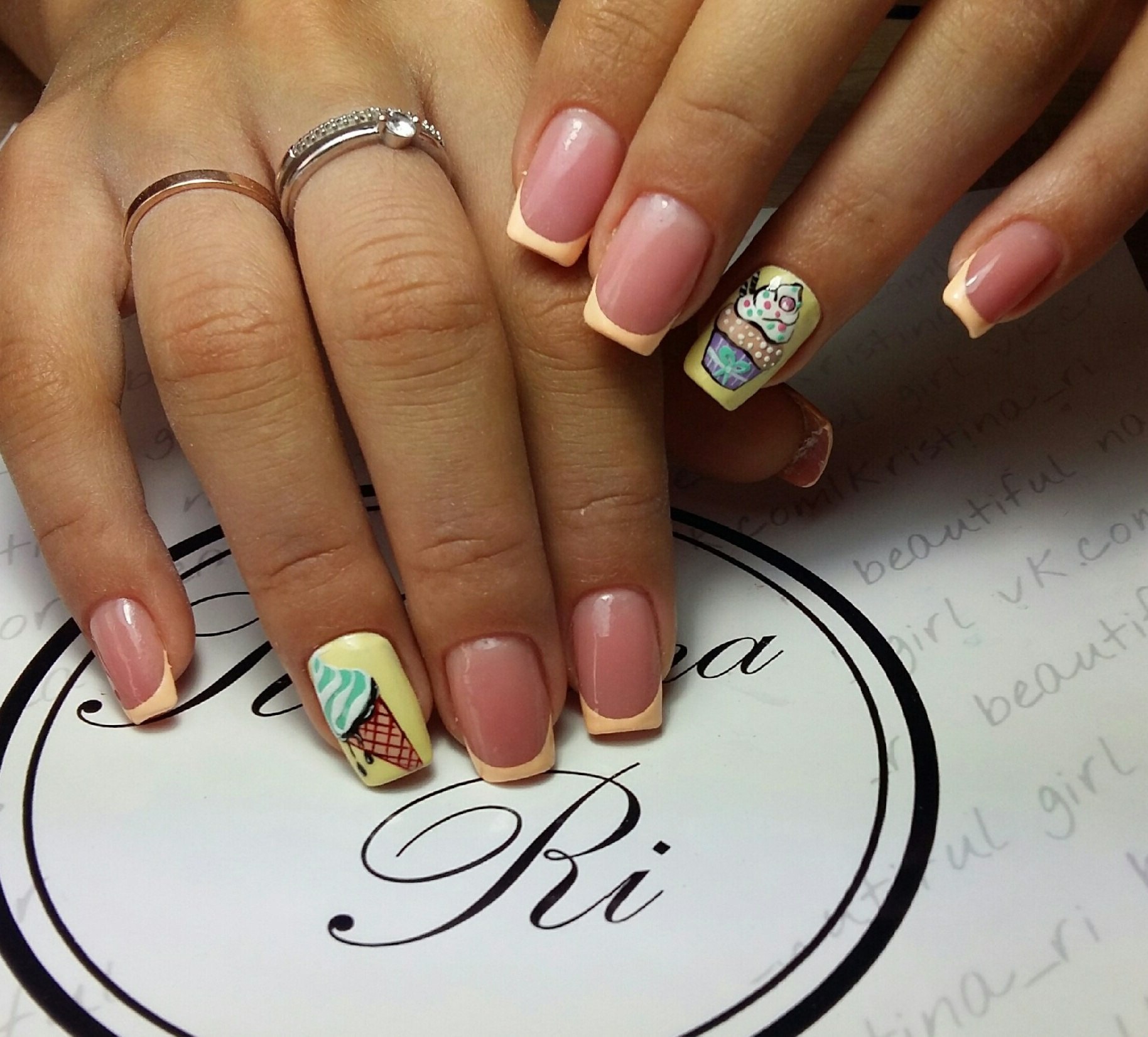 Маникюр френч с надписями