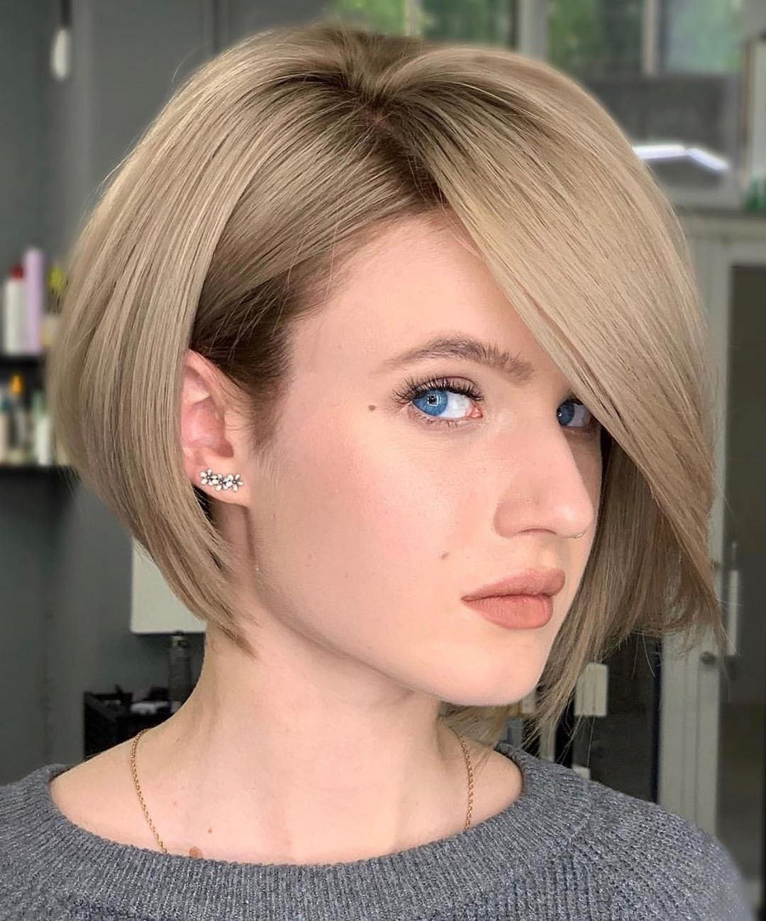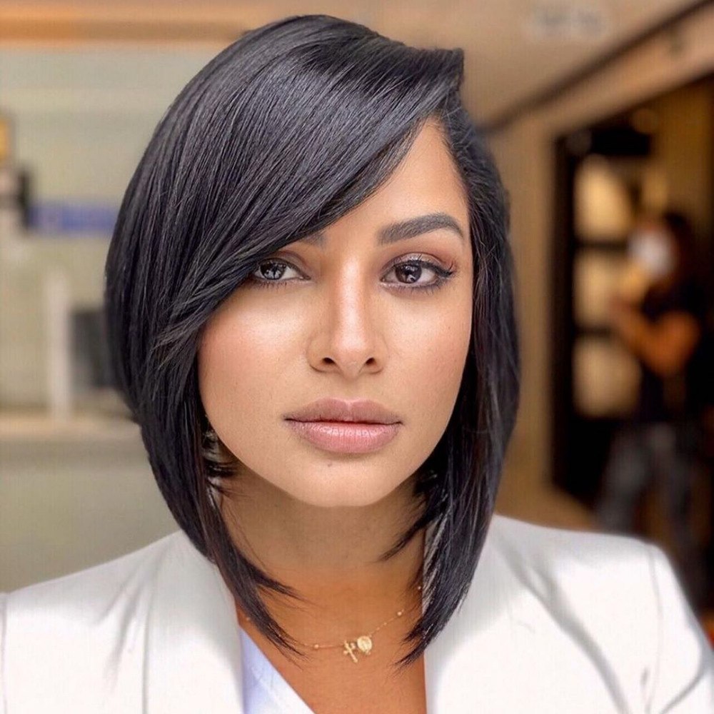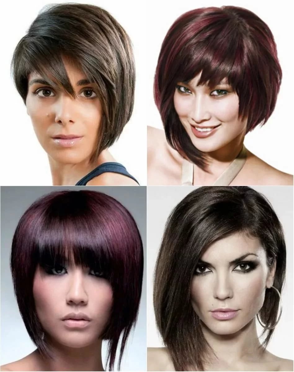 Стрижка Боб каре градуированное на средние волосы с челкой