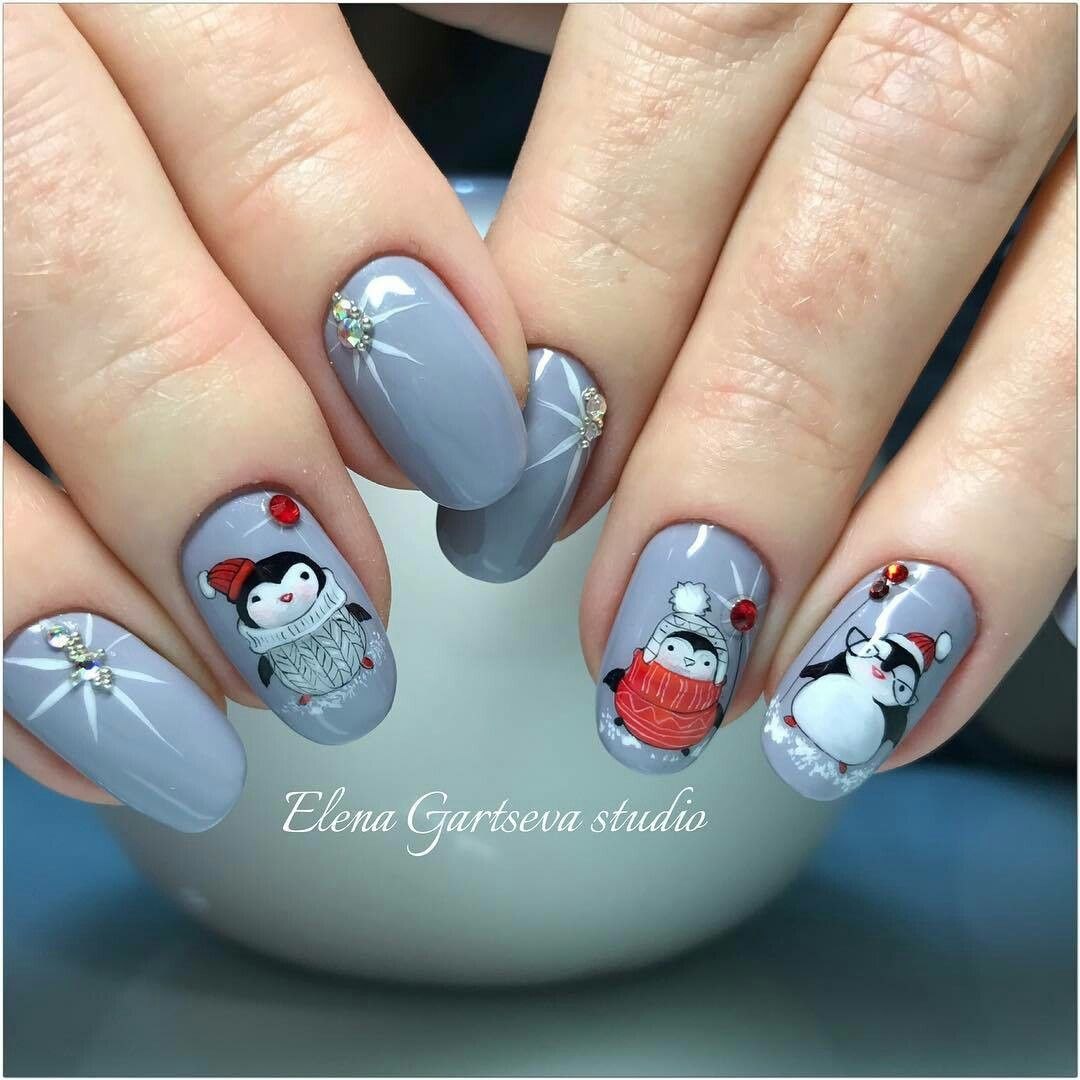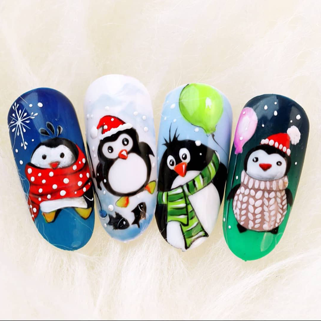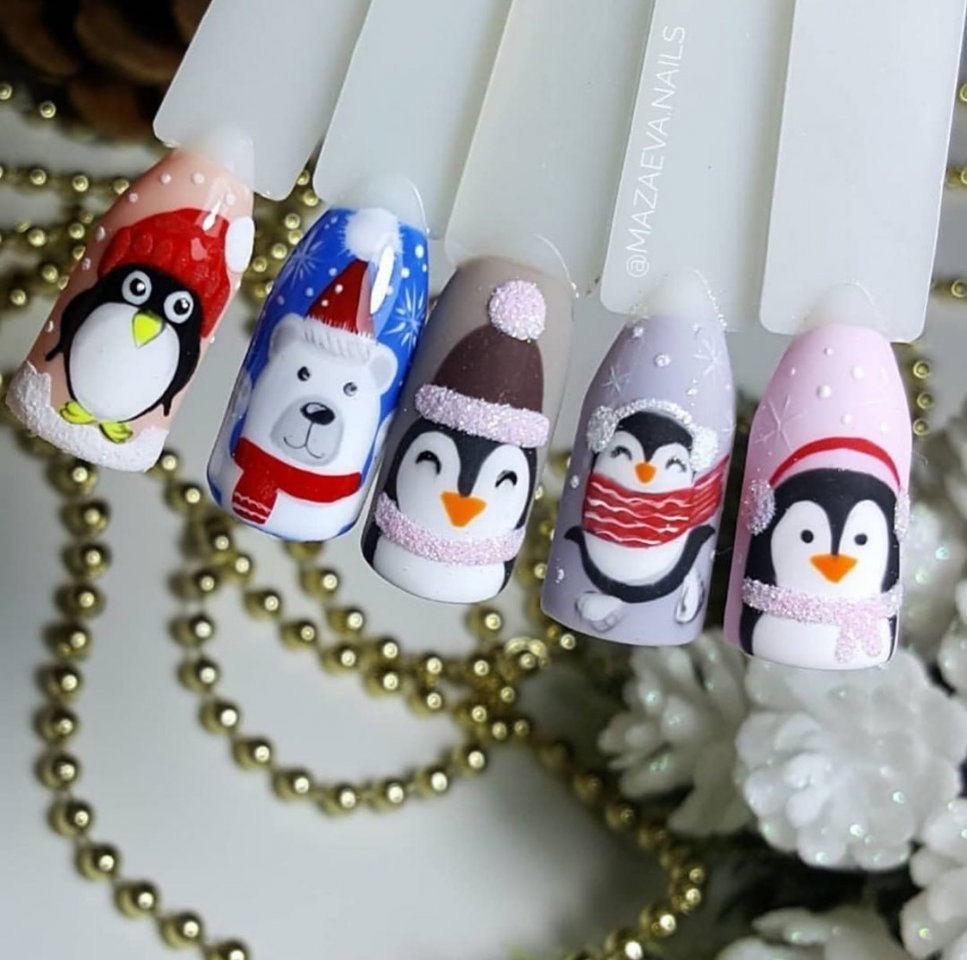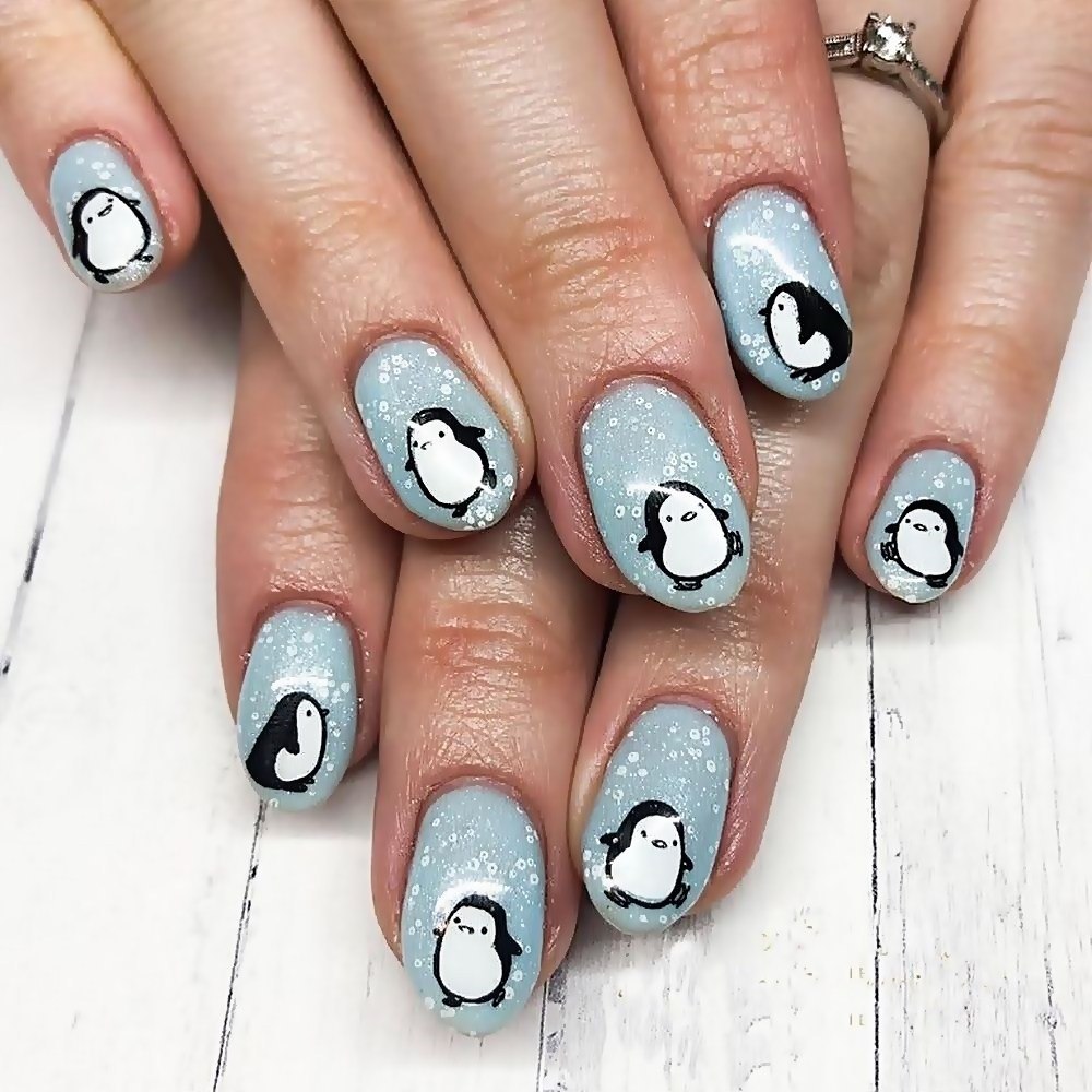Дизайн ногтей с пингвинами