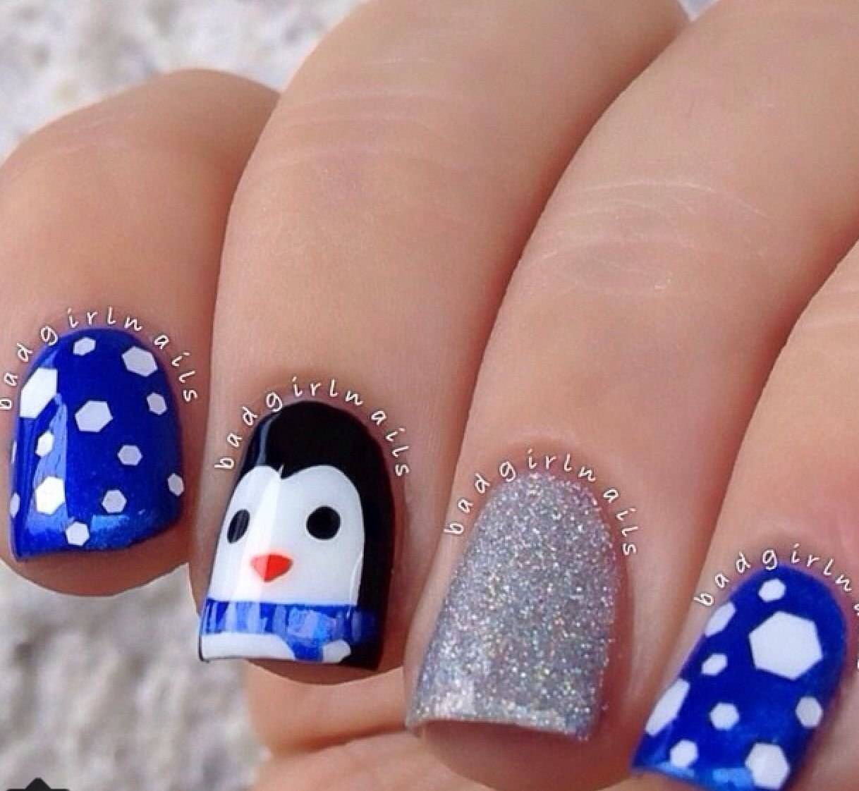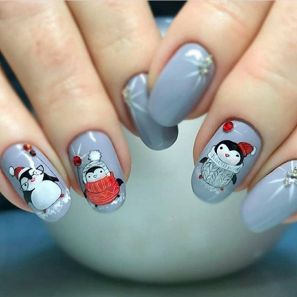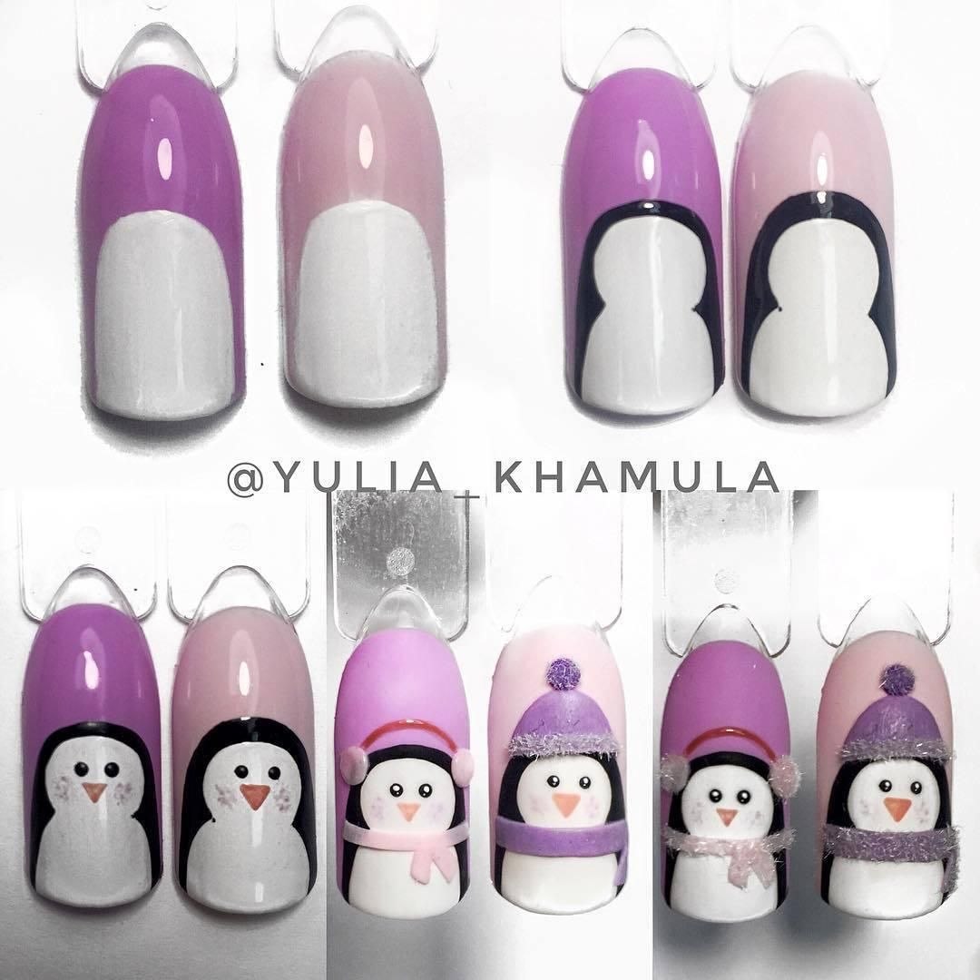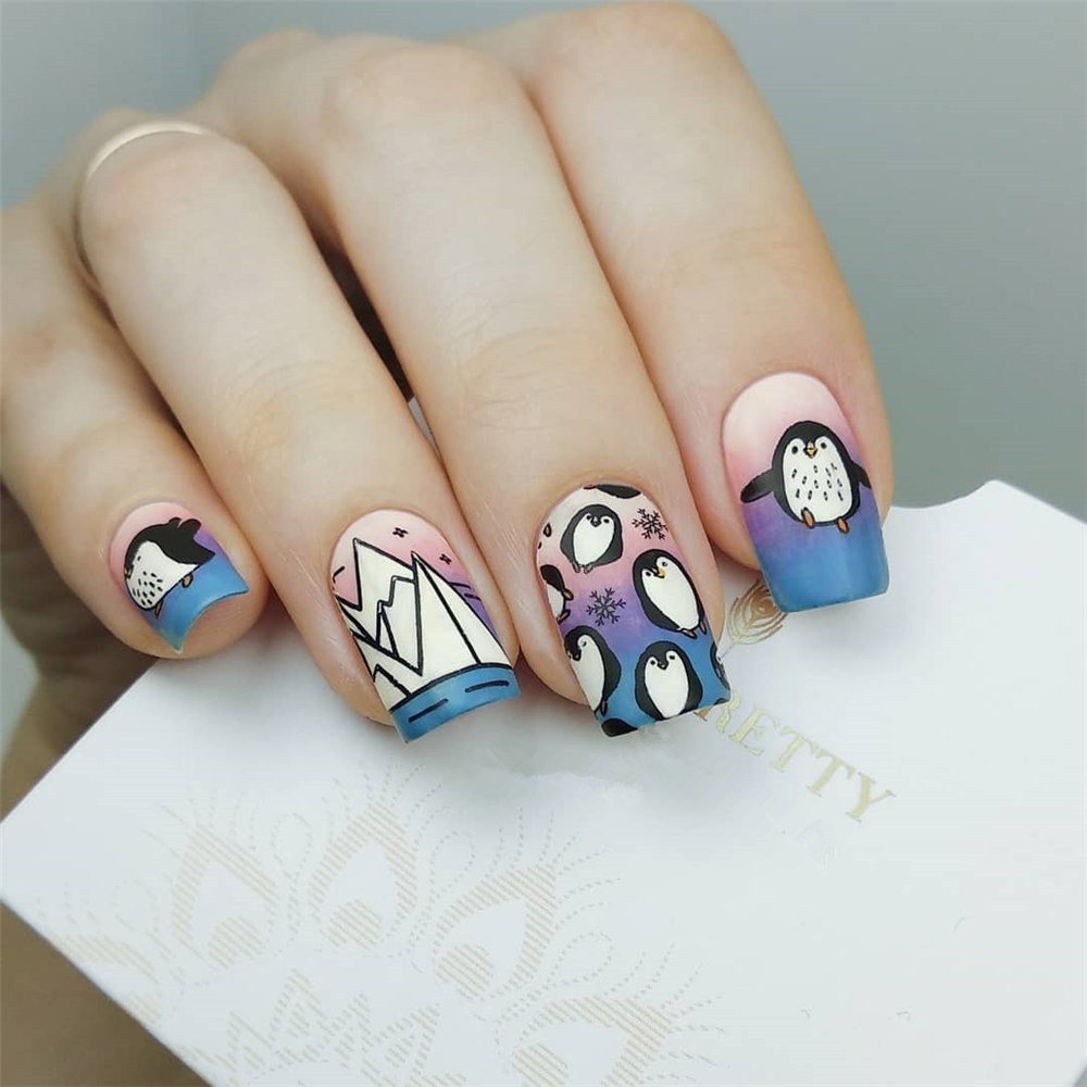 Дизайн ногтей с пингвинами