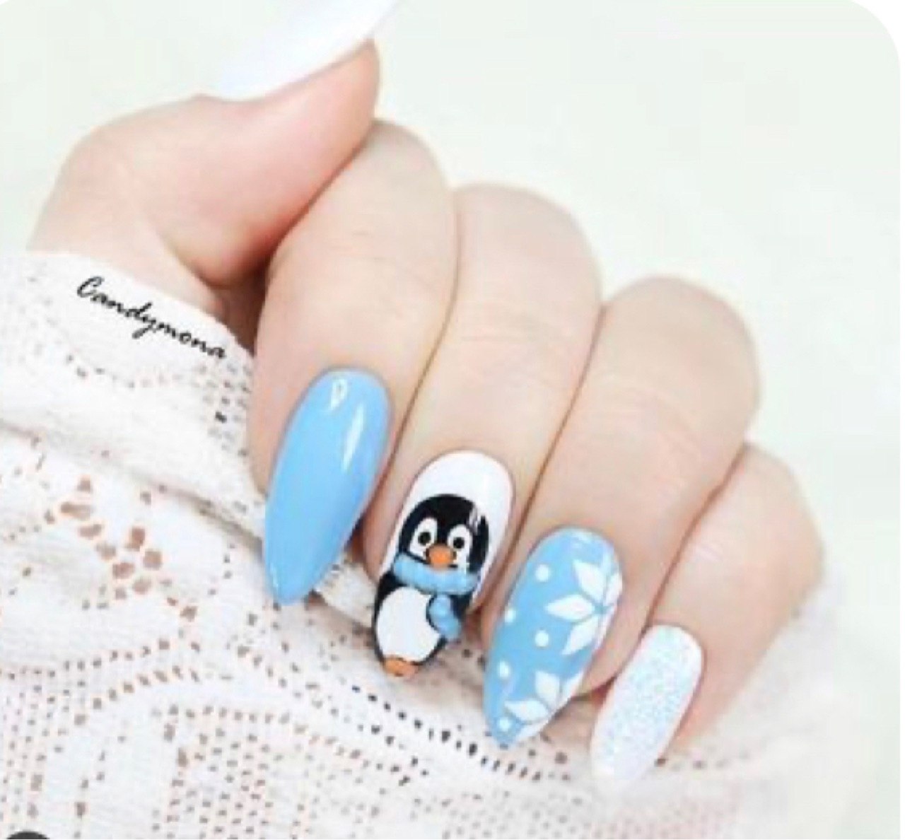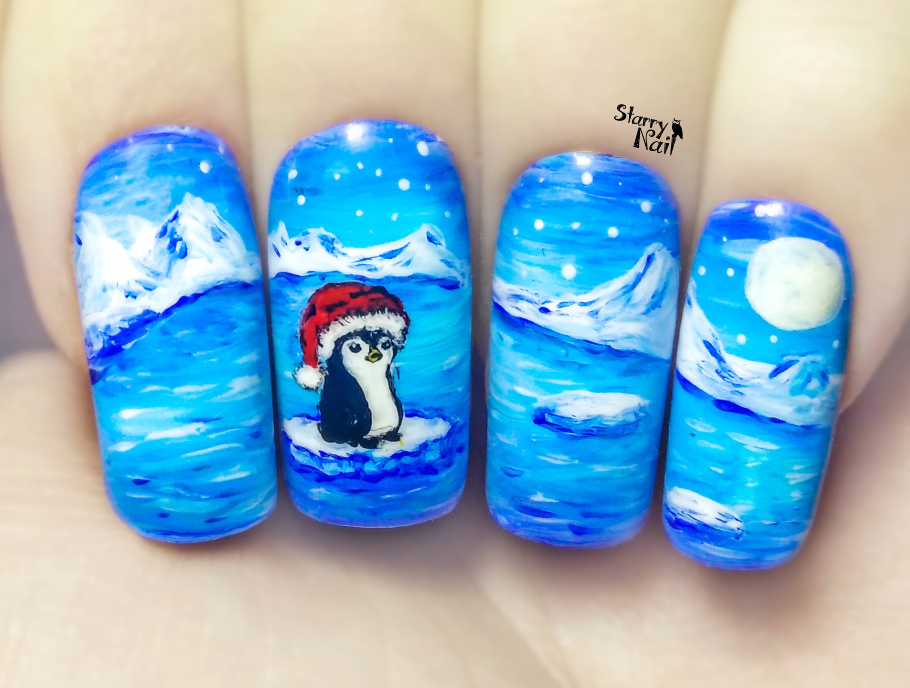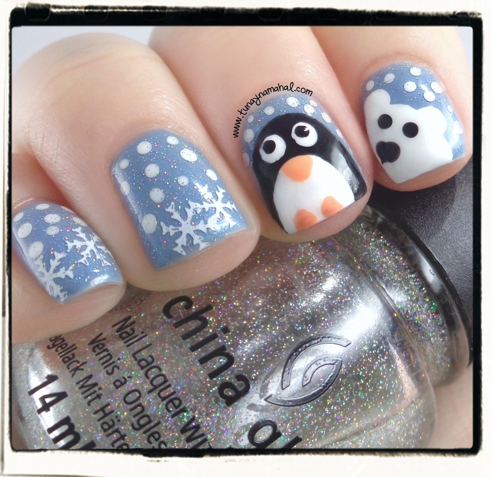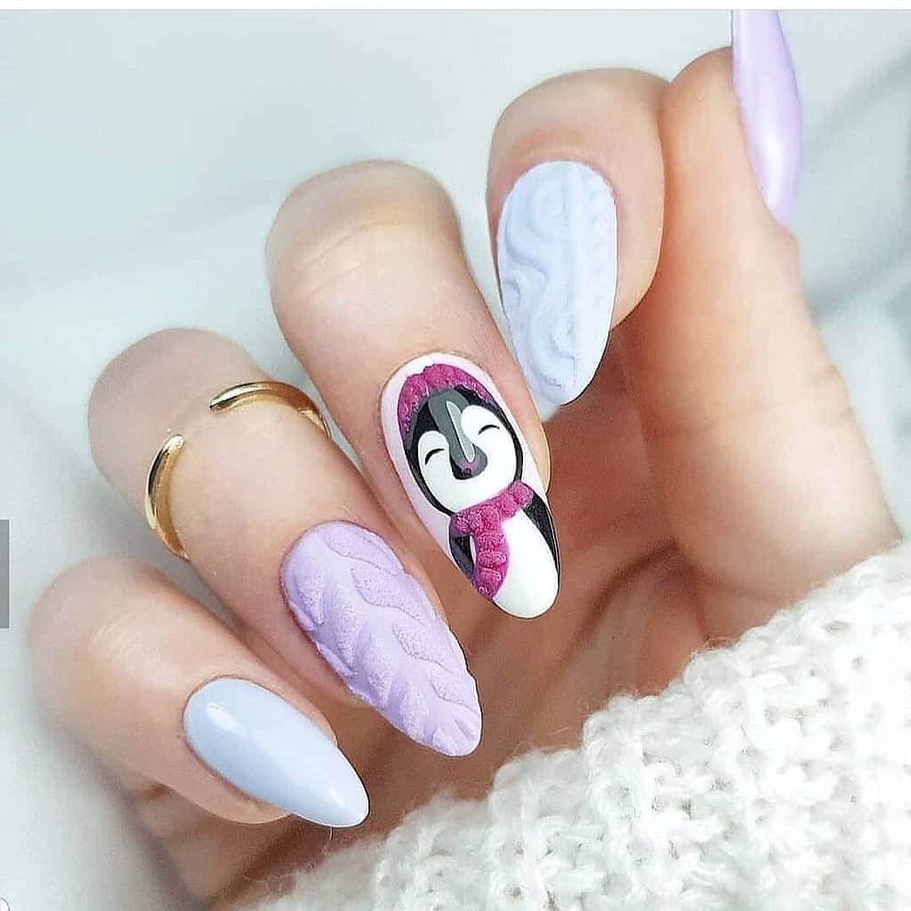 Дизайн ногтей с пингвинами