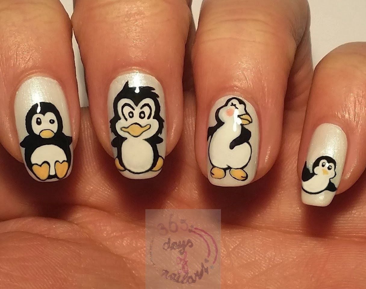 Ногти с пингвинчиками