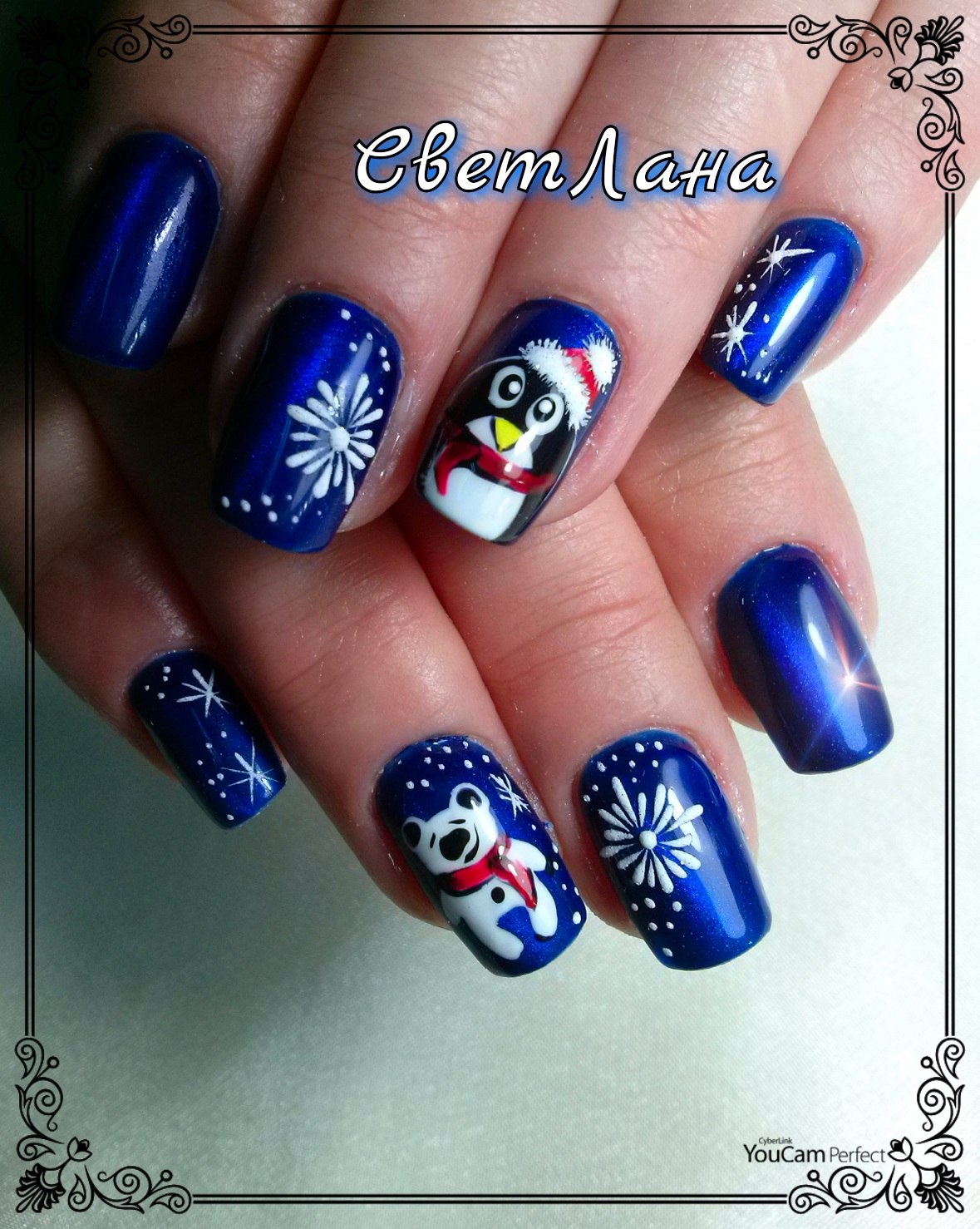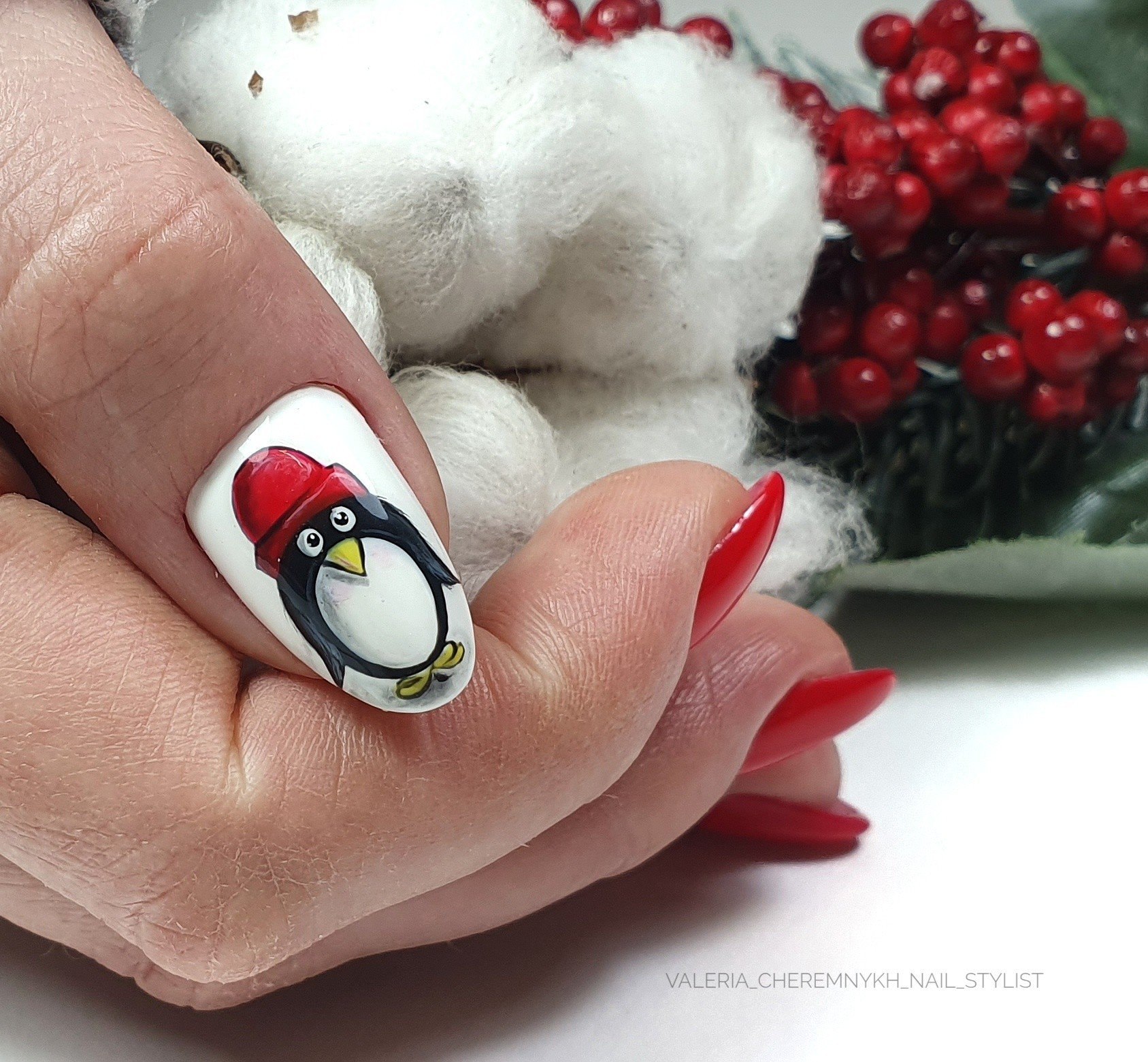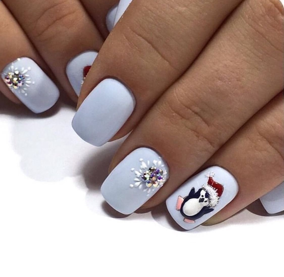 Новогодний маникюр с пингвином