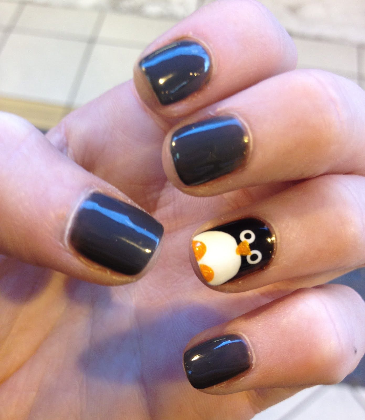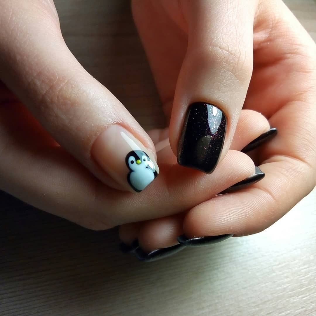 Маникюр с пингвином на короткие ногти