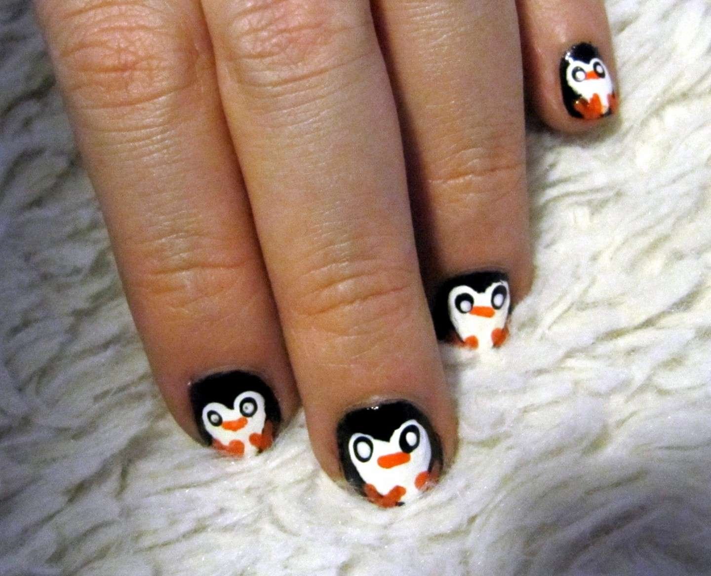 Маникюр с рисунком пингвина