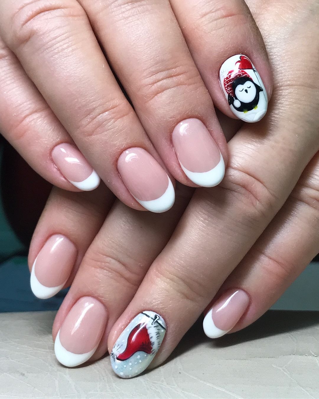 Маникюр френч с пингвинами