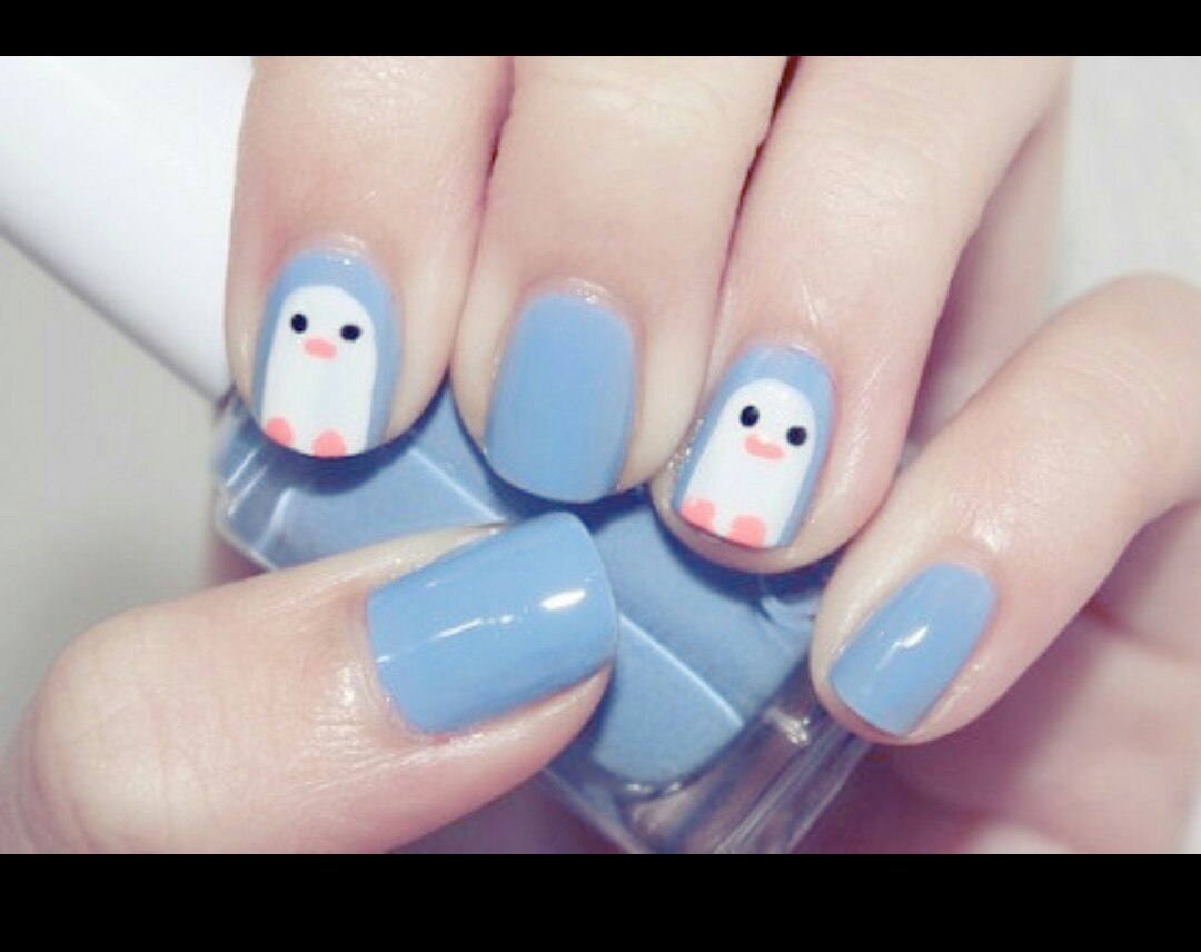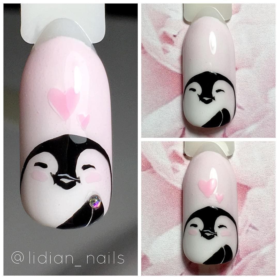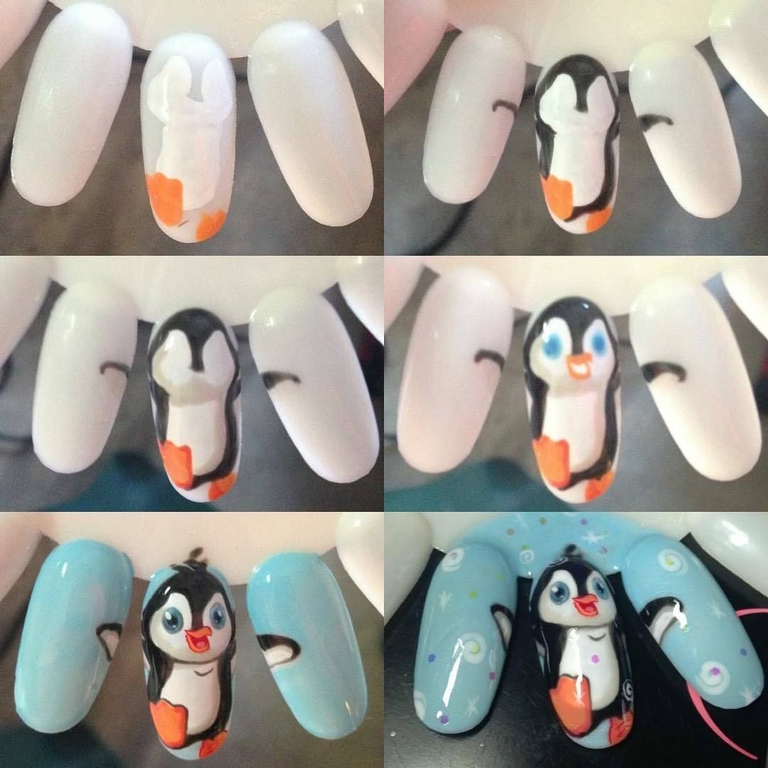 Пингвин рисунок на ногтях