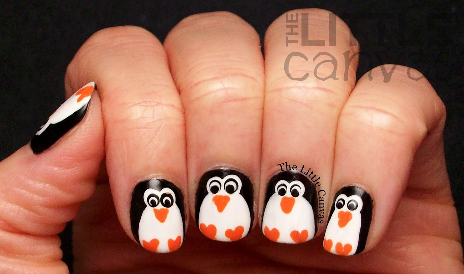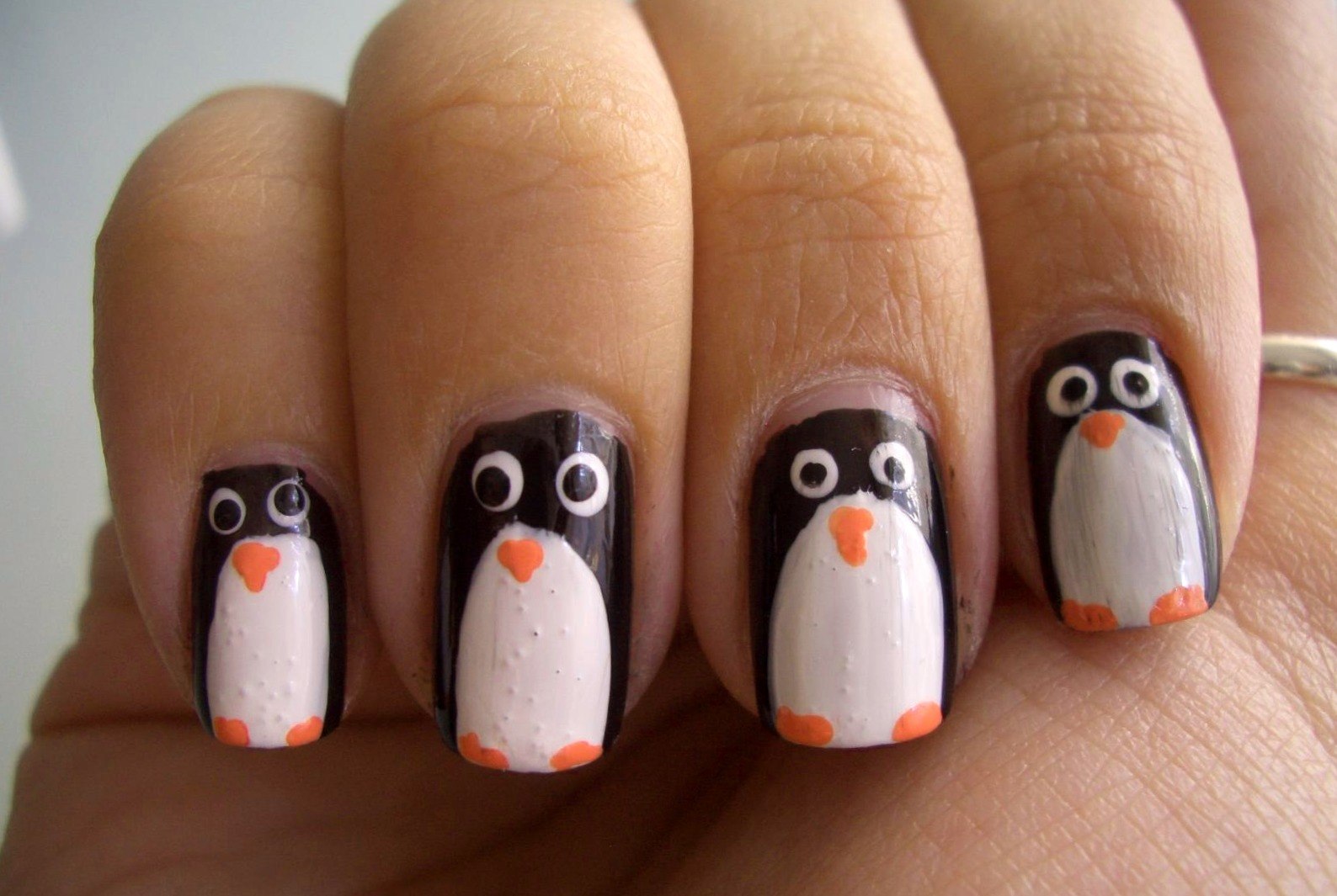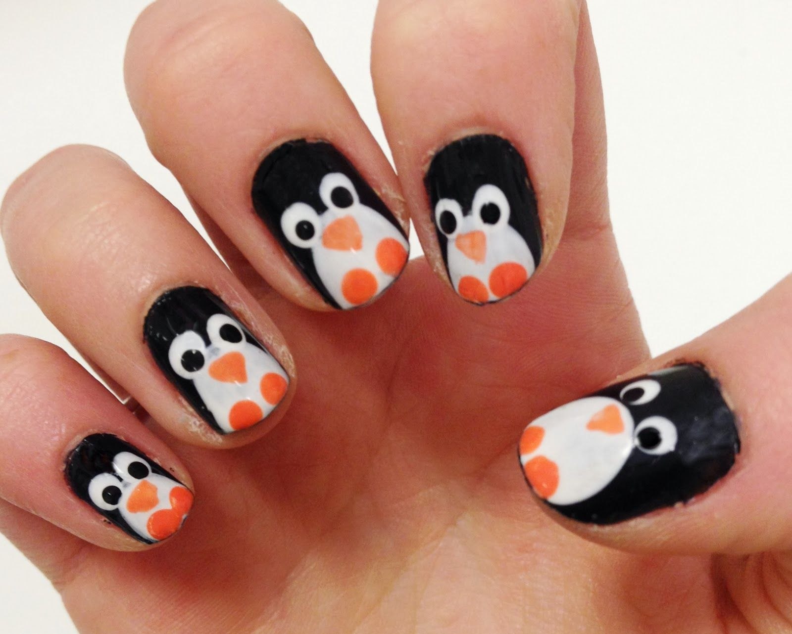 Пингвин рисунок на ногтях