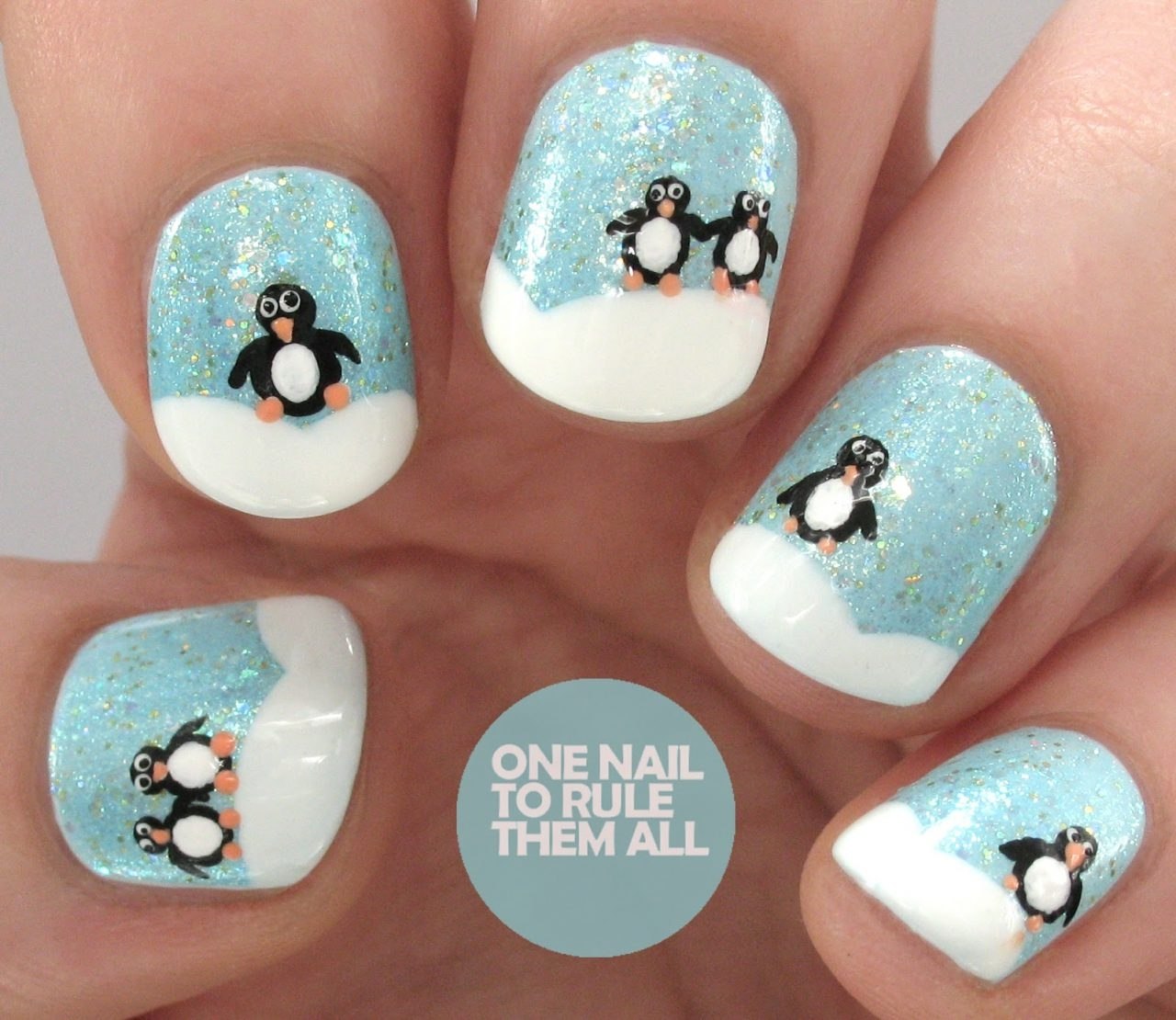 Christmas Nail Art Пингвин