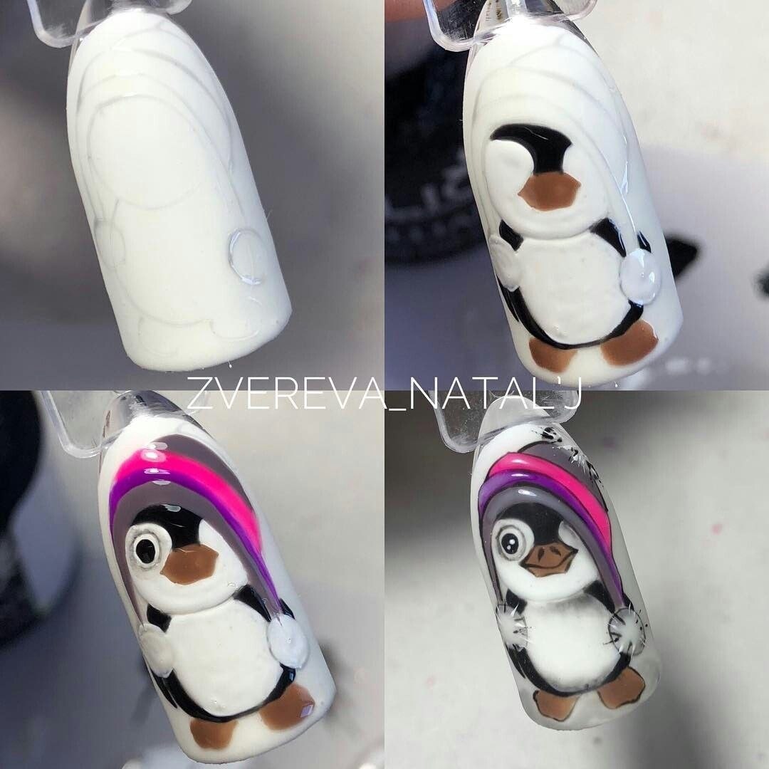 Пингвин маникюр пошагово