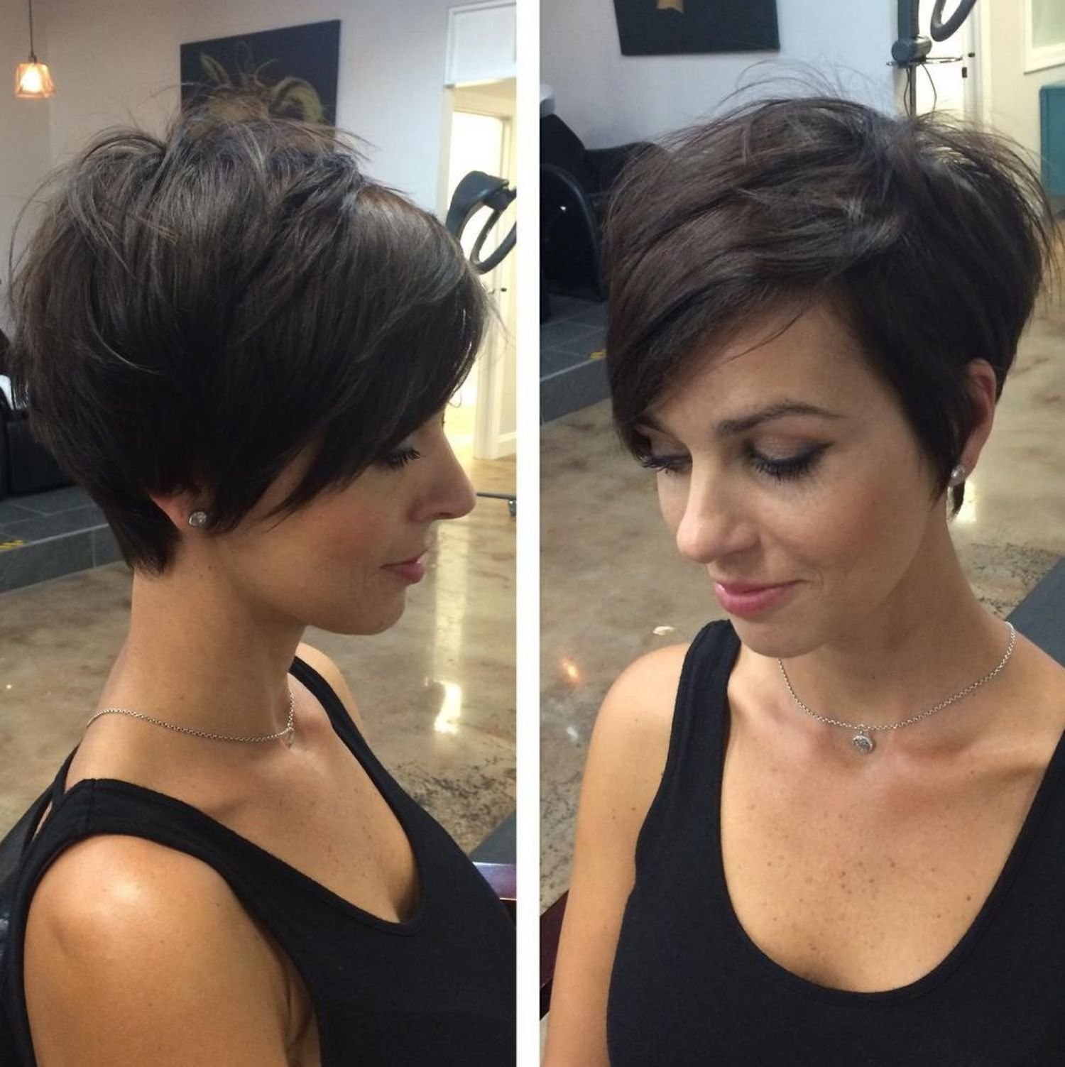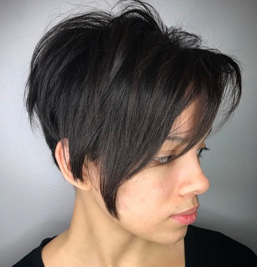 Пикси Боб стрижка на темные волосы