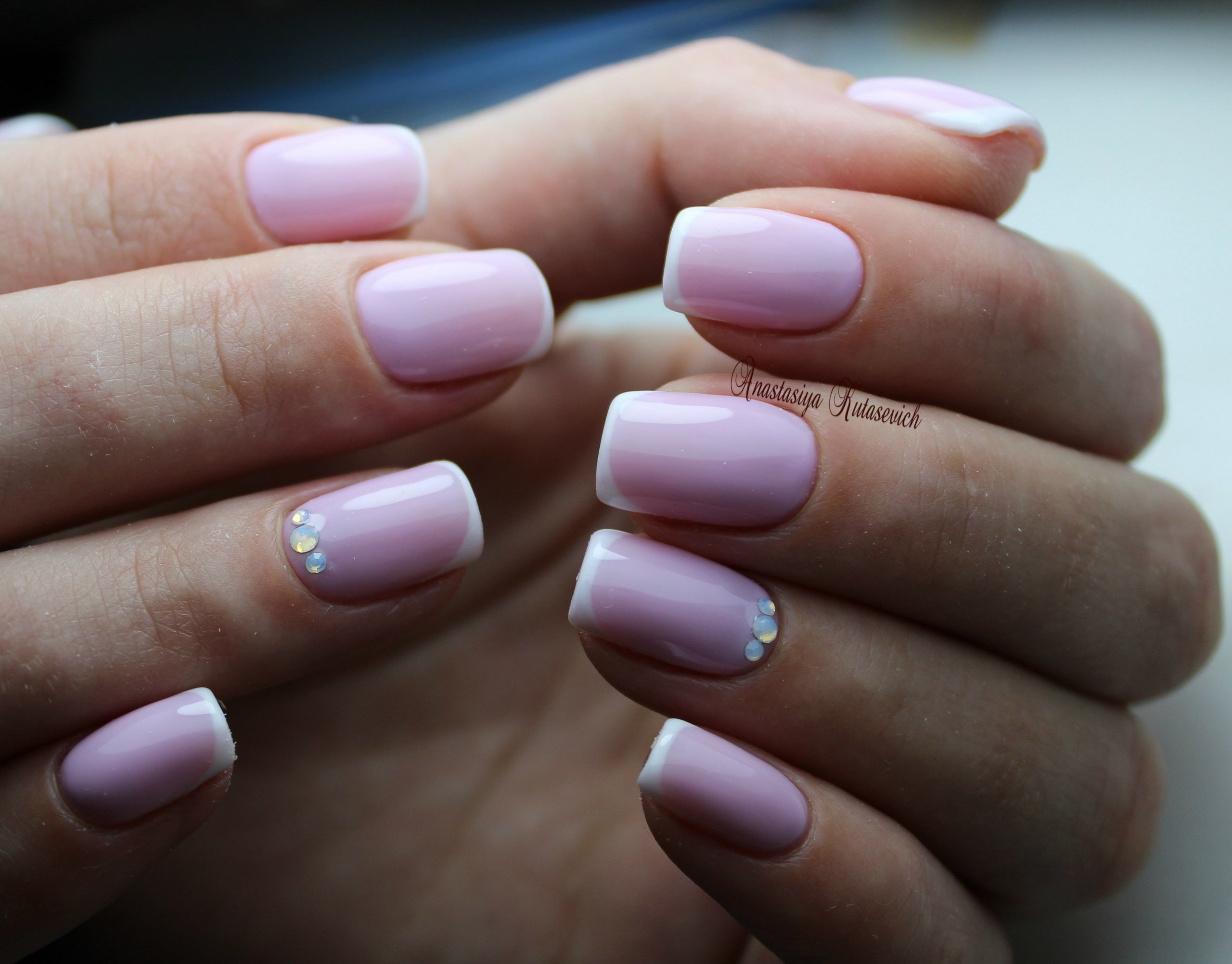 Выбеленный розовый маникюр